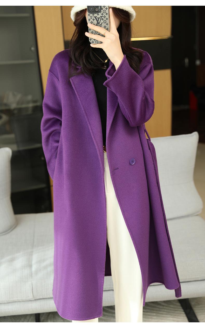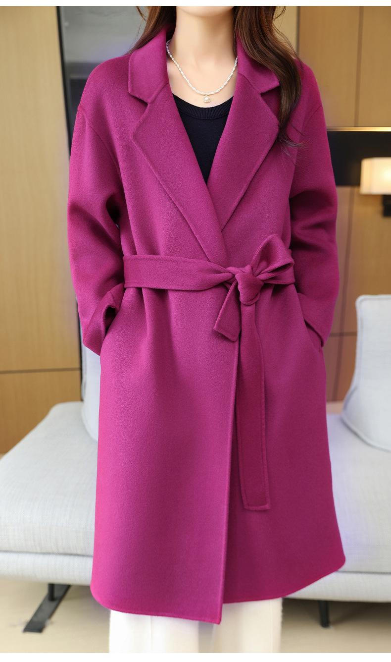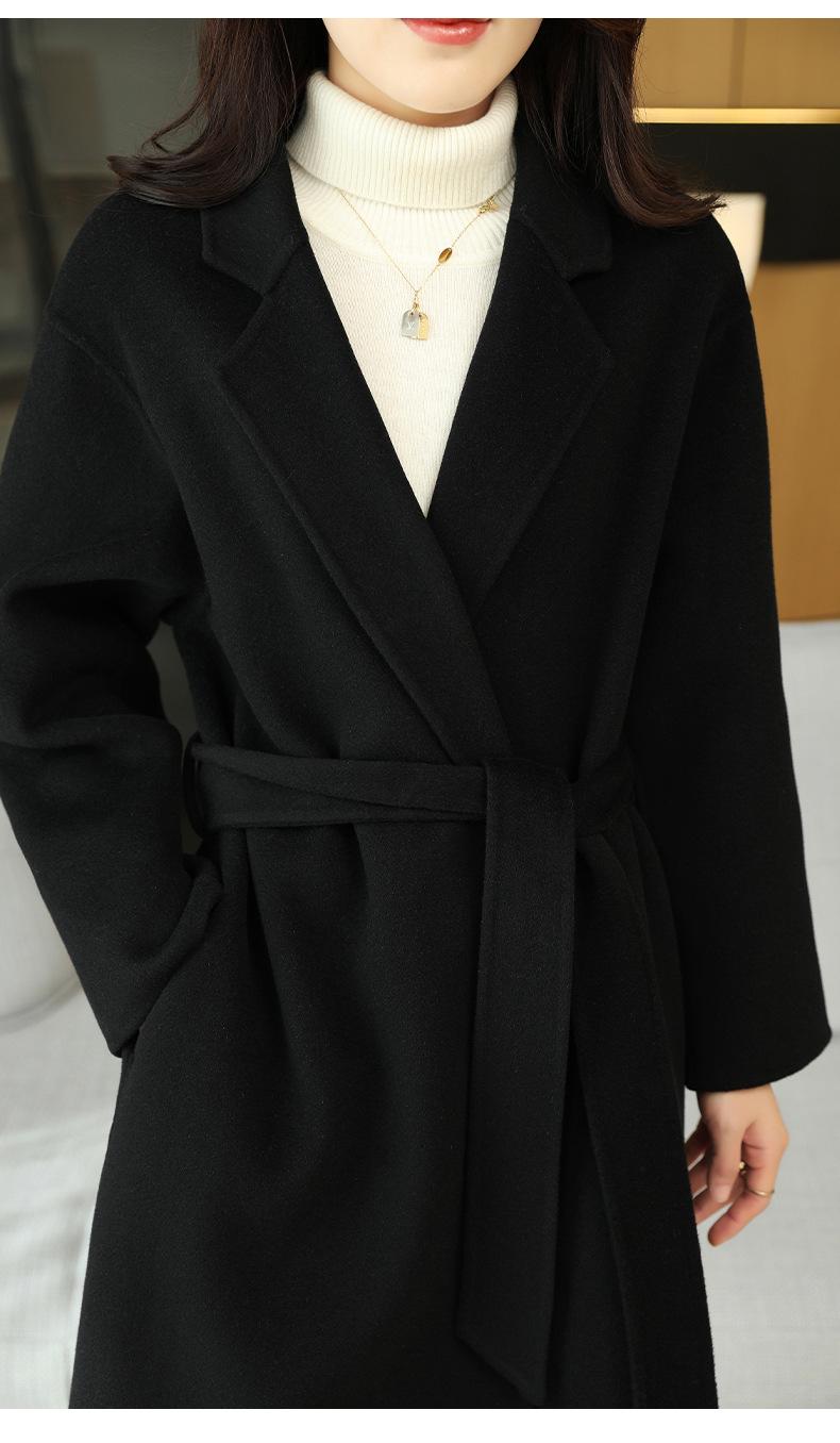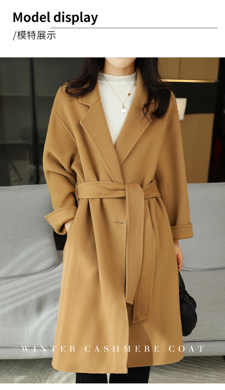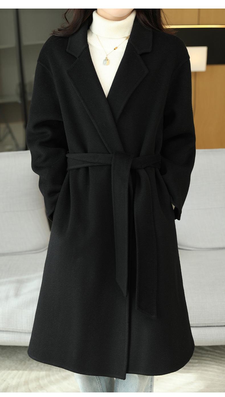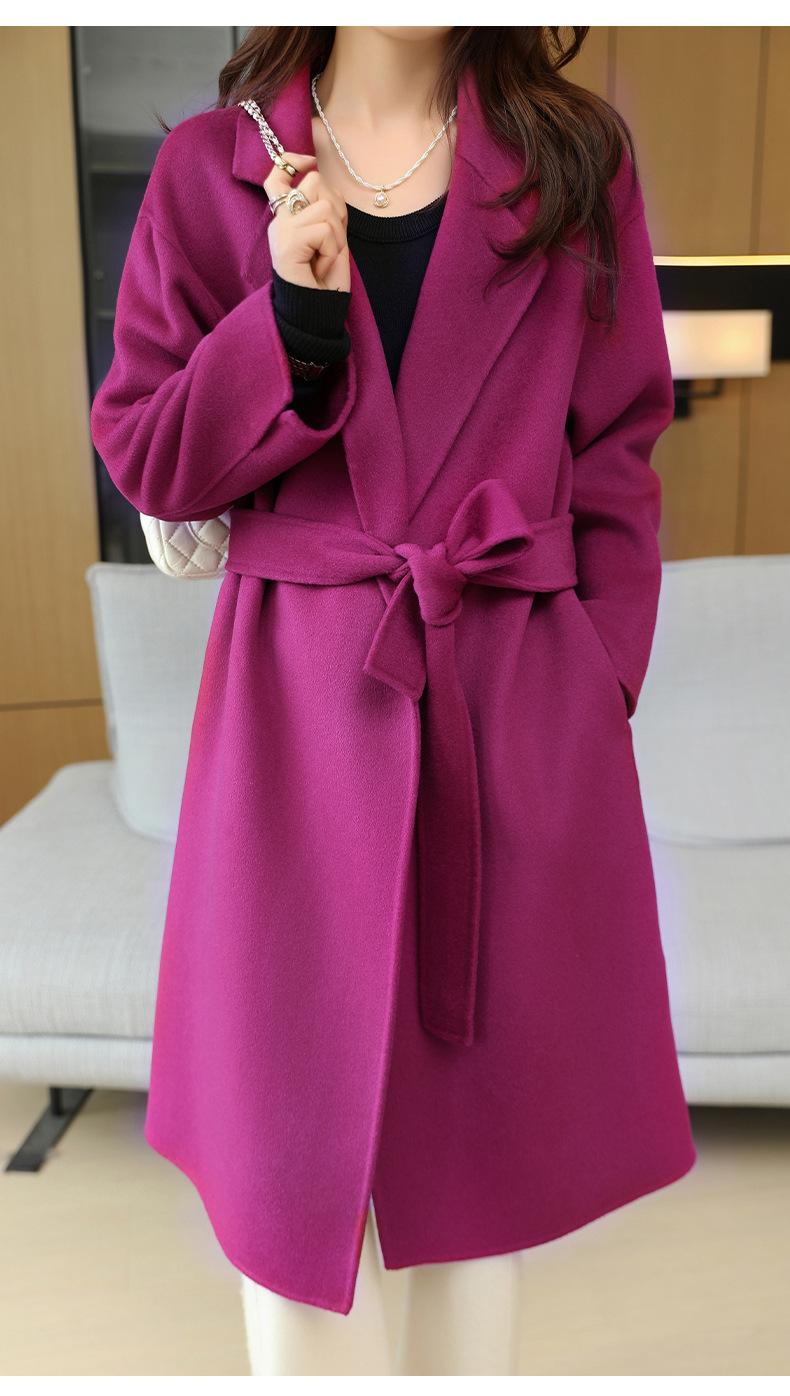 Abrigo de Cachemira de Doble Cara para Mujer Otoño e Invierno 2024, Estilo Coreano, de Alta Gama, Abrigo de Lana Suelto, Largo Medio con Solapa Grande