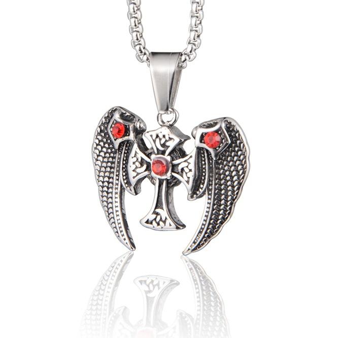 Collar de pareja informal personalizado para hombre y mujer, con colgante de cruz de alas de diamante rojo, de acero de titanio y todo combinado, estilo hip hop, explosiones de moda