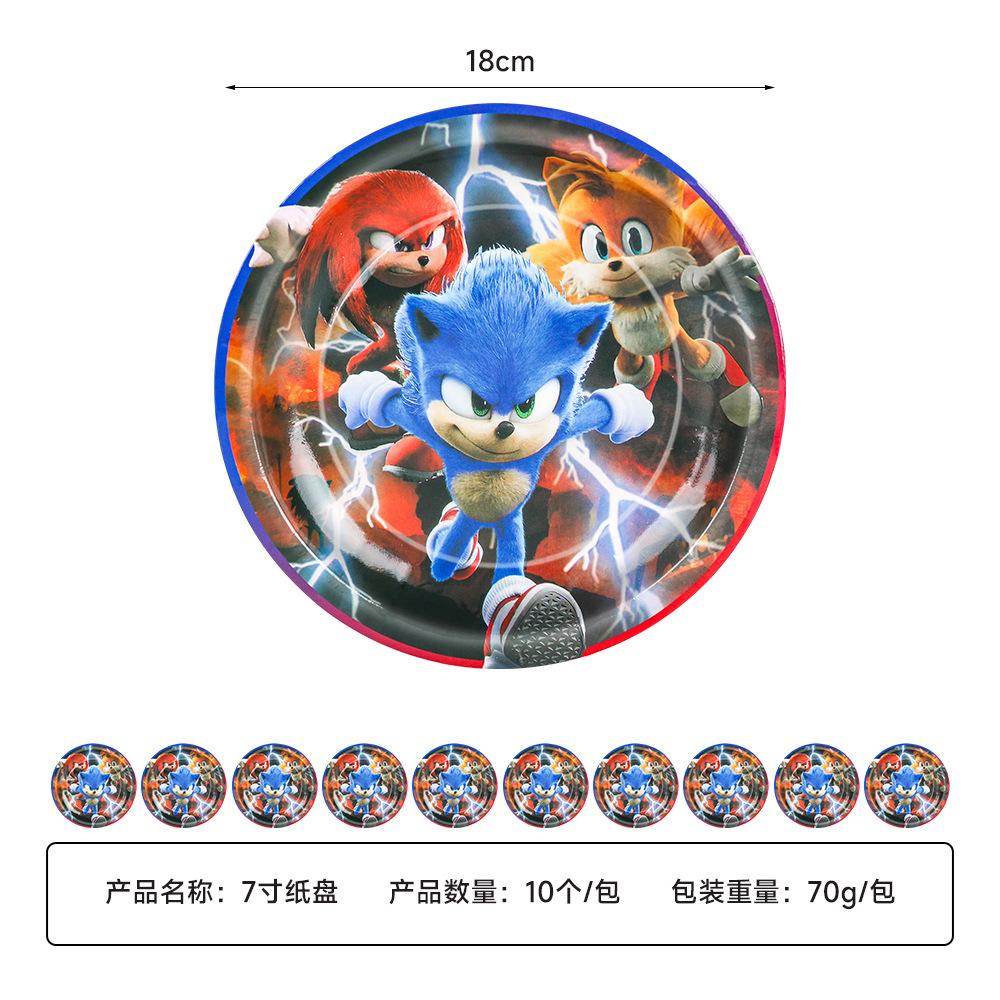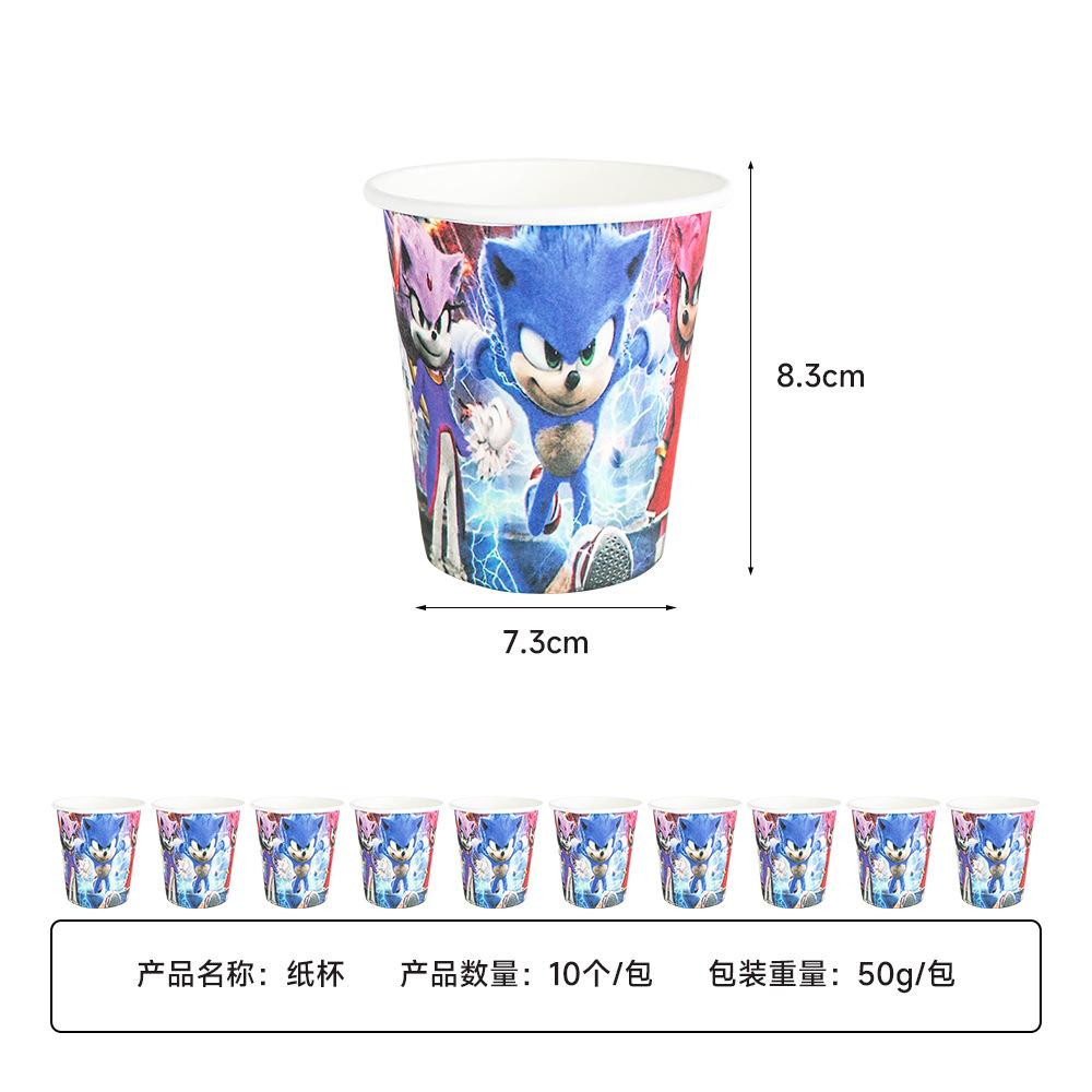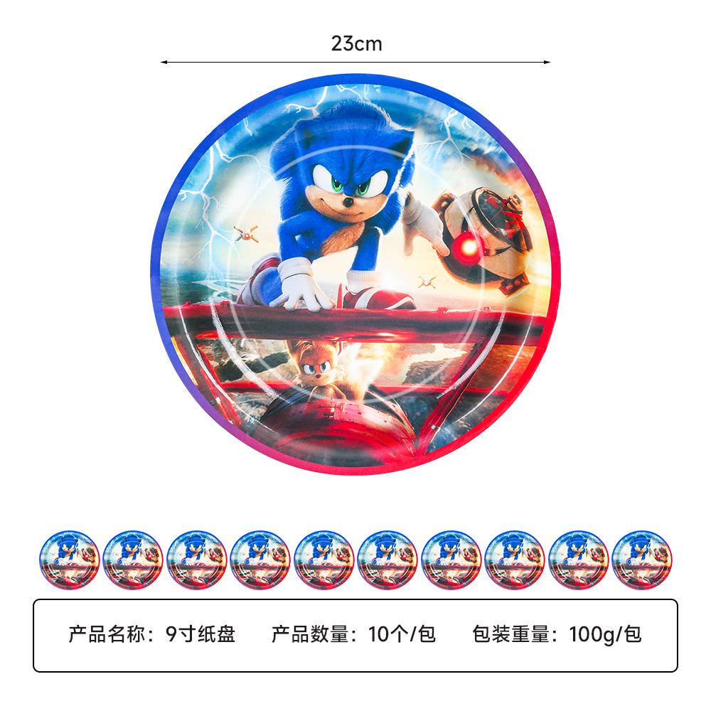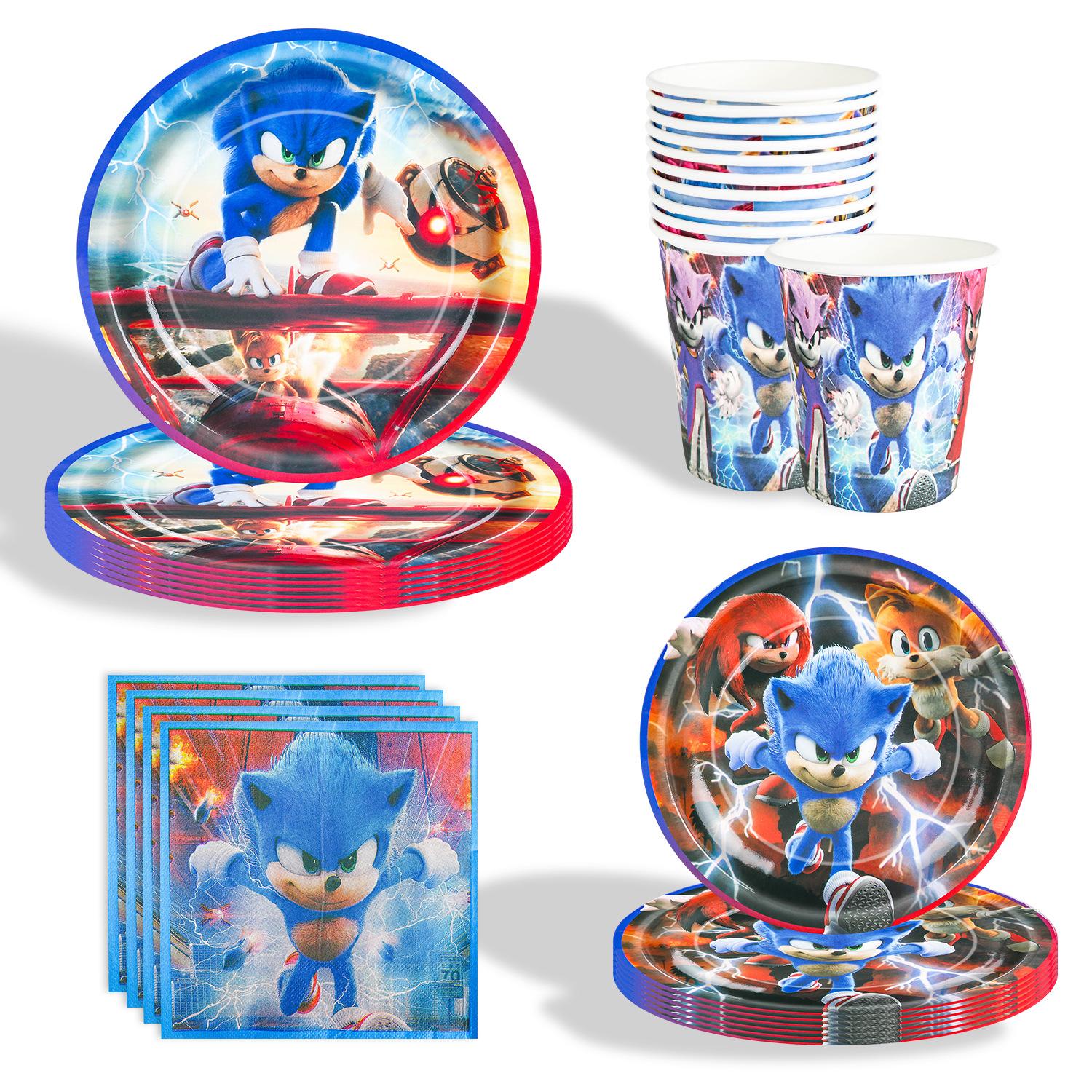 Compra Nuevo en stock Tema de Sonic fiesta de cumpleaños infantil plato de papel desechable vaso de papel mantel vajilla traje banderín al por mayor en Joom.pro