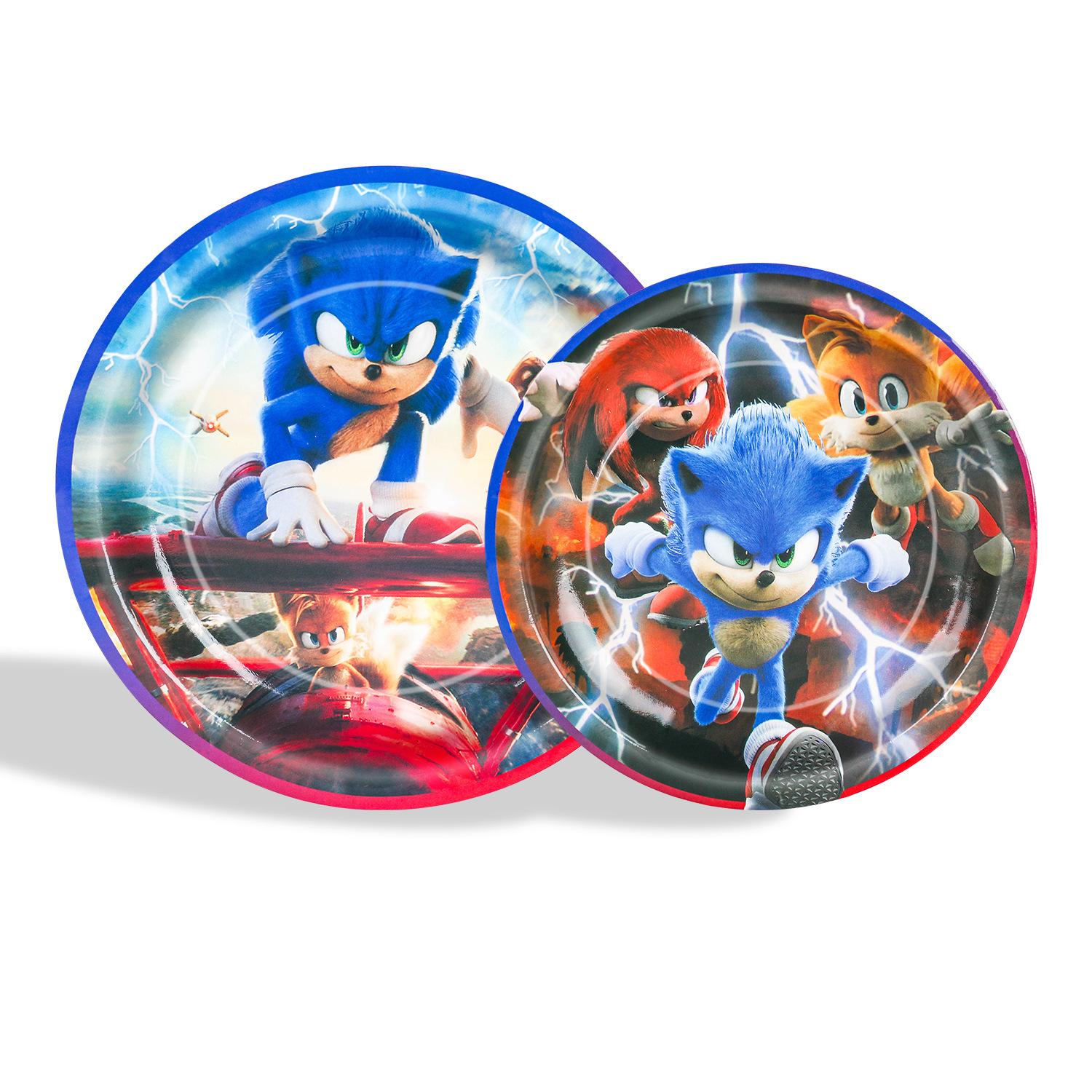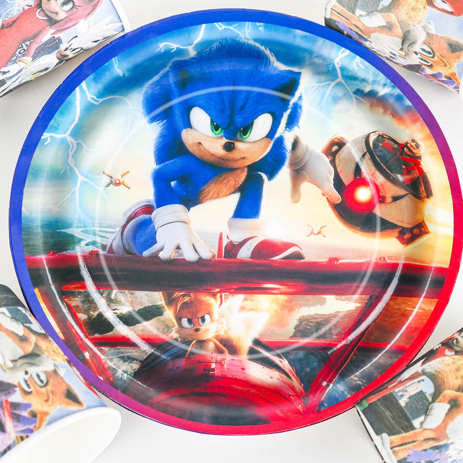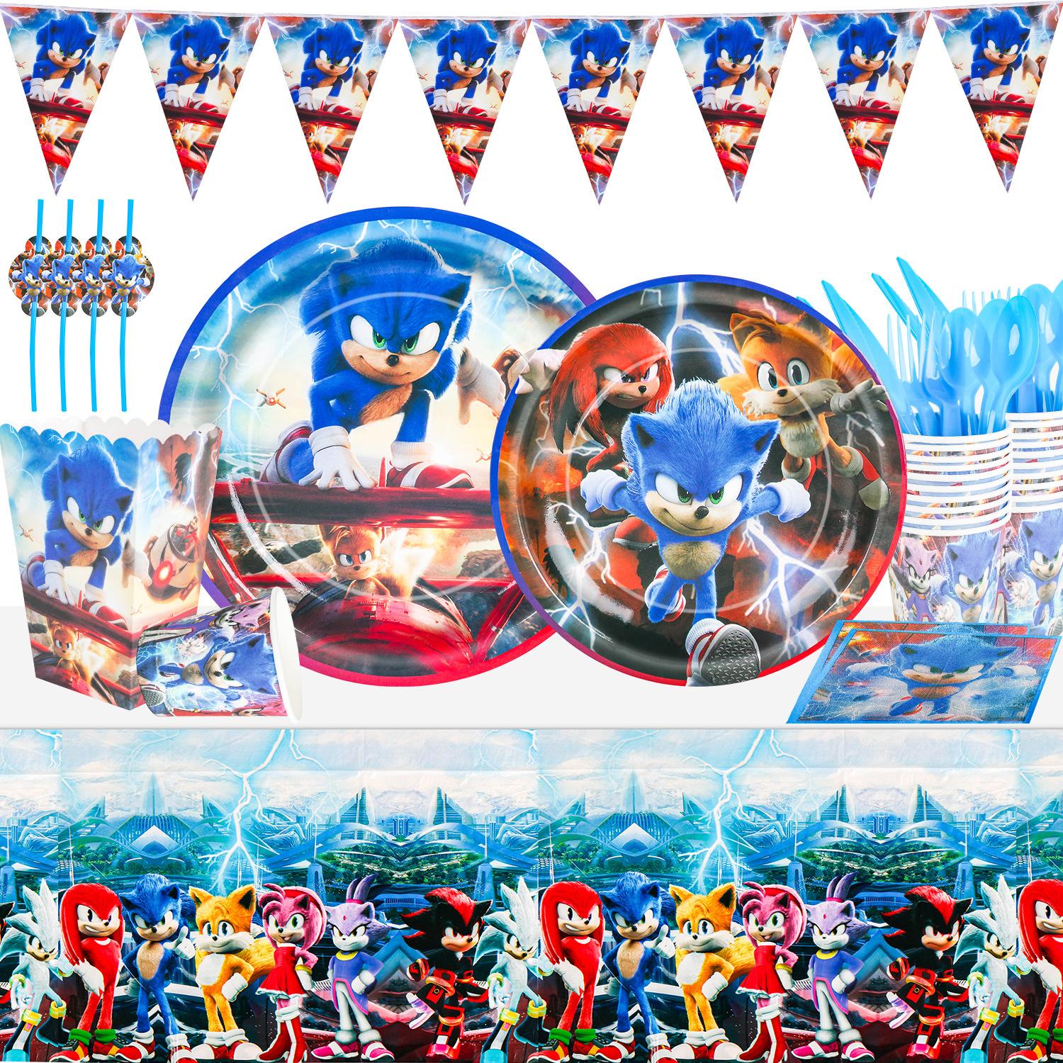 Compra Nuevo en stock Tema de Sonic fiesta de cumpleaños infantil plato de papel desechable vaso de papel mantel vajilla traje banderín al por mayor en Joom.pro