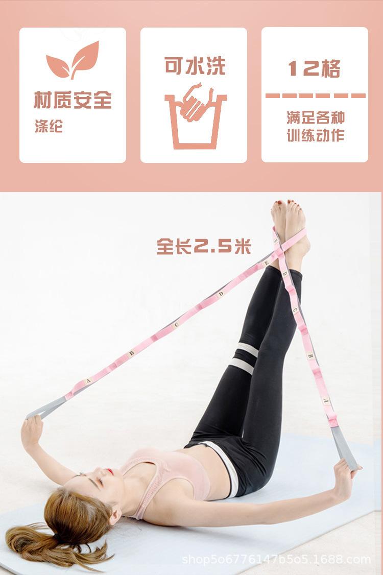 Cinturón elástico de yoga de 2,5 metros y 12 pulgadas, cinturón elástico, cuerda auxiliar de entrenamiento de estiramiento para fitness, cuerda de crisantemo sin elástico para Pilates
