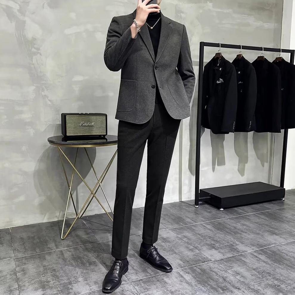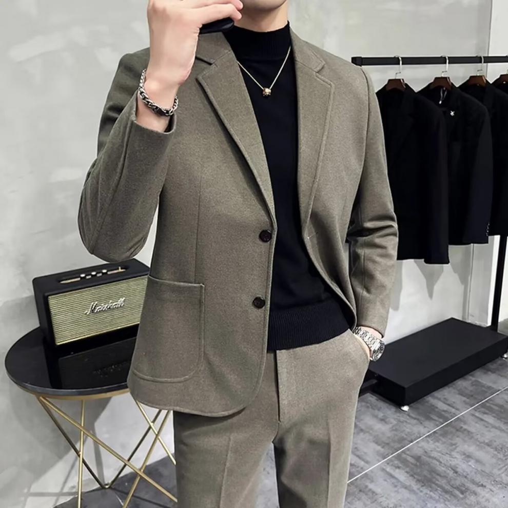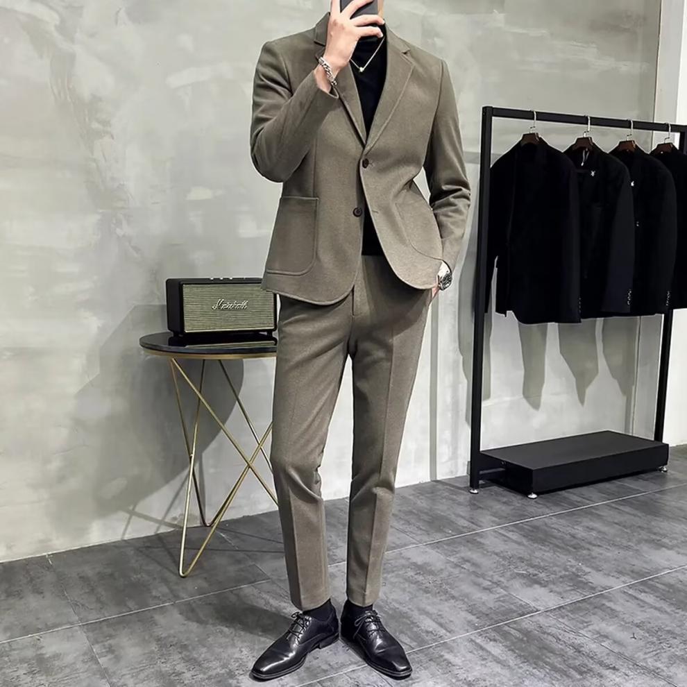 Traje informal de otoño 2024 para hombre, traje de tres piezas, chaqueta de color liso para negocios, vestido para hombre