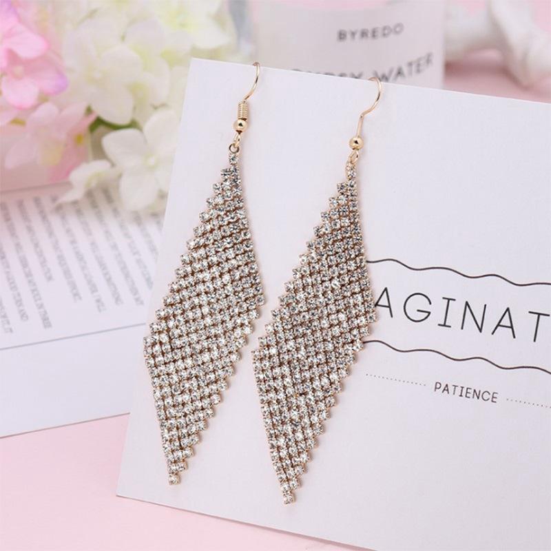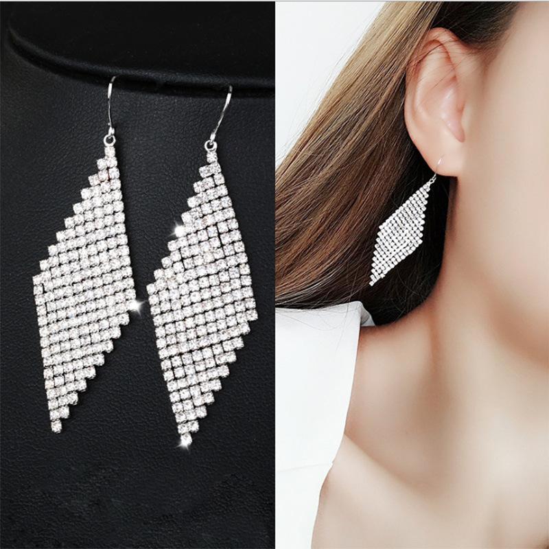 Moda coreana viento frío Diamante cobre aretes temperamento colgante largo personalidad combinable Alas red fábrica de aretes grandes
