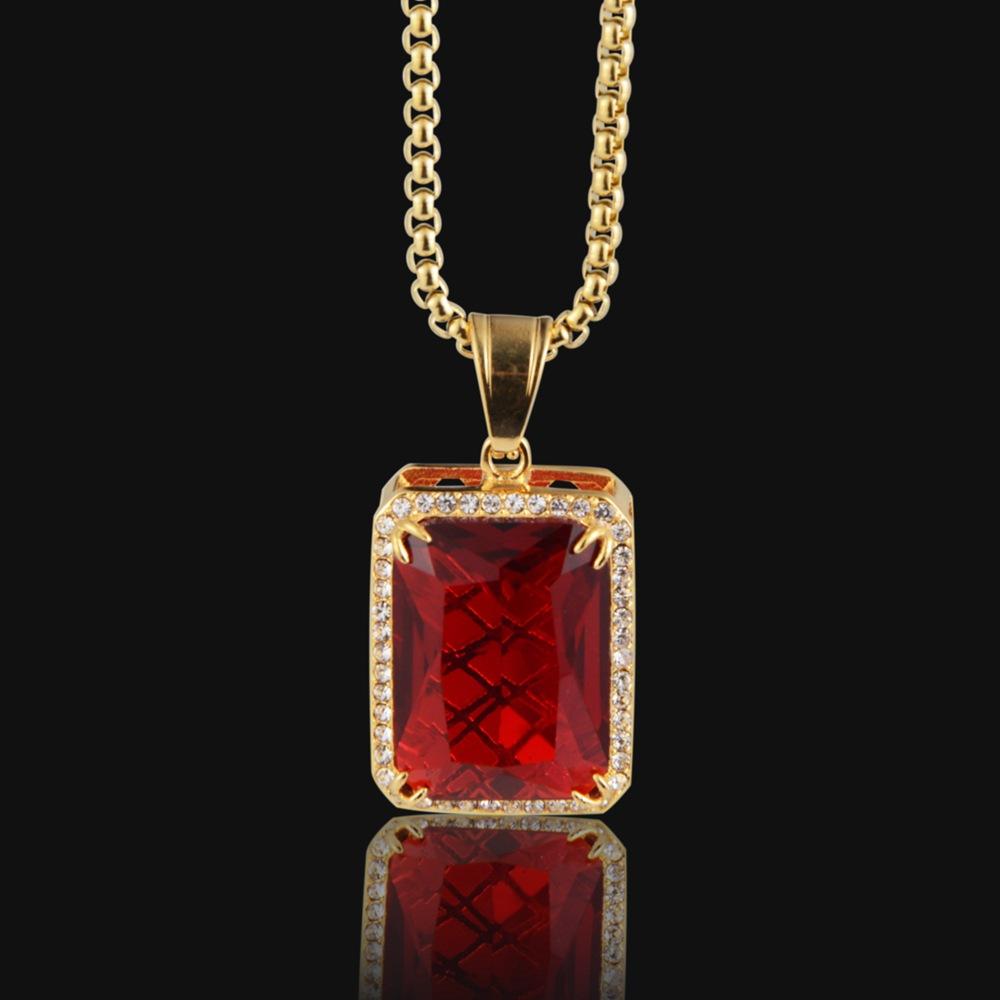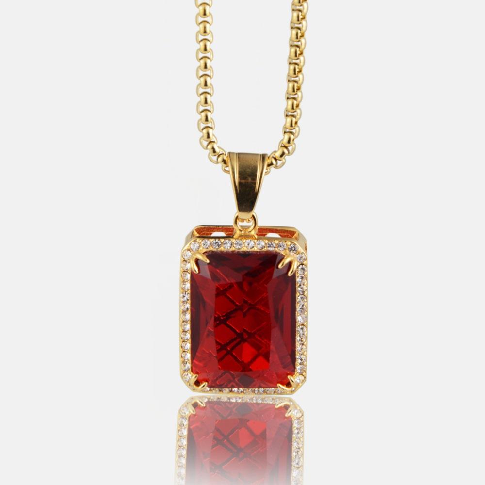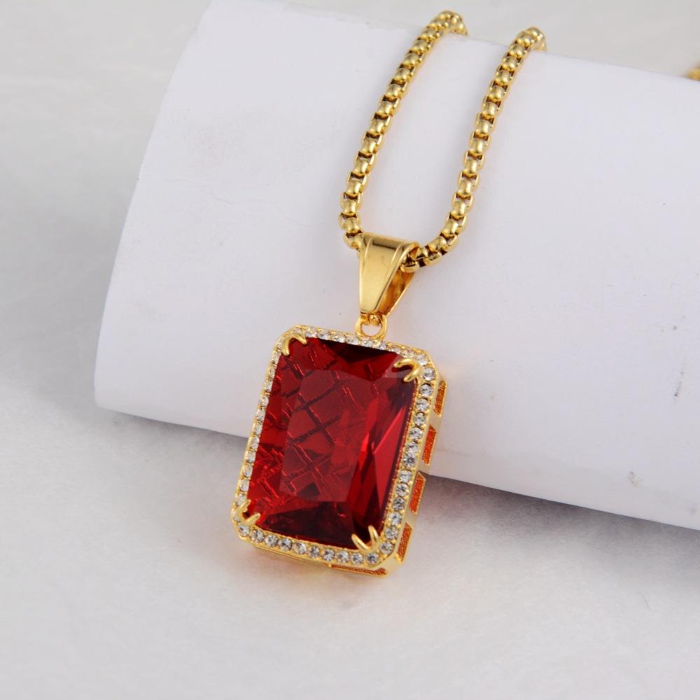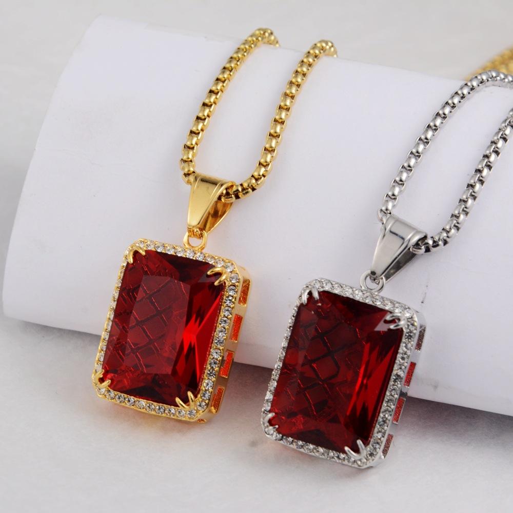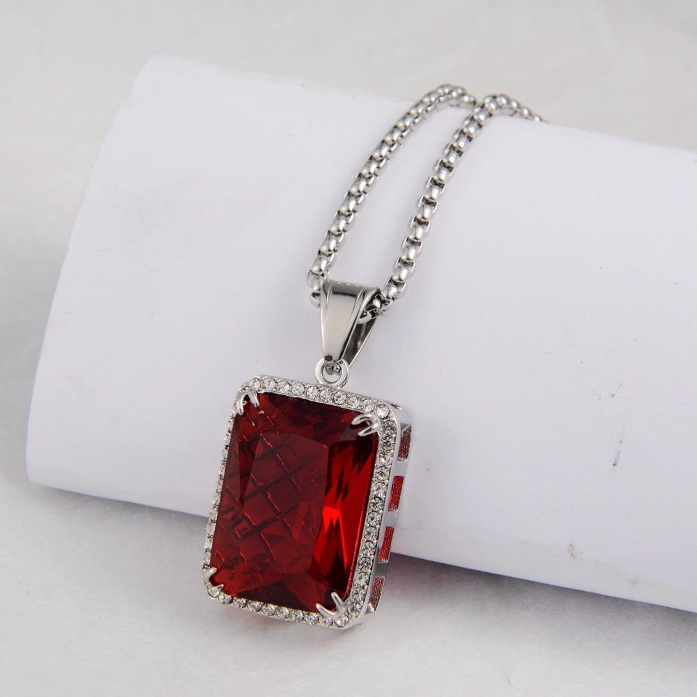 Collar informal personalizado para parejas, con colgante de diamante y rubí, de acero de titanio y titanio, combinable con todo, estilo hip hop, para hombre y mujer.