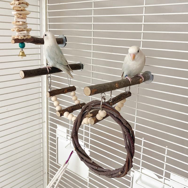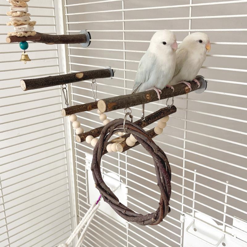 Soporte para loros, escalera de madera, columpio, combinación, traje, jaula de juguete para loros, exterior, interactivo, lechón de tronco, soporte para pájaros, varilla