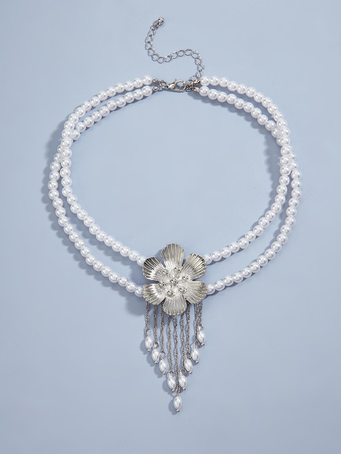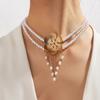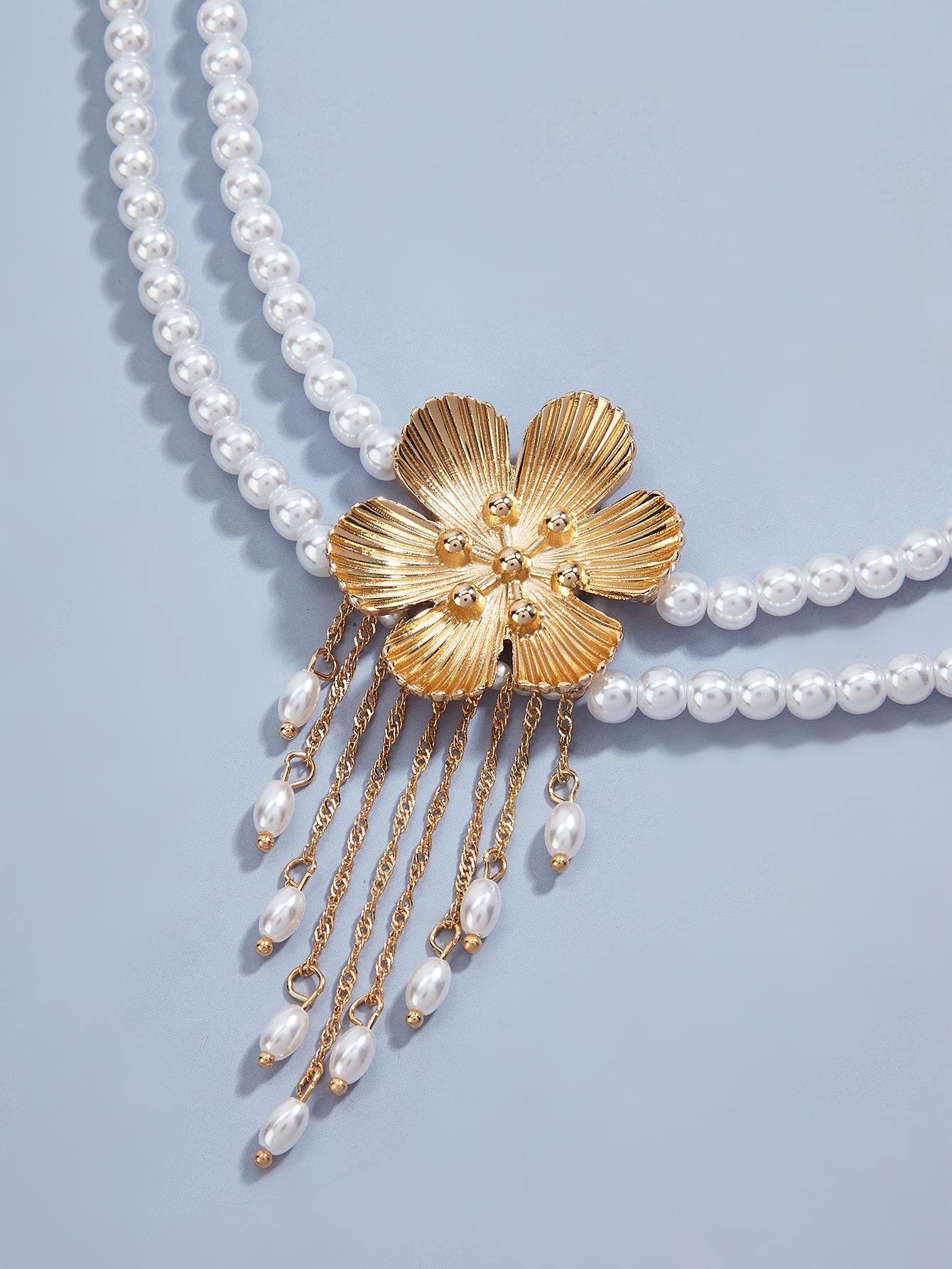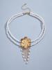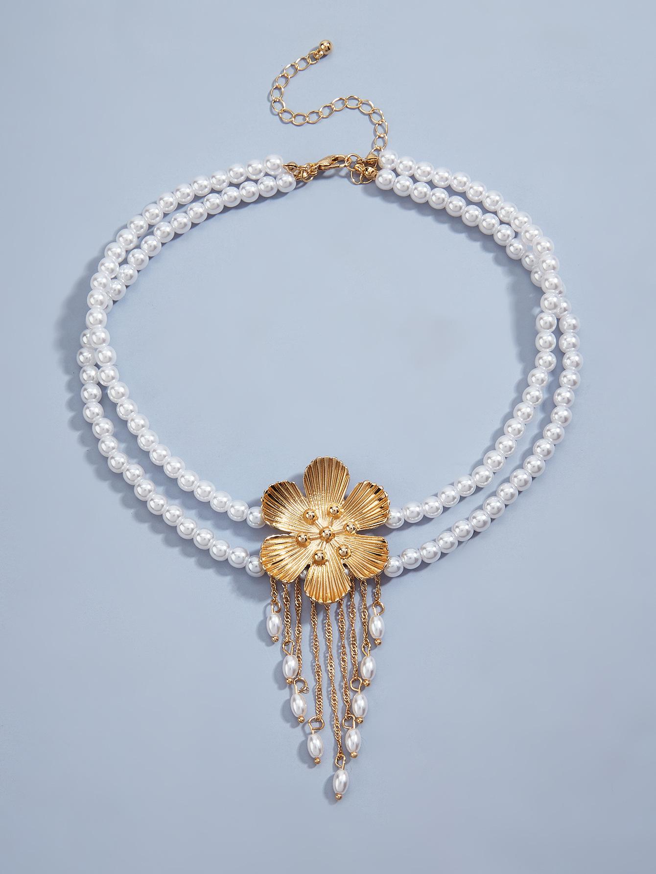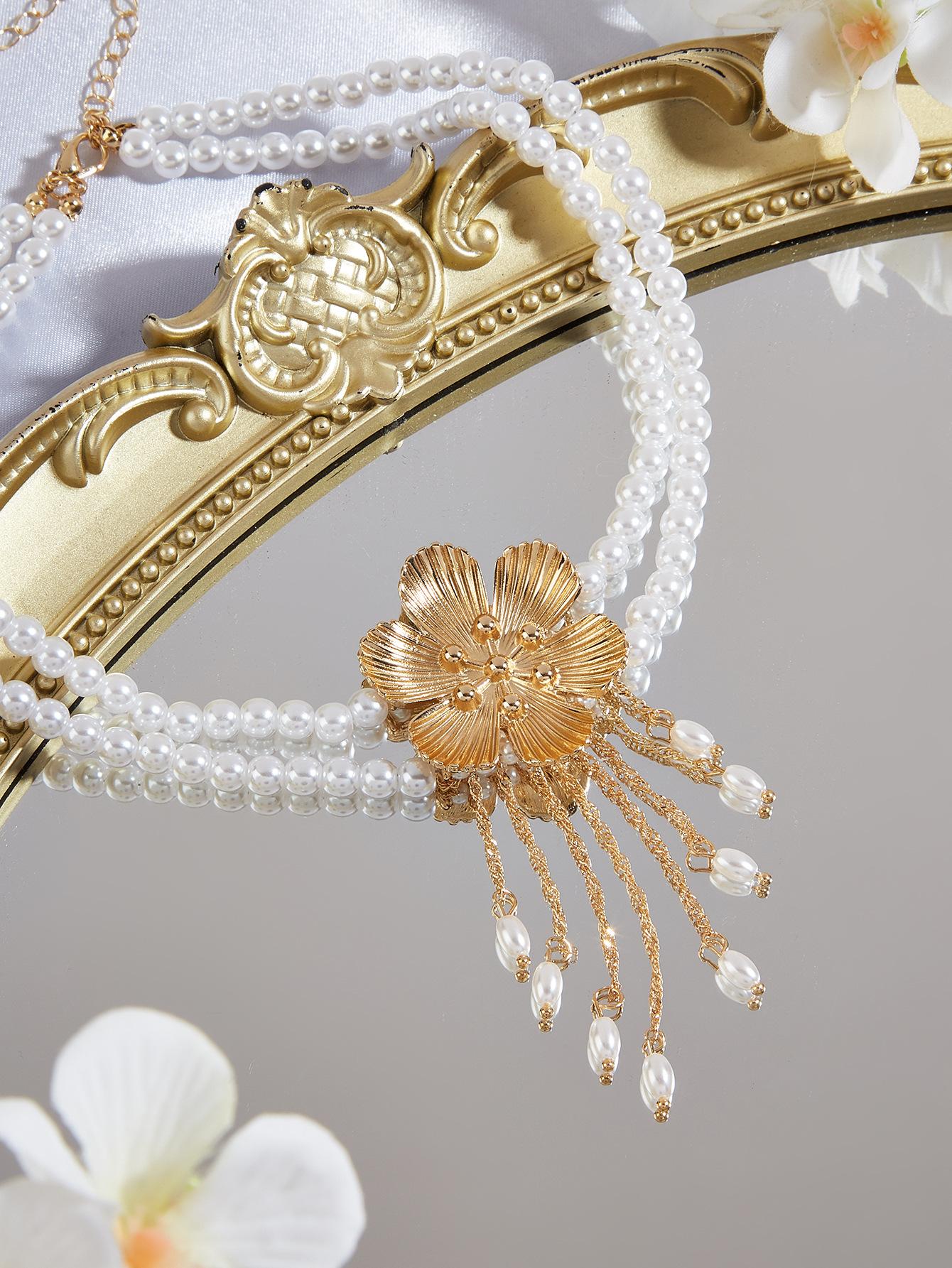 Elegante gargantilla retro francesa de flor con borla de perlas, collar de cadena para la clavícula femenina, collar de diamantes