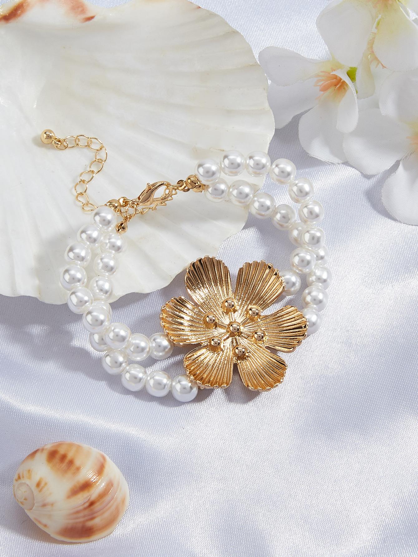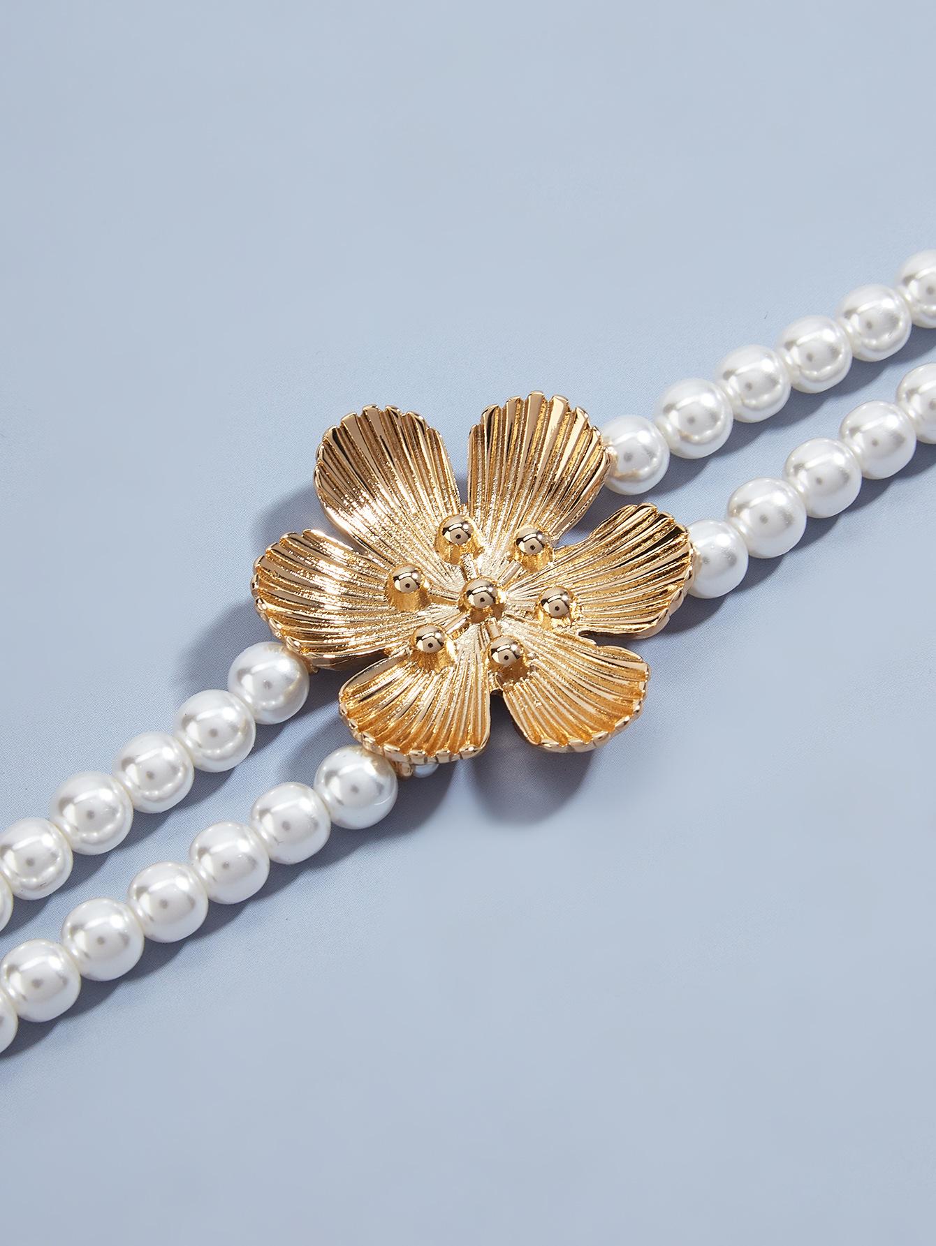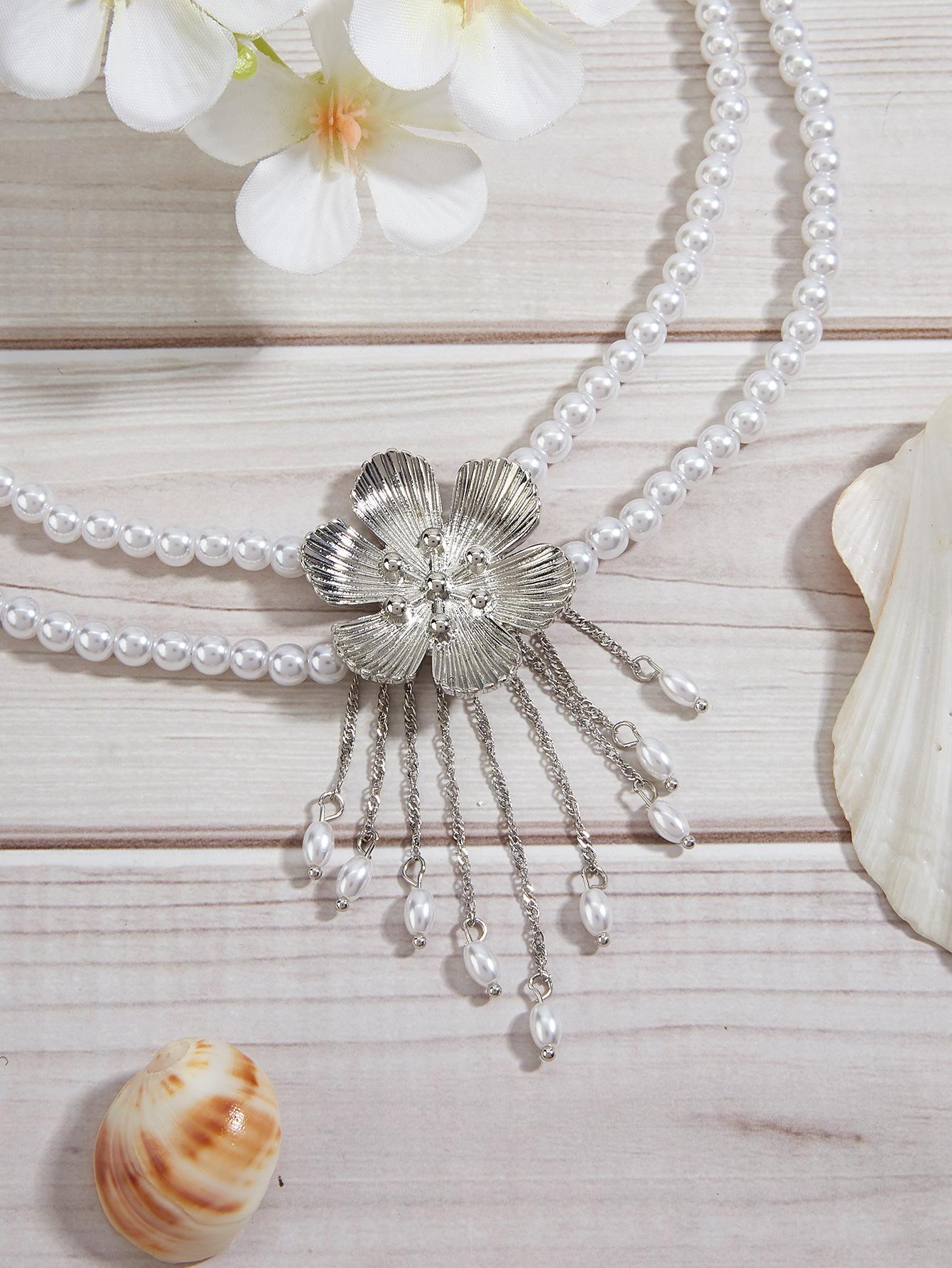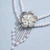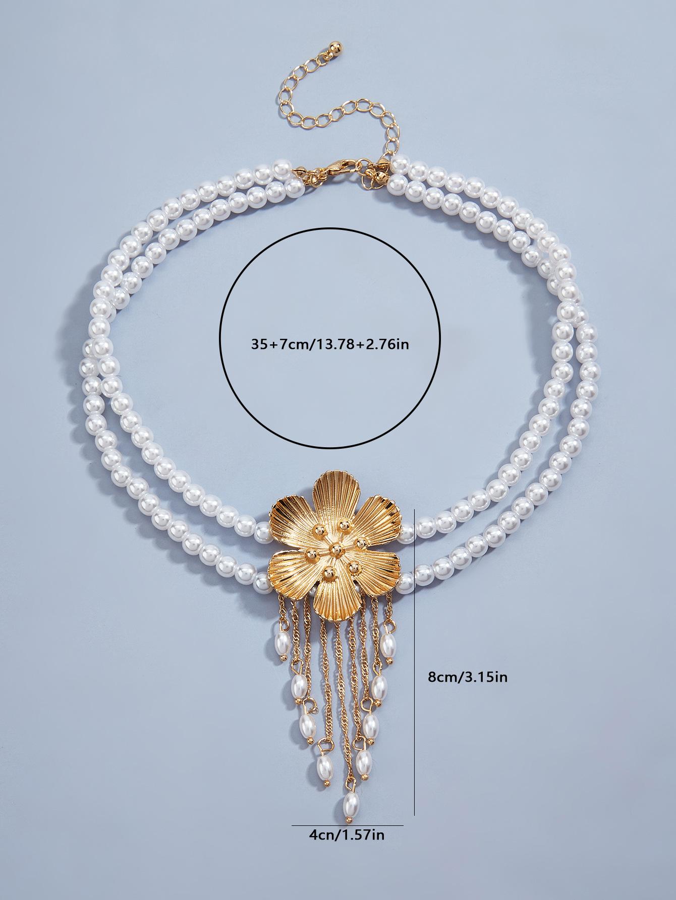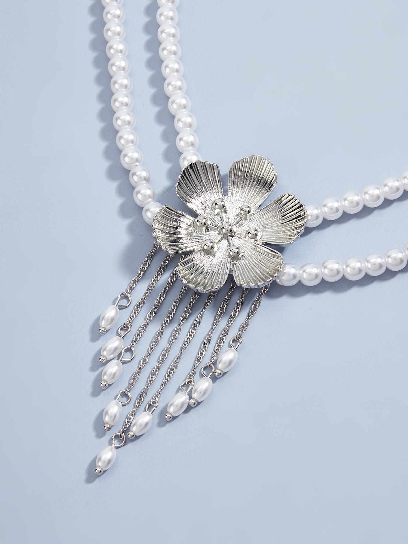 Elegante gargantilla retro francesa de flor con borla de perlas, collar de cadena para la clavícula femenina, collar de diamantes