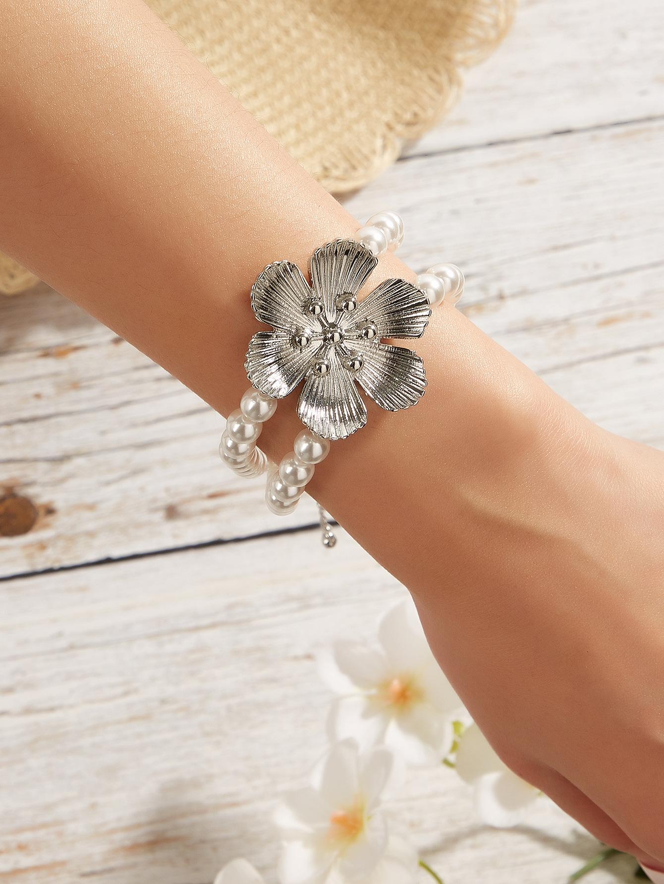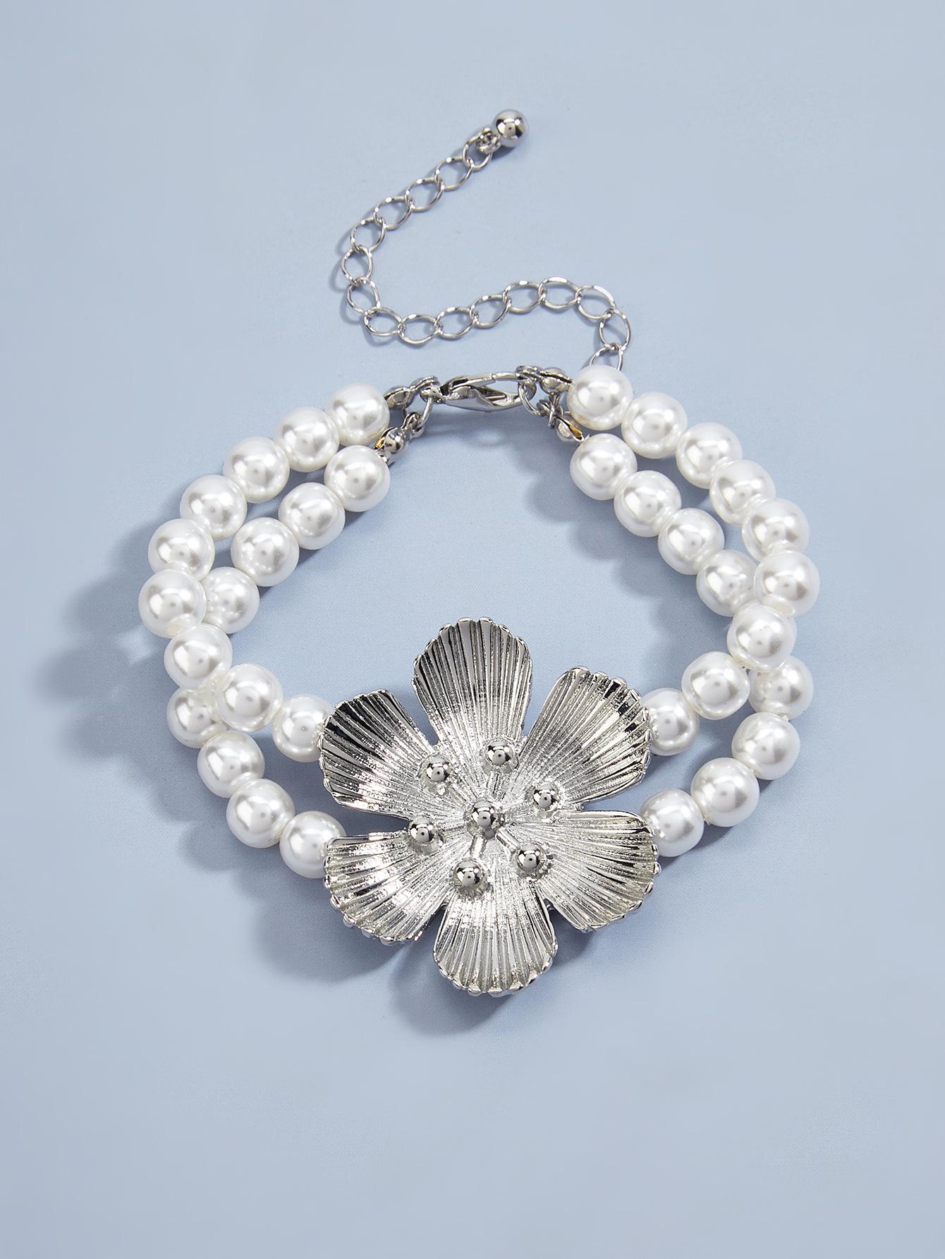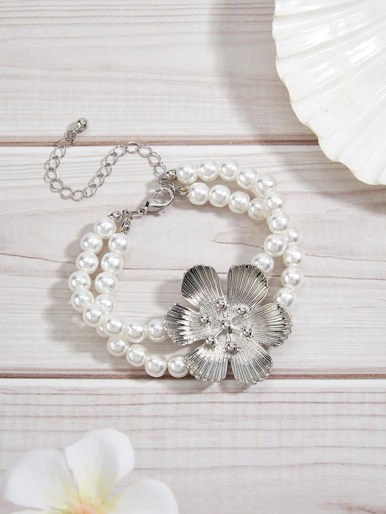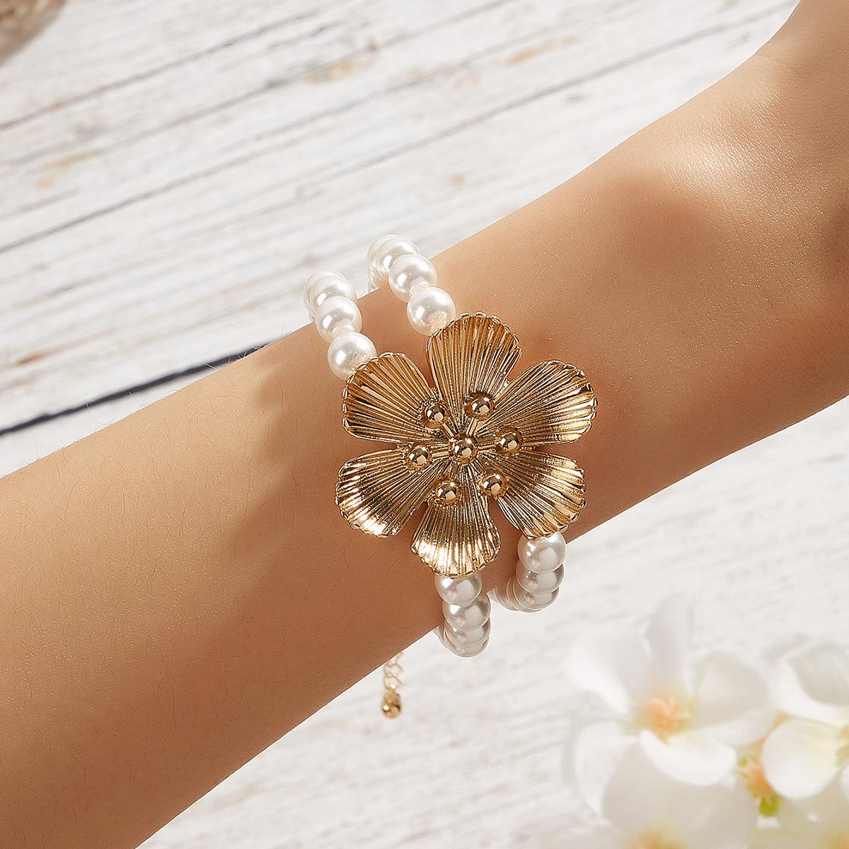 Elegante gargantilla retro francesa de flor con borla de perlas, collar de cadena para la clavícula femenina, collar de diamantes