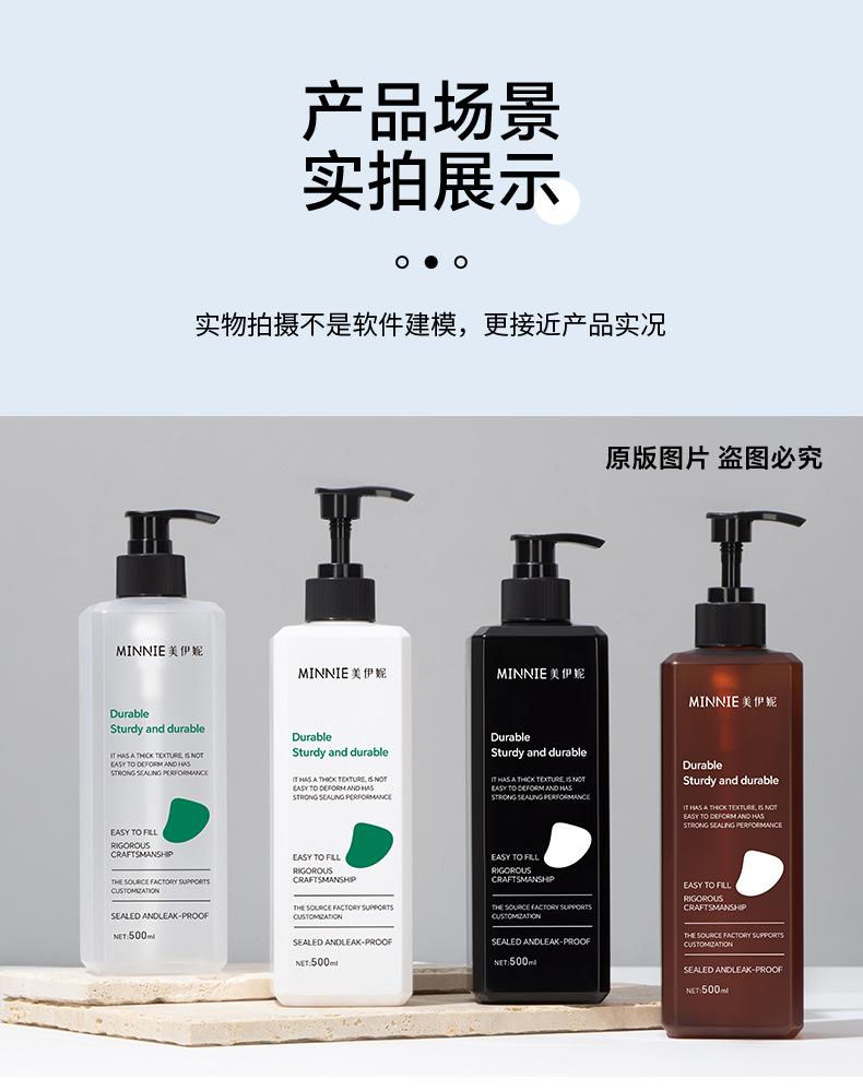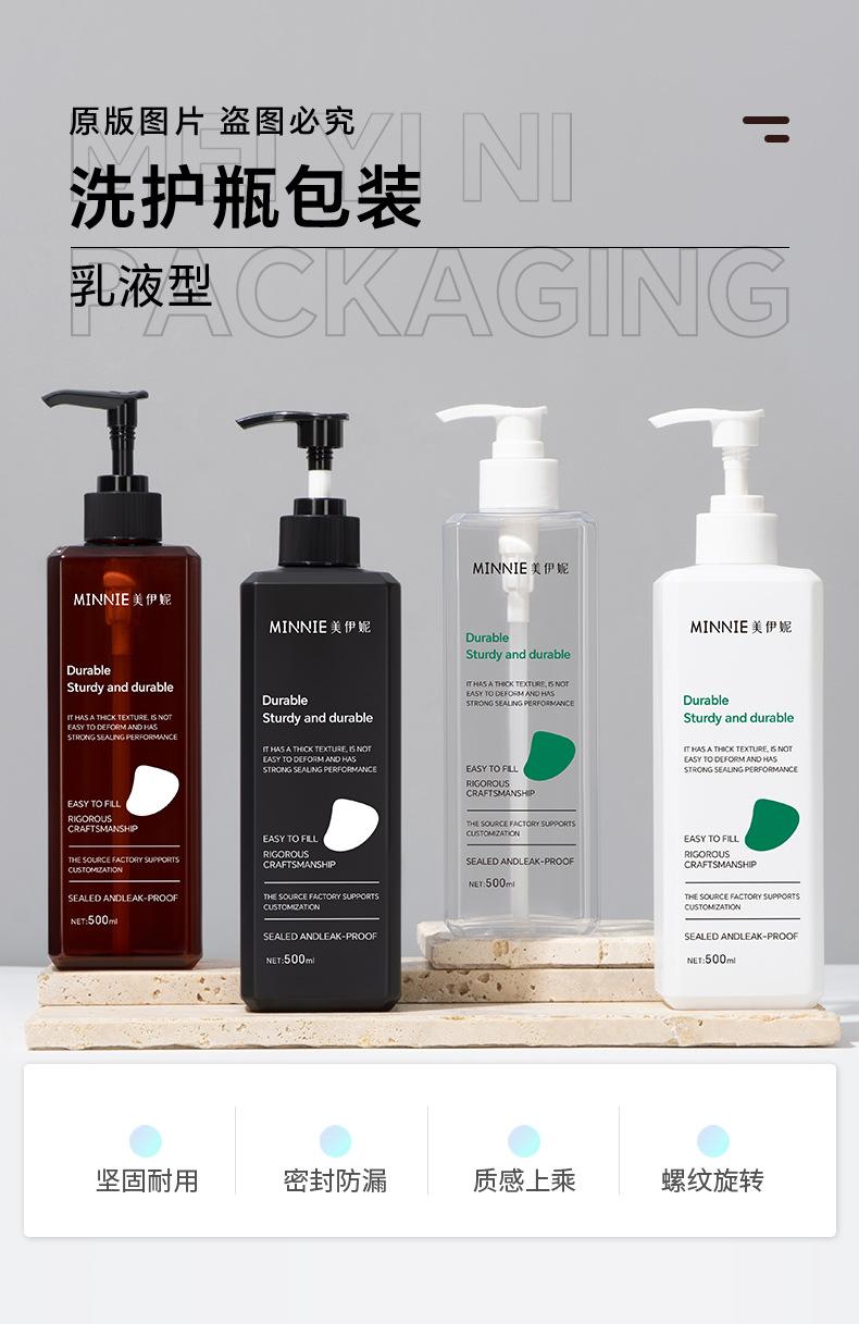 Botella de plástico PET transparente de 500 ml, botella de gel de ducha, botella de champú, botella de emulsión, botella de desinfectante de manos a presión