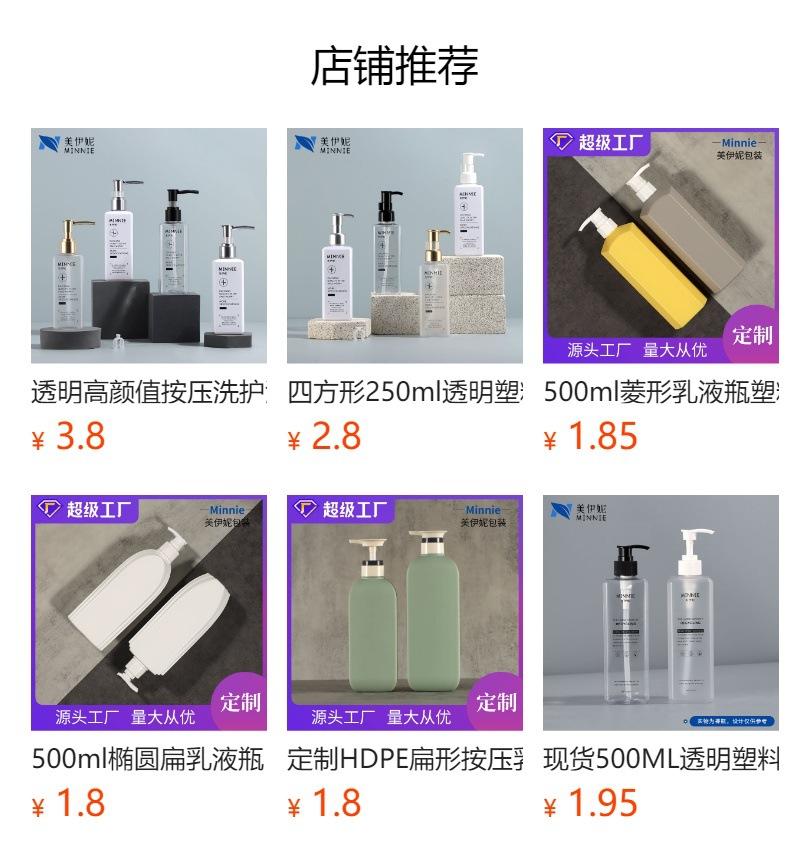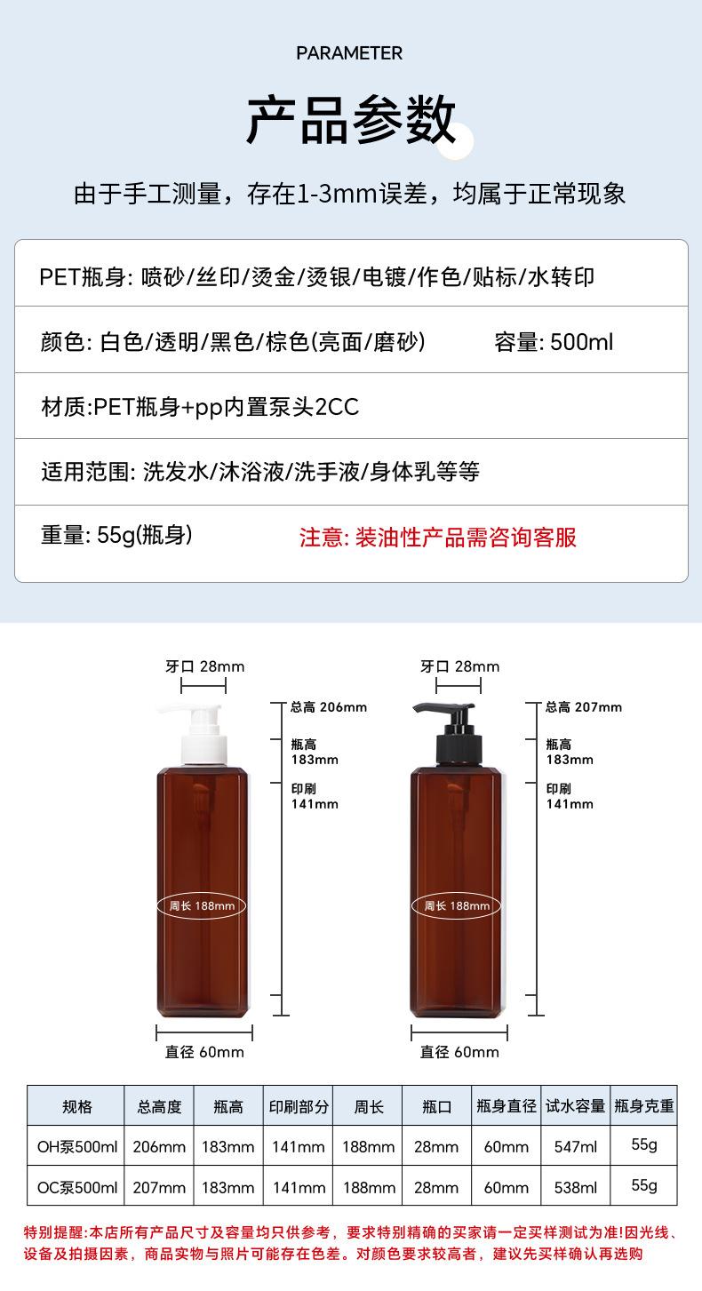 500ml: oh (black column); bright square bottle + black pump; pet
