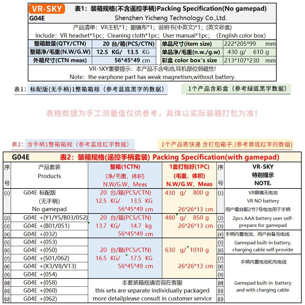 Estándar de embalajeGafas VR*1; manual de instrucciones (en chino e inglés)*1; paño para lentes*1; caja de color de embalaje en inglés*1