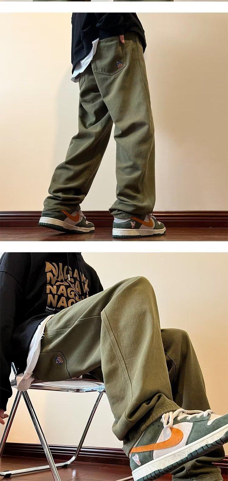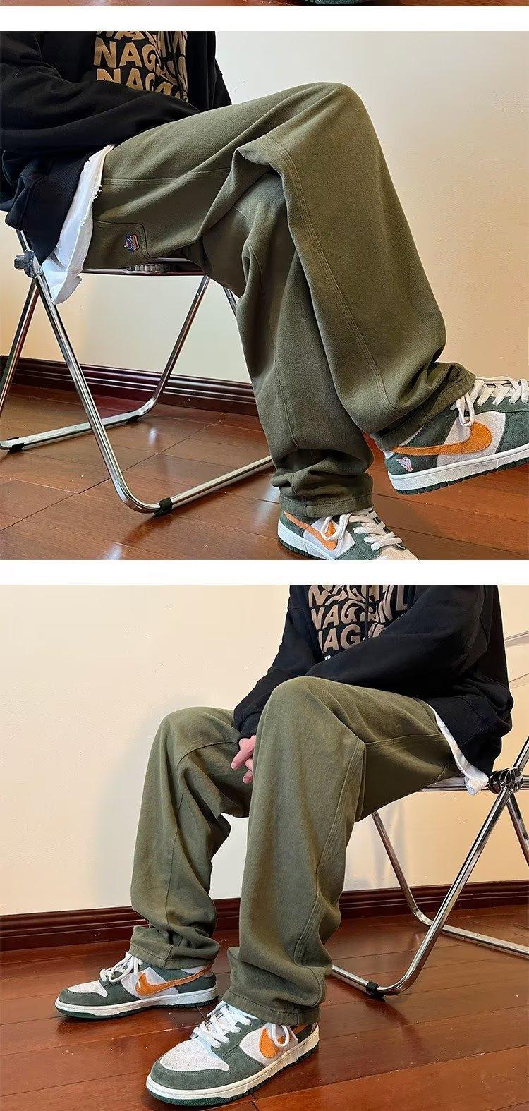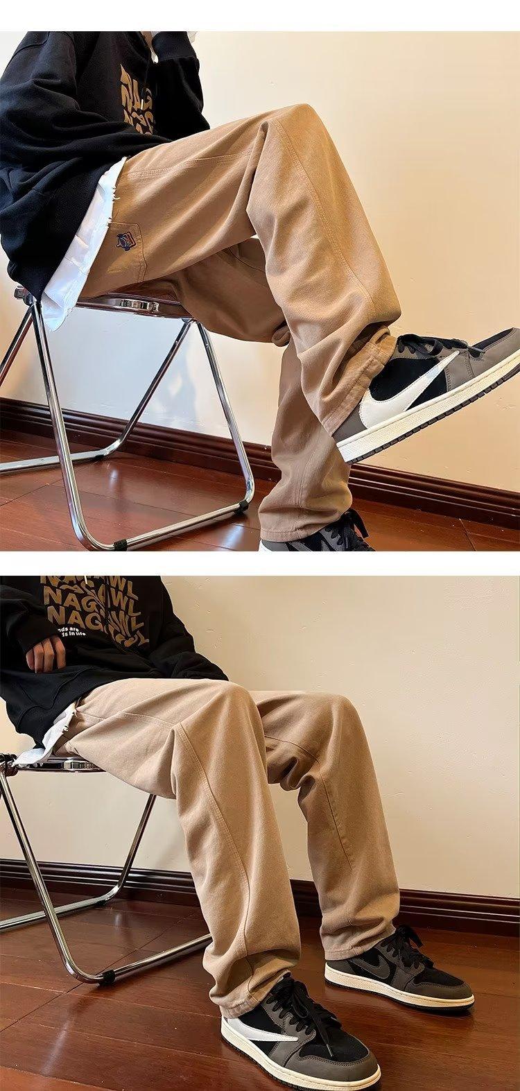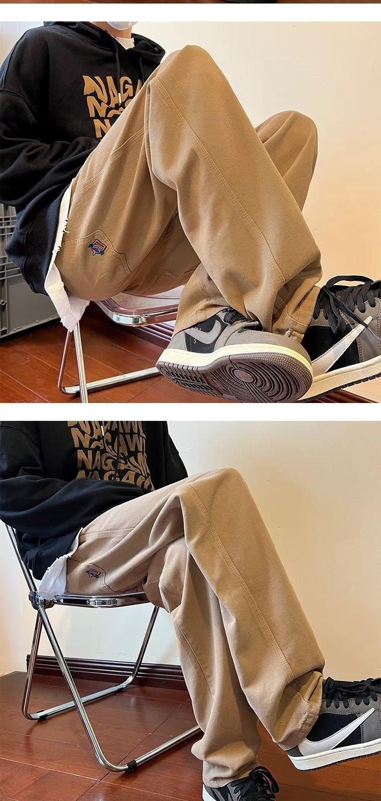 Pantalones casuales de primavera y otoño para hombre, pantalones rectos de moda, pantalones deportivos americanos holgados de pierna ancha