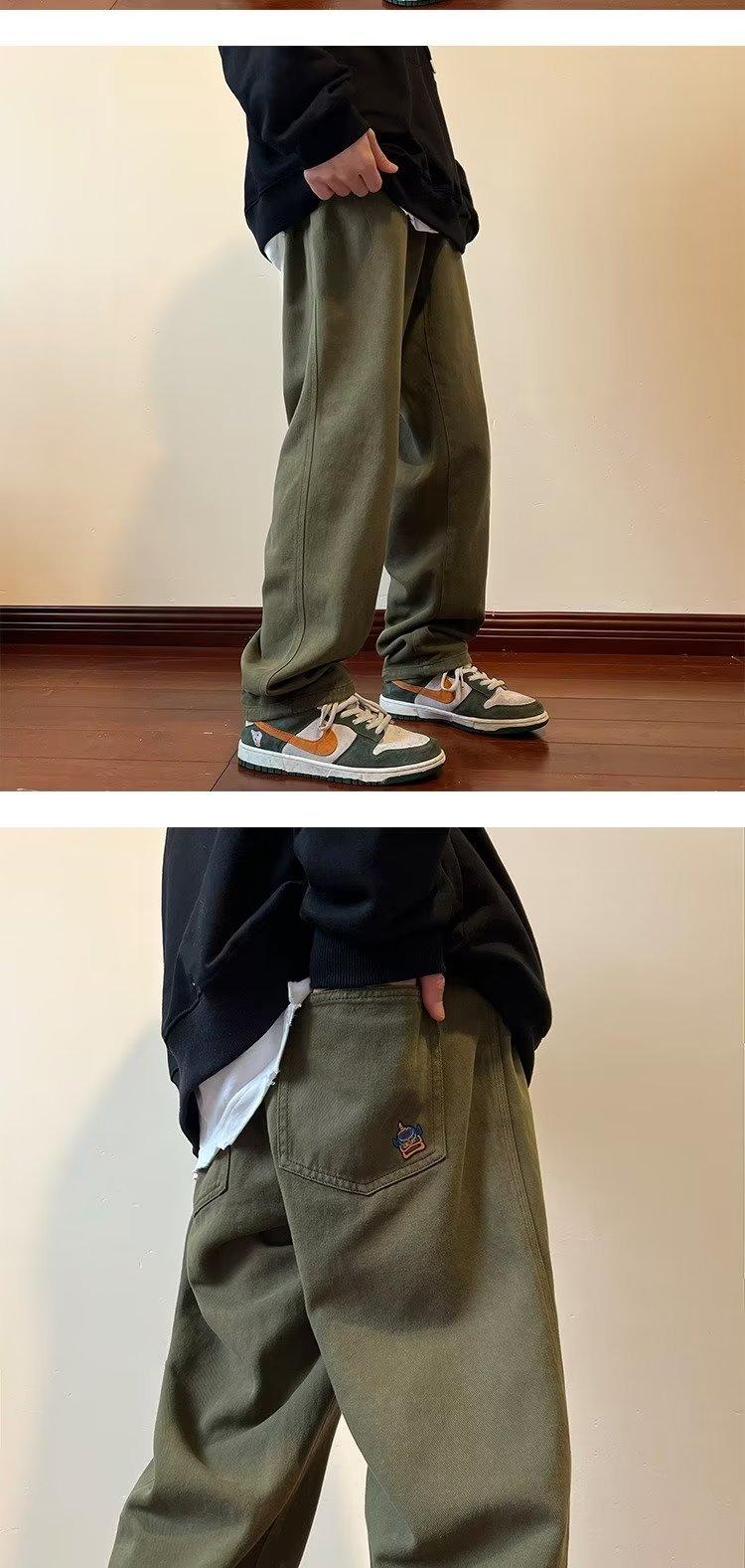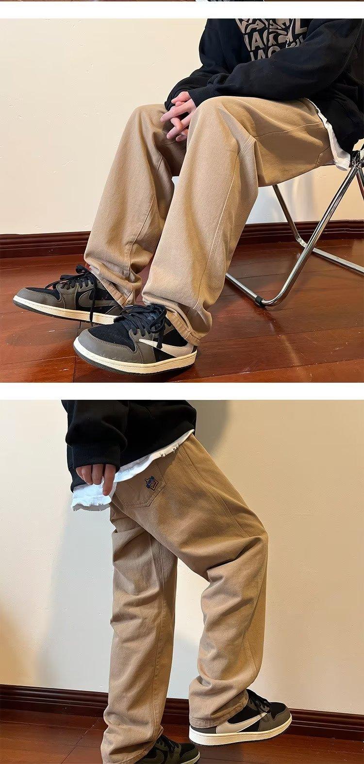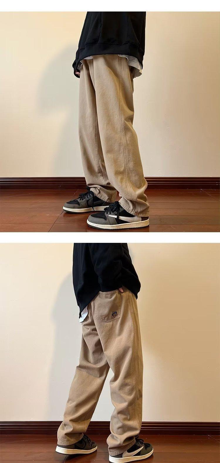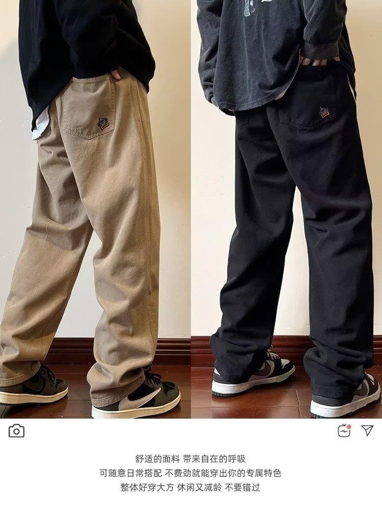 Pantalones casuales de primavera y otoño para hombre, pantalones rectos de moda, pantalones deportivos americanos holgados de pierna ancha