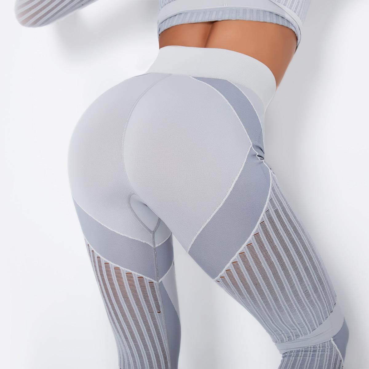 Pantalones de yoga deportivos ajustados de cintura alta y levantamiento de cadera, de secado rápido, de punto sin costuras, nuevos, transfronterizos, en stock