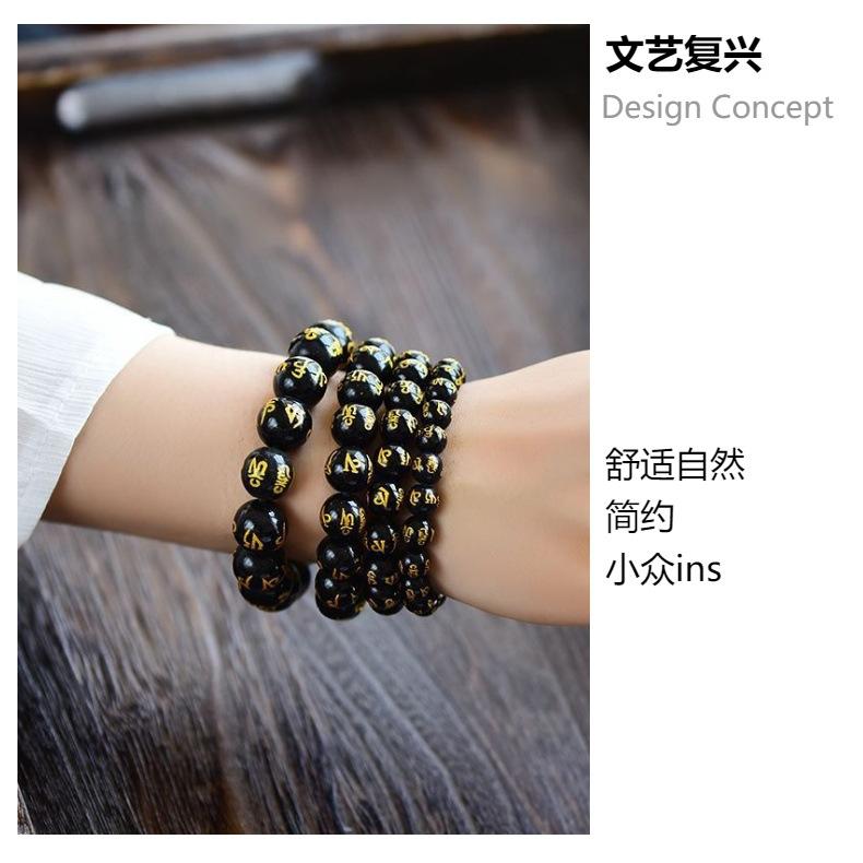 10mm19 pieces [six words mantra] Obsidian bracelet