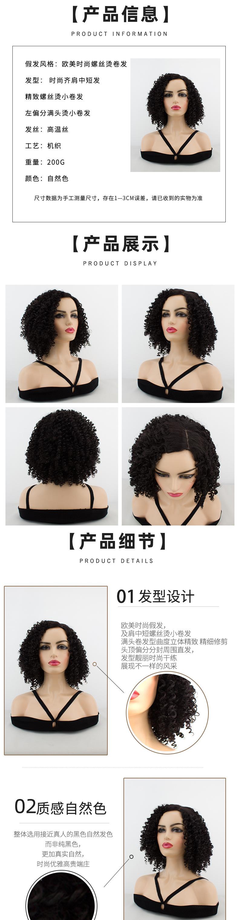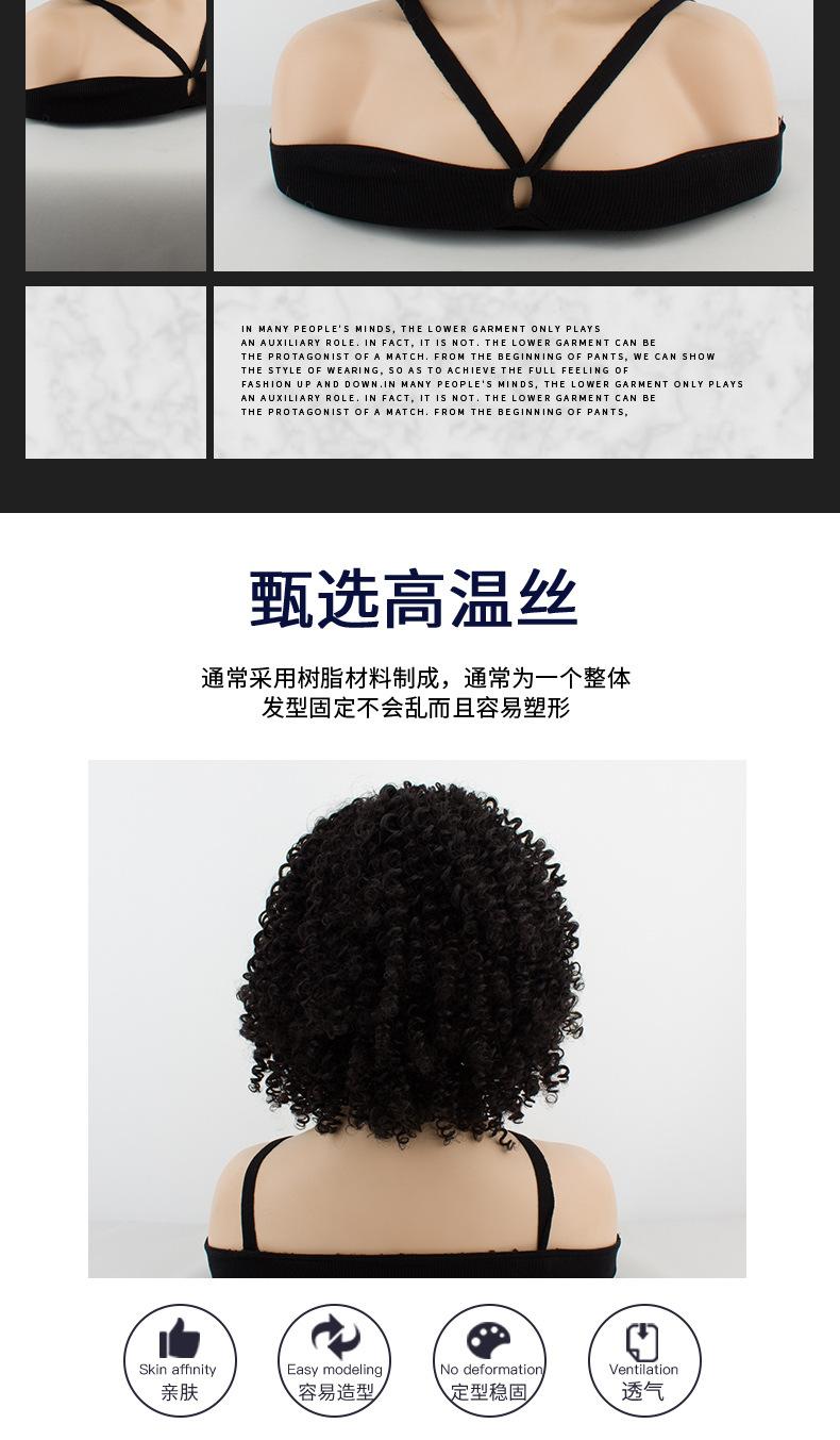 Pelucas Europeas y Americanas Moda Esponjosa Negro Africano Rizado Afro Cabello Corto Actuación Escénica Peluca Negra Tocado