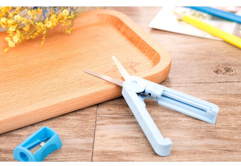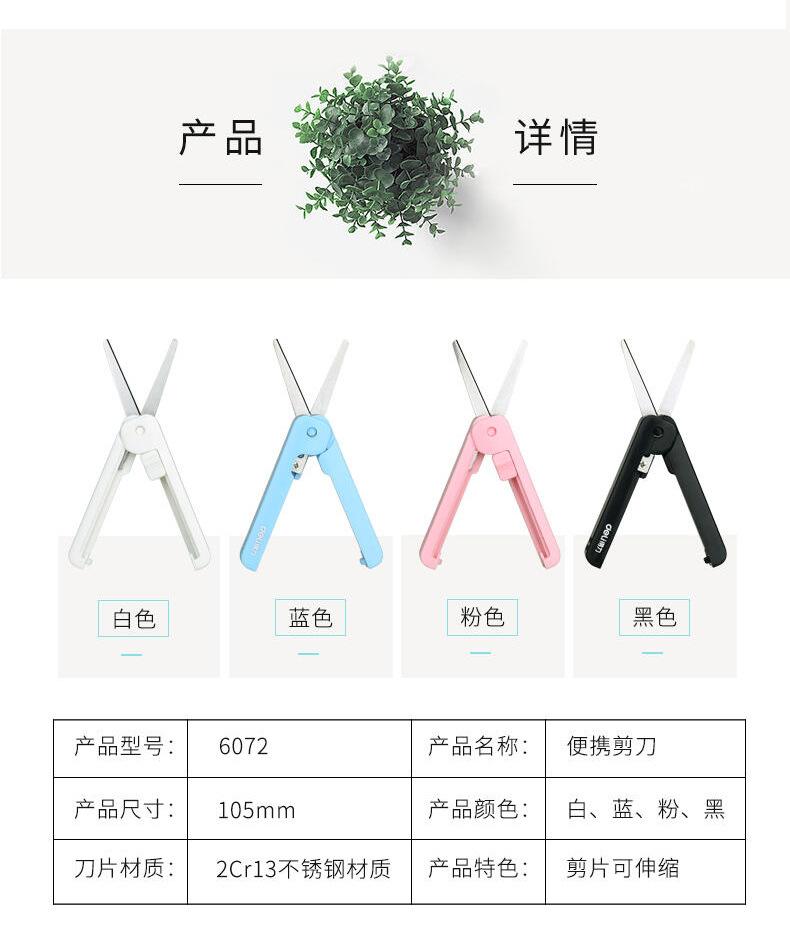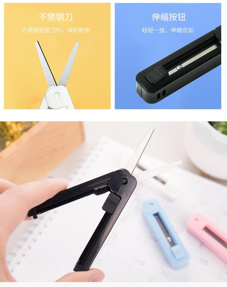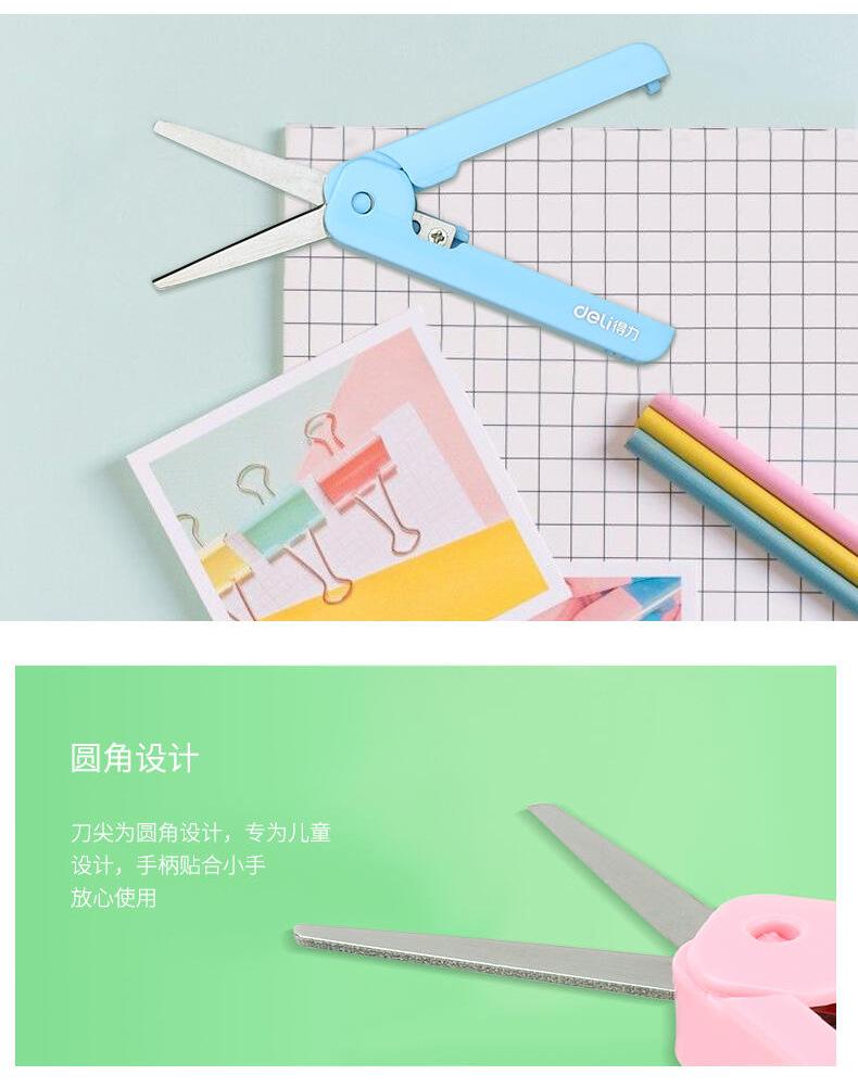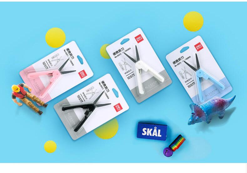 Tijeras creativas Deli 6072, tijeras prácticas retráctiles con tijeras pequeñas, tijeras domésticas de tamaño pequeño para estudiantes