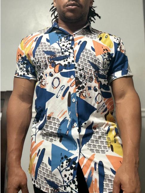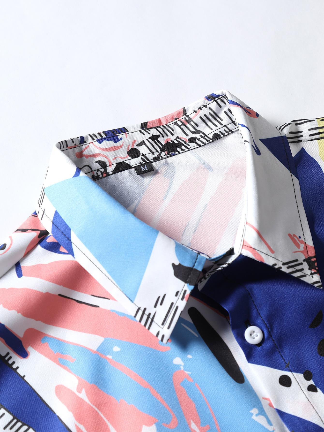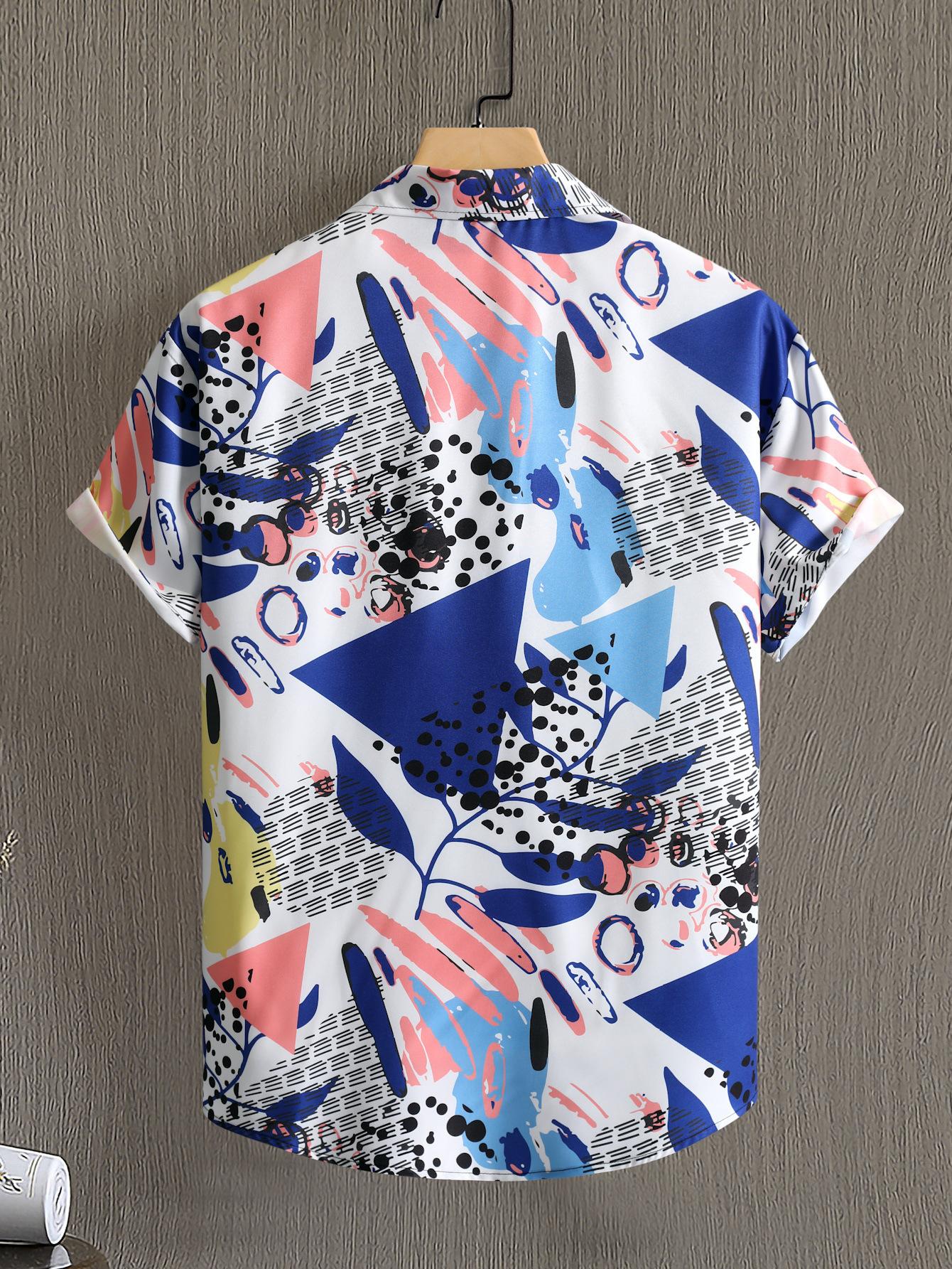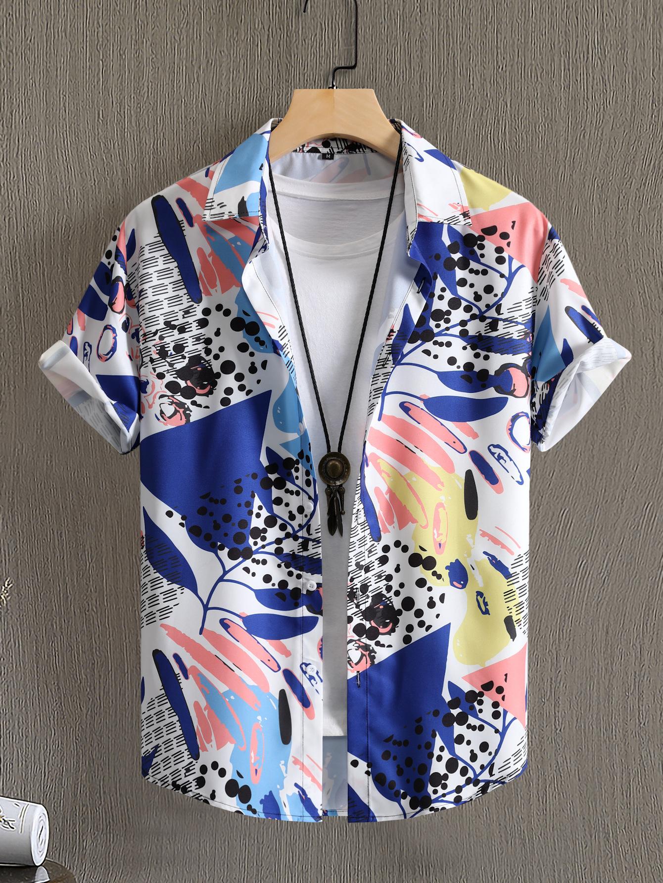 Camisa de solapa para hombre transfronteriza, camisa casual de manga corta para hombre, camisa para hombre con estampado digital, camisa para hombre