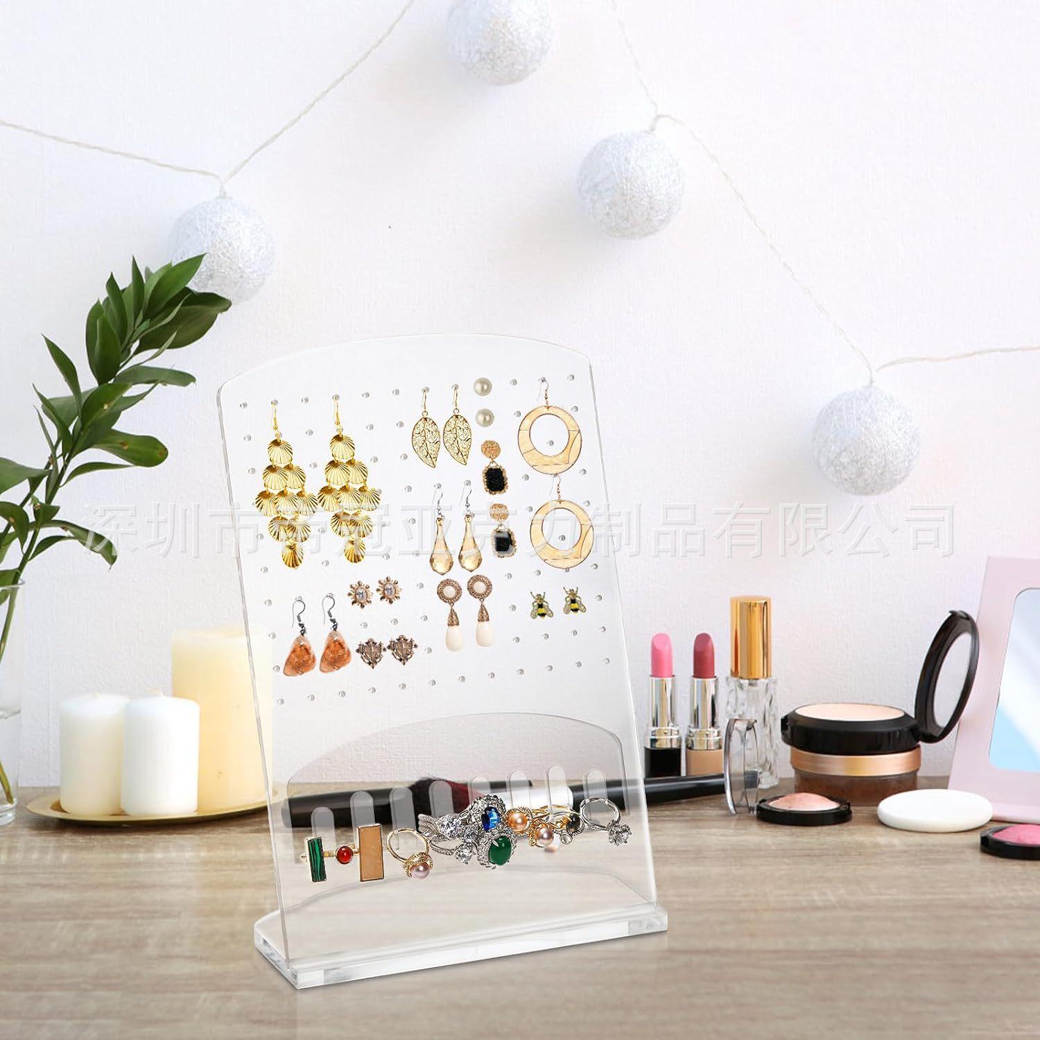 Expositor de acrílico transparente para pendientes con 120 agujeros y soporte para anillos, caja de almacenamiento para joyas, clavos para exhibición de pendientes.