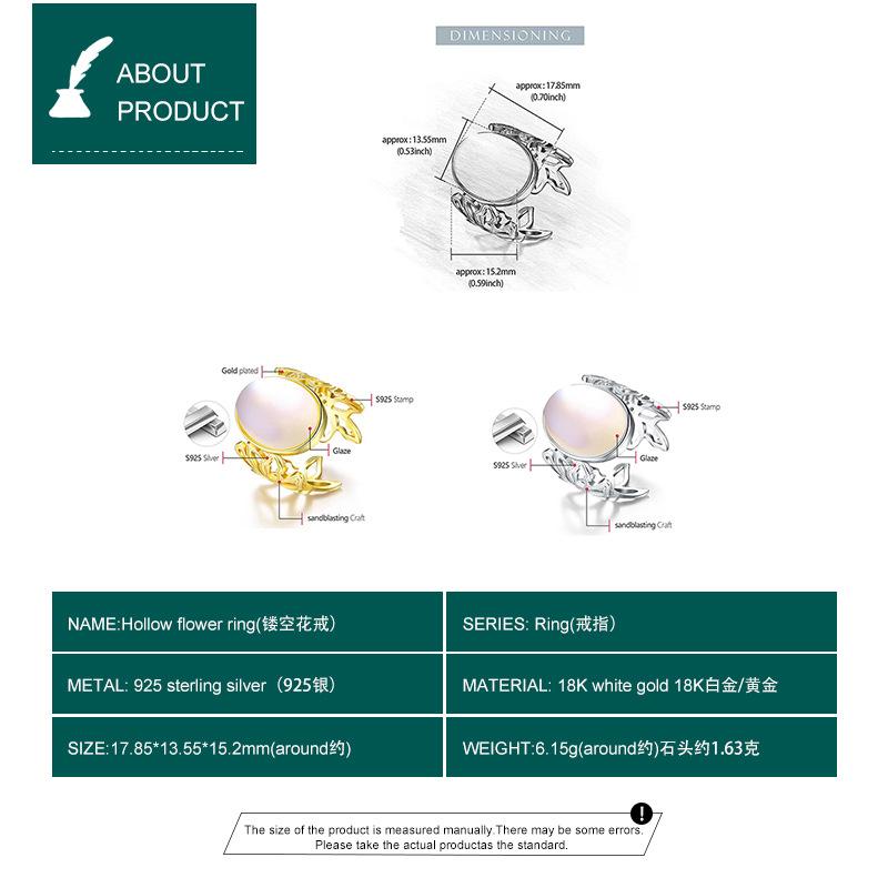 Material: Plata de ley S925 chapada en oro/plata de 18K, incrustada con anillo de flor hueca, el anillo interior está marcado S925, cada uno de aproximadamente 6.15 gramos.