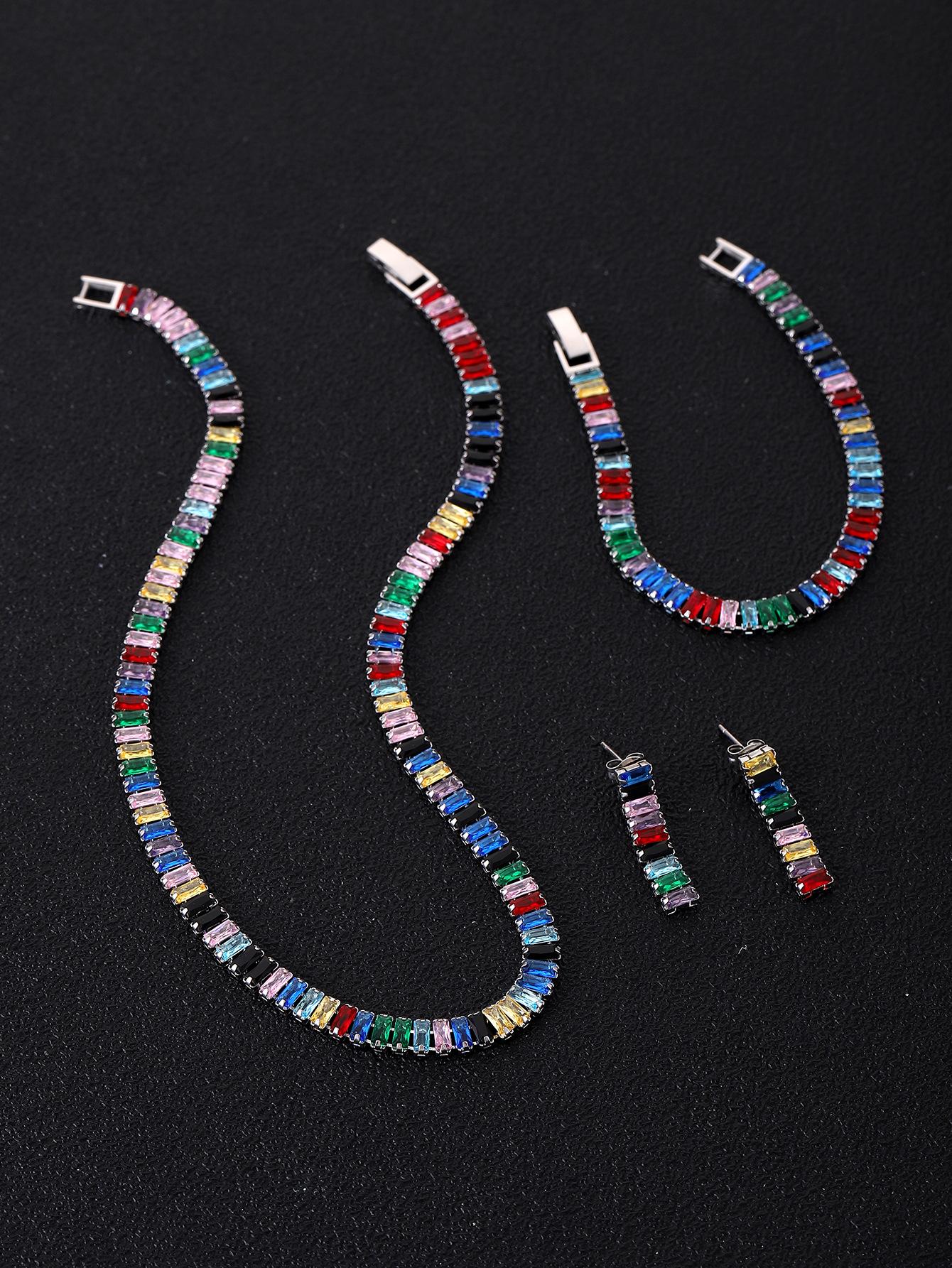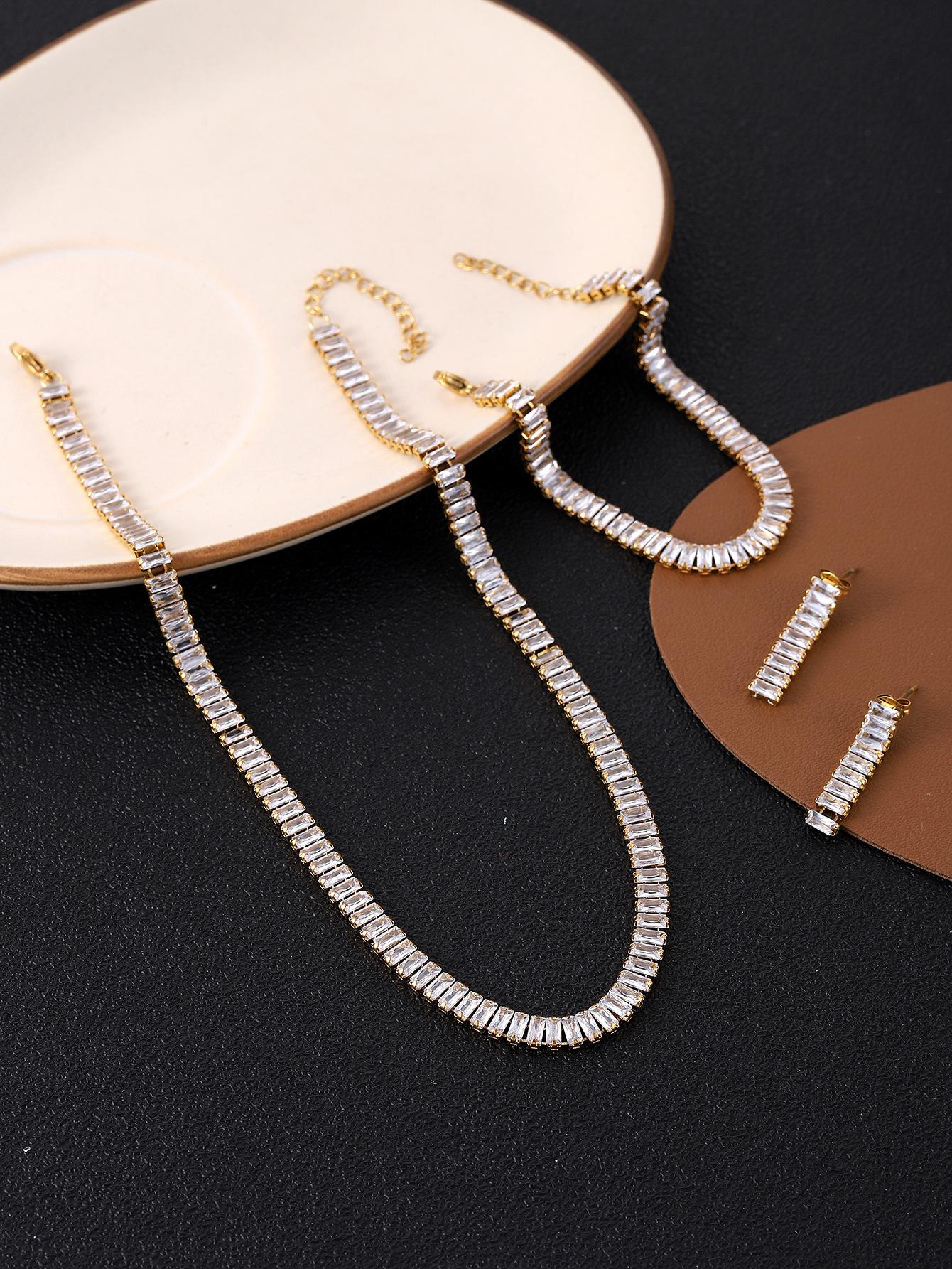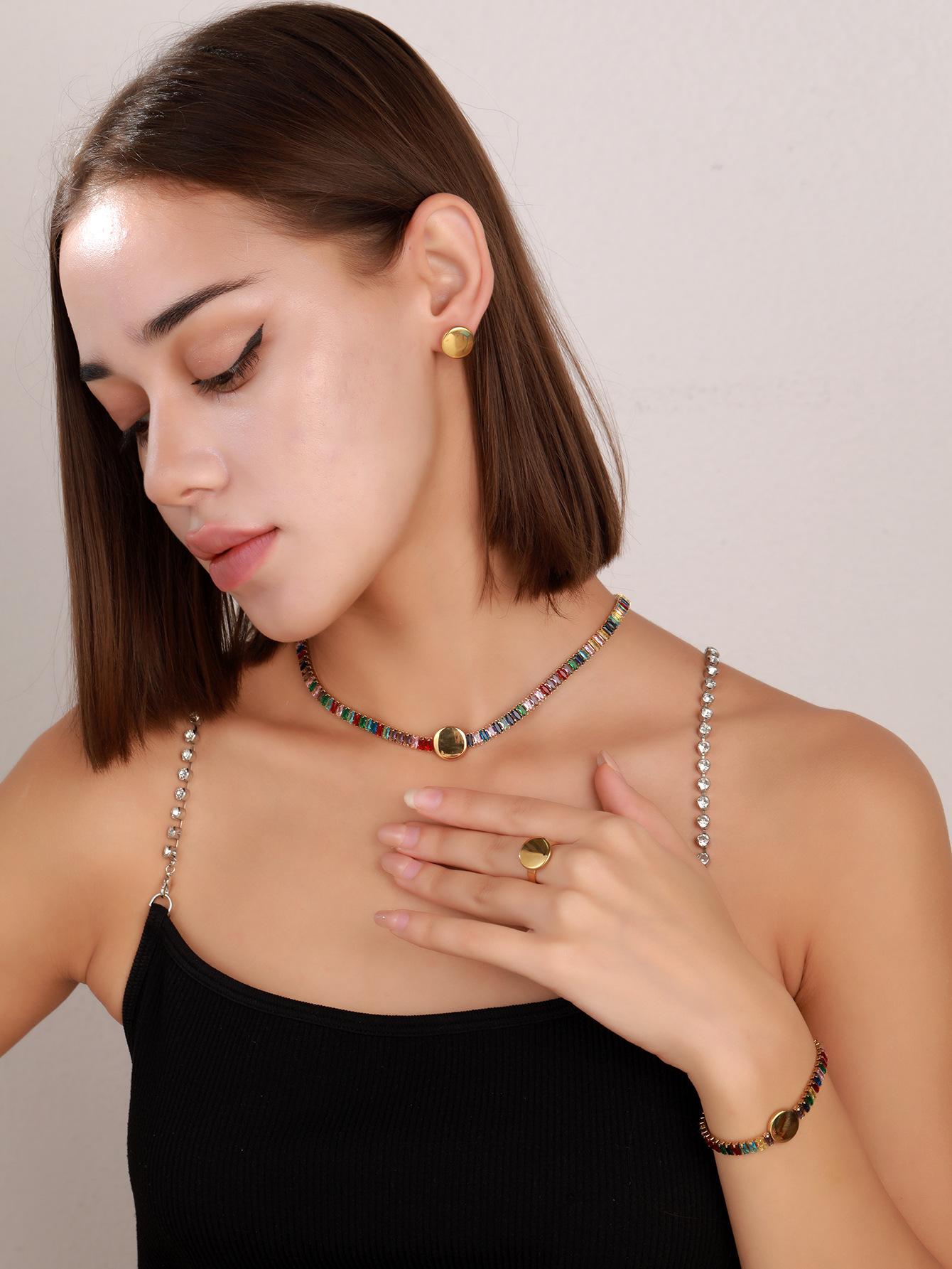 Compra Joyería Popular Transfronteriza Versátil Nicho Europeo y Americano Collar de Zirconia de Color Acero de Titanio Aretes Pulsera Set Listo para la Venta al por mayor en Joom.pro