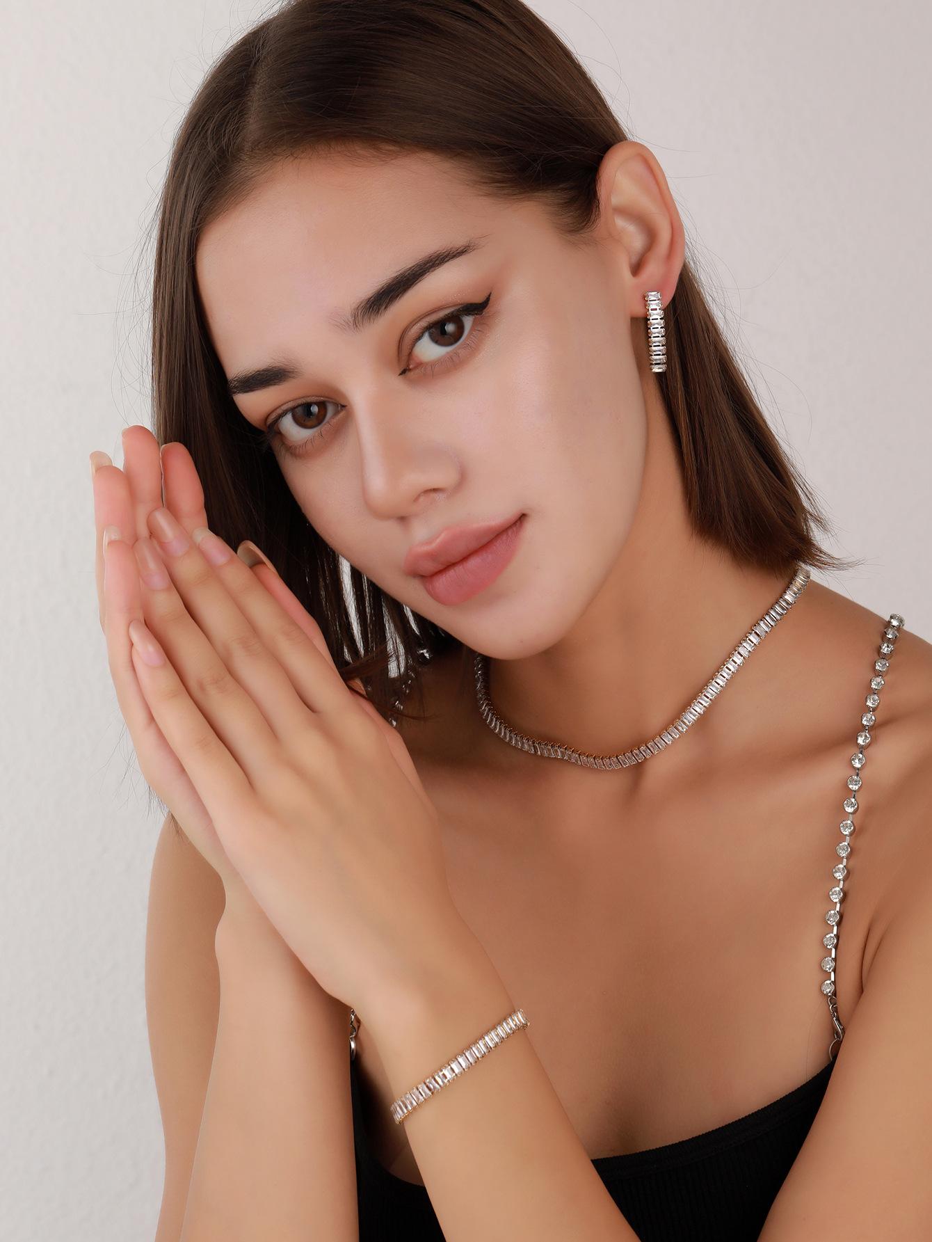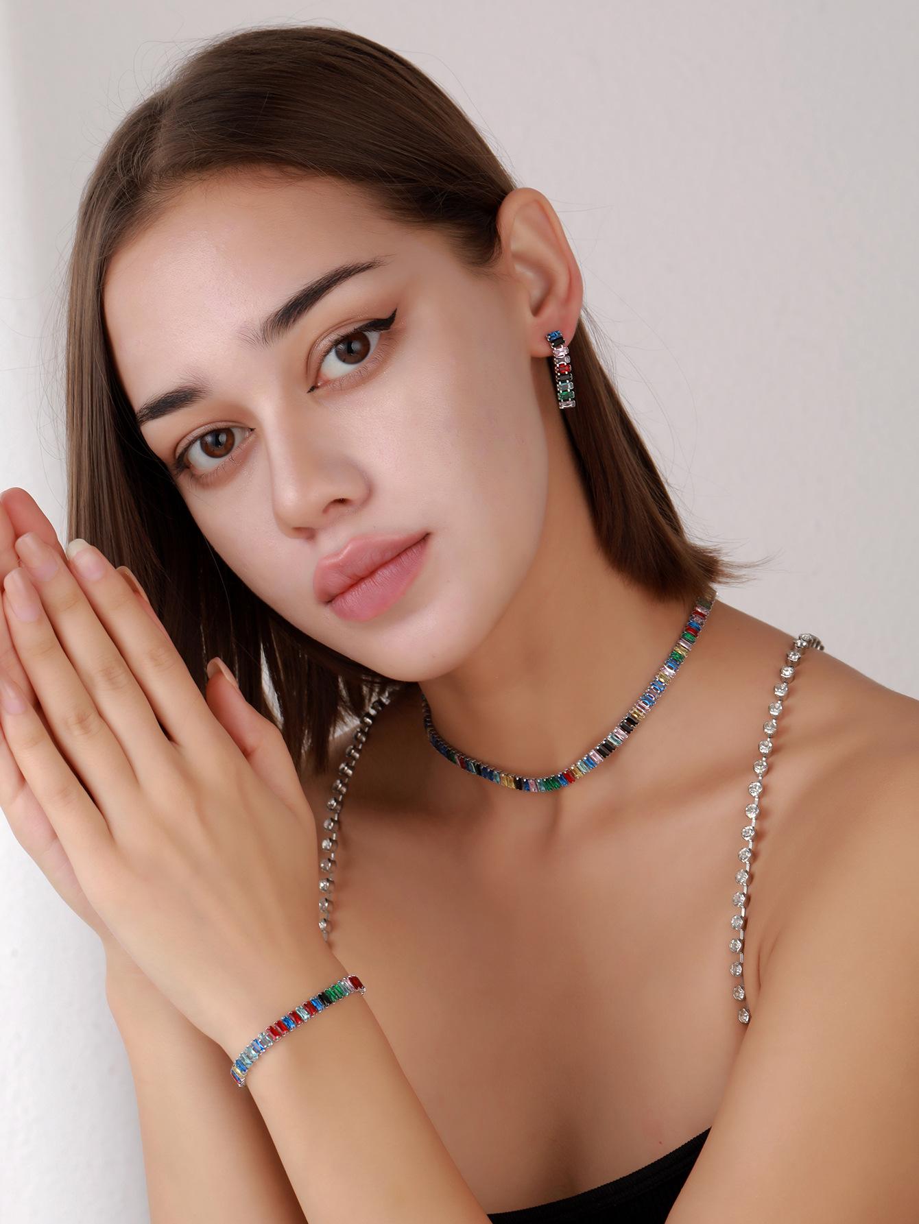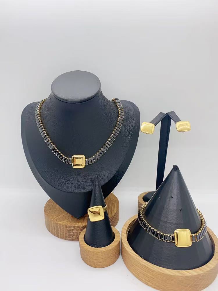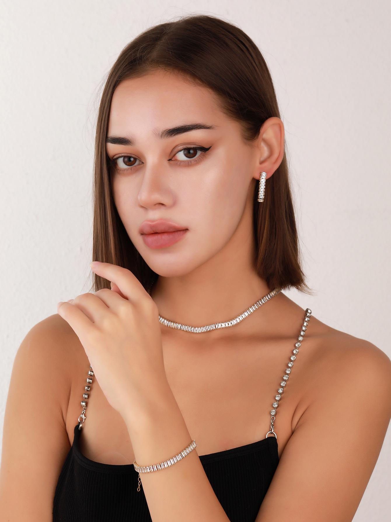 Compra Joyería Popular Transfronteriza Versátil Nicho Europeo y Americano Collar de Zirconia de Color Acero de Titanio Aretes Pulsera Set Listo para la Venta al por mayor en Joom.pro