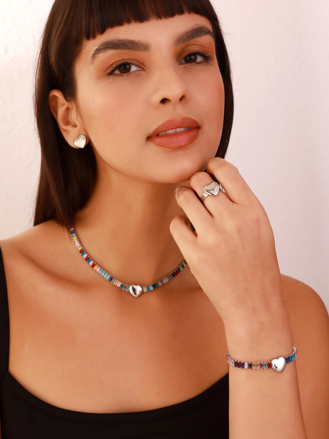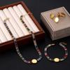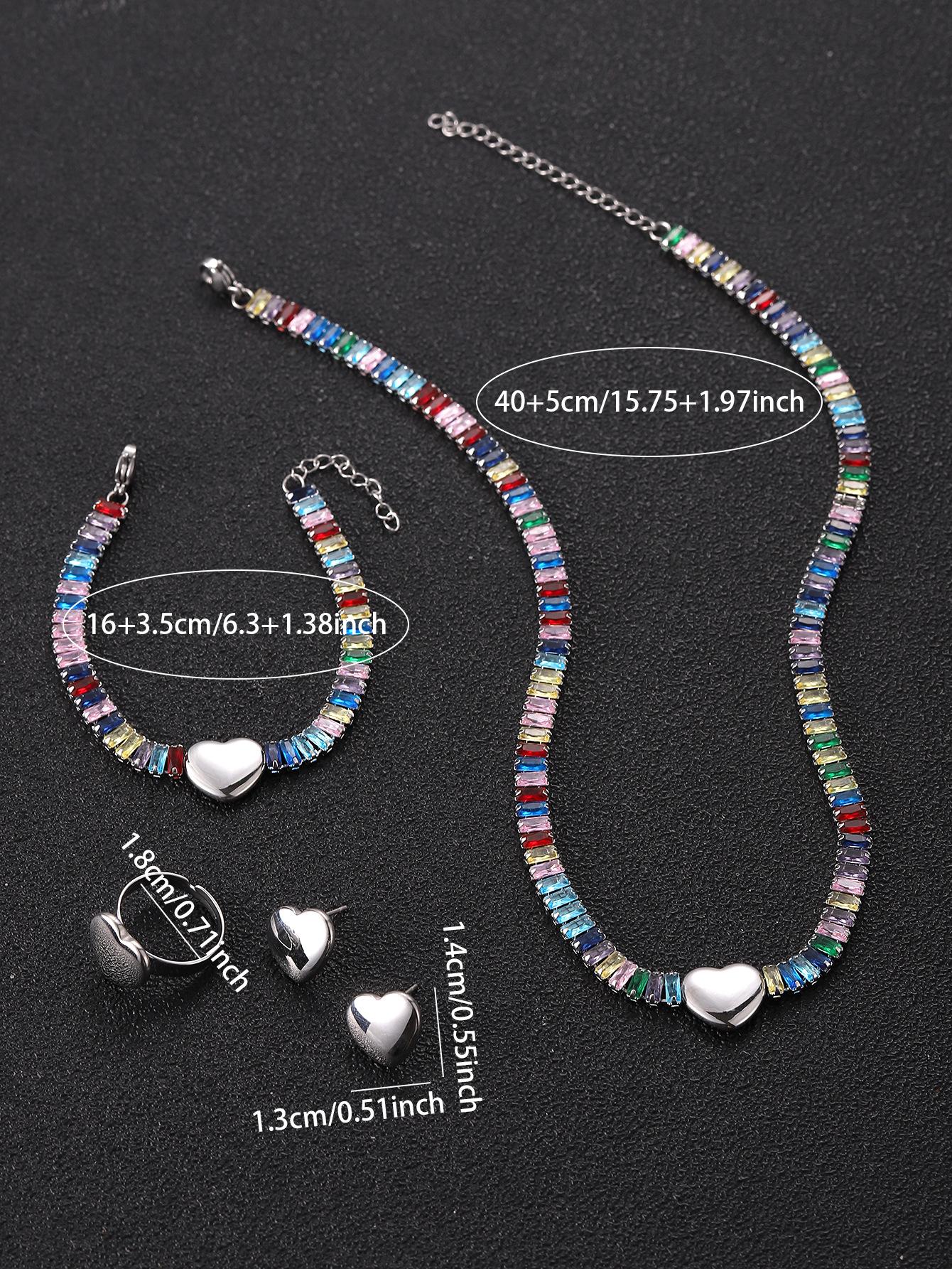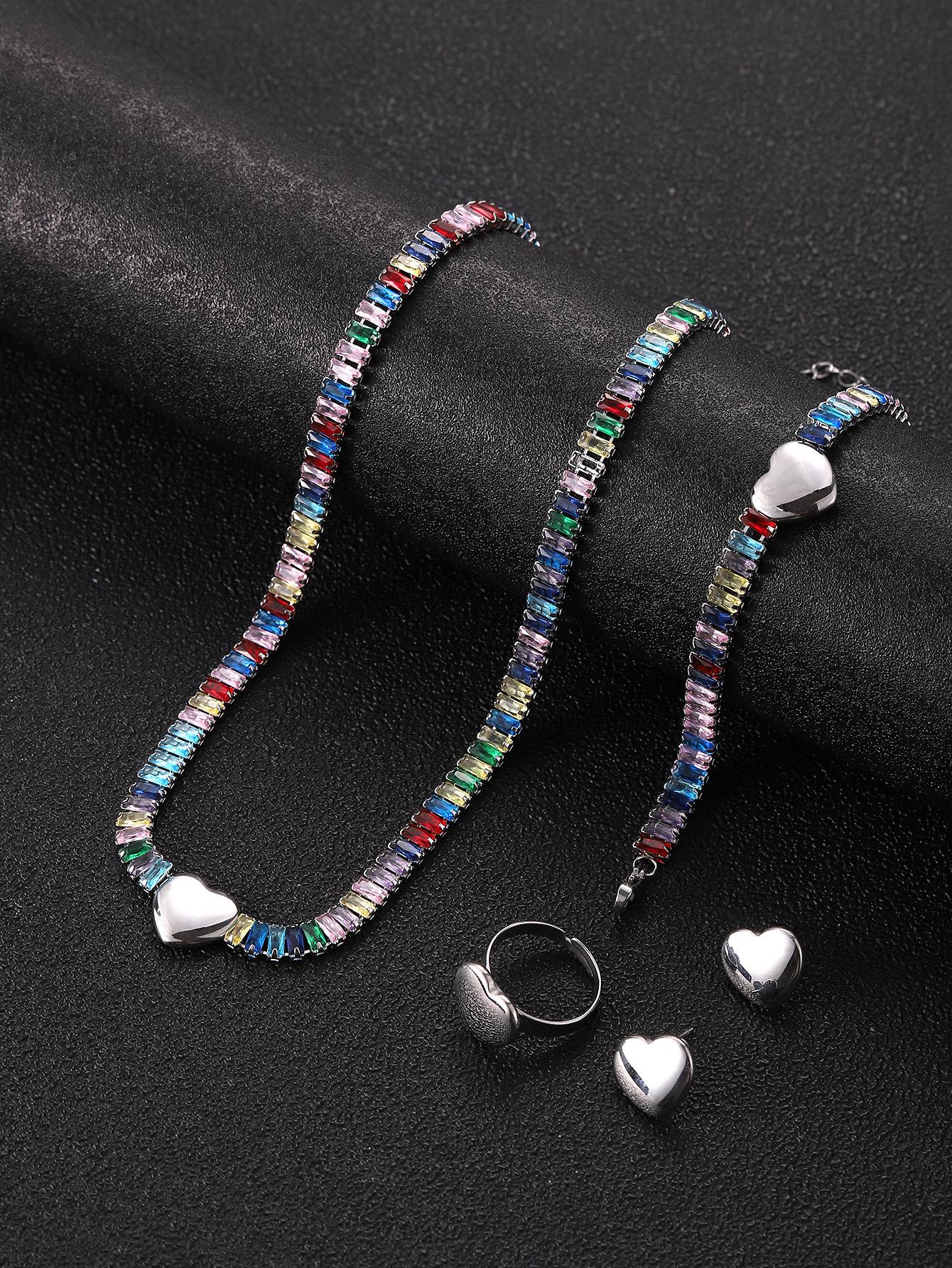 Joyería Popular Transfronteriza Versátil Nicho Europeo y Americano Collar de Zirconia de Color Acero de Titanio Aretes Pulsera Set Listo para la Venta