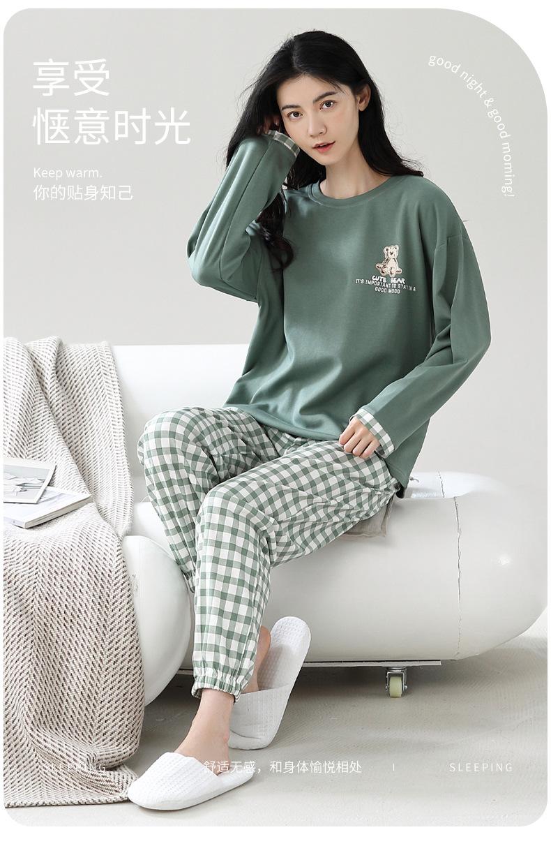 Pijamas de mujer de primavera y otoño, jersey de algodón de manga larga, holgado, de talla grande, nuevo traje de algodón para mujer para otoño e invierno, ropa de casa