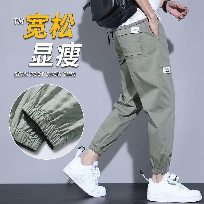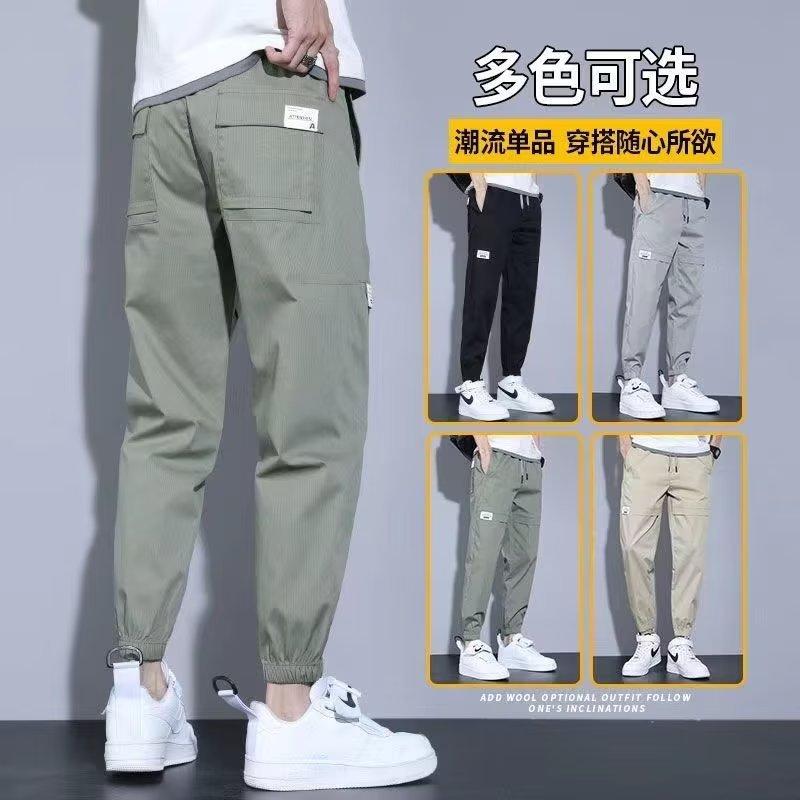 Pantalones casuales de otoño para hombre, holgados, de secado rápido, deportivos, con múltiples bolsillos y hasta el tobillo, monos de moda de estilo coreano 2023.