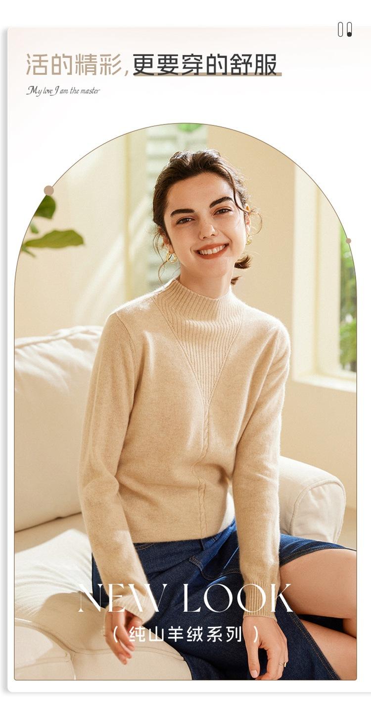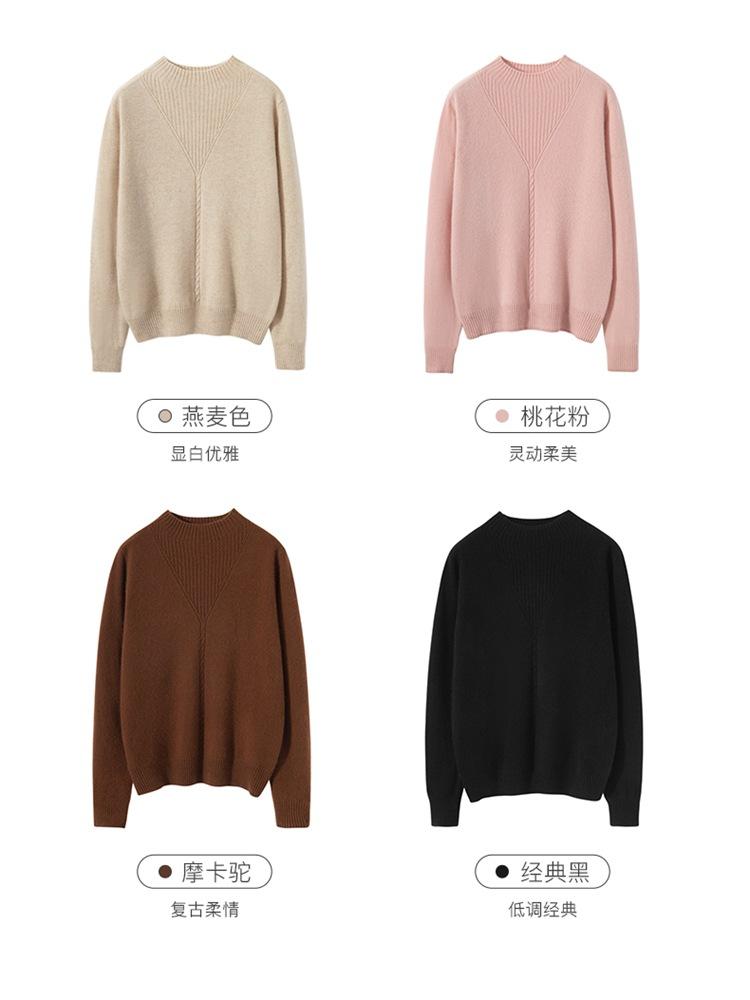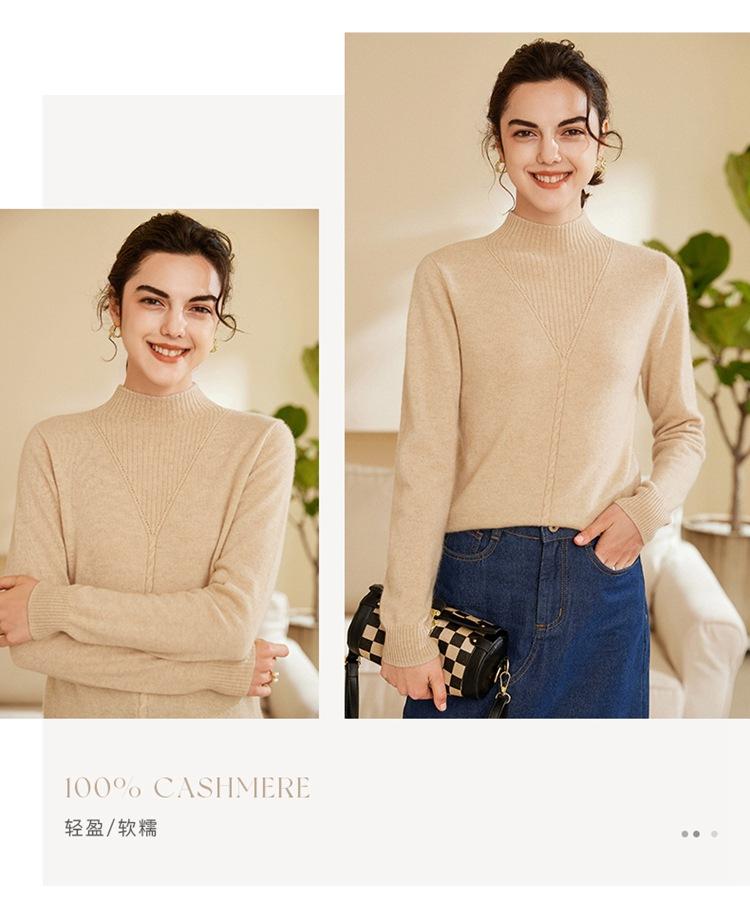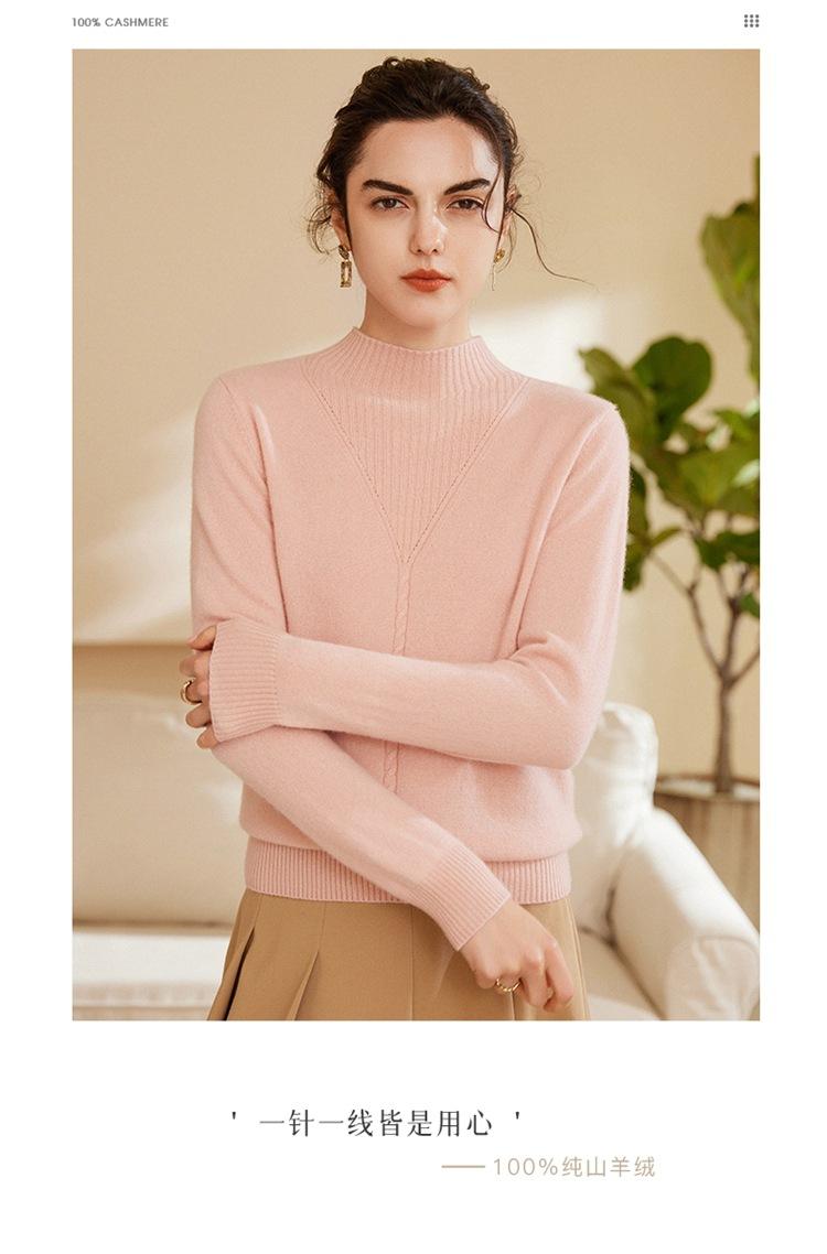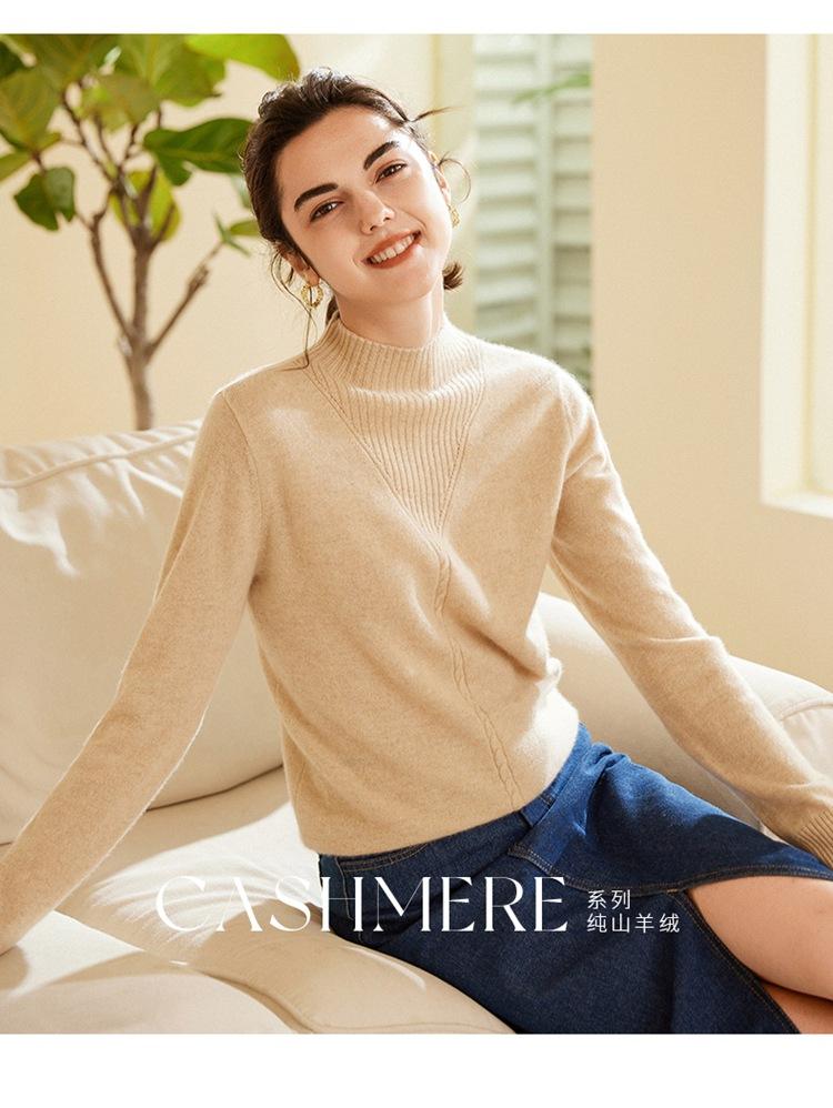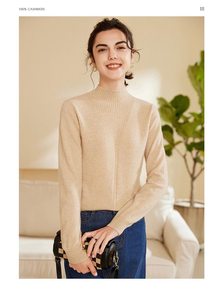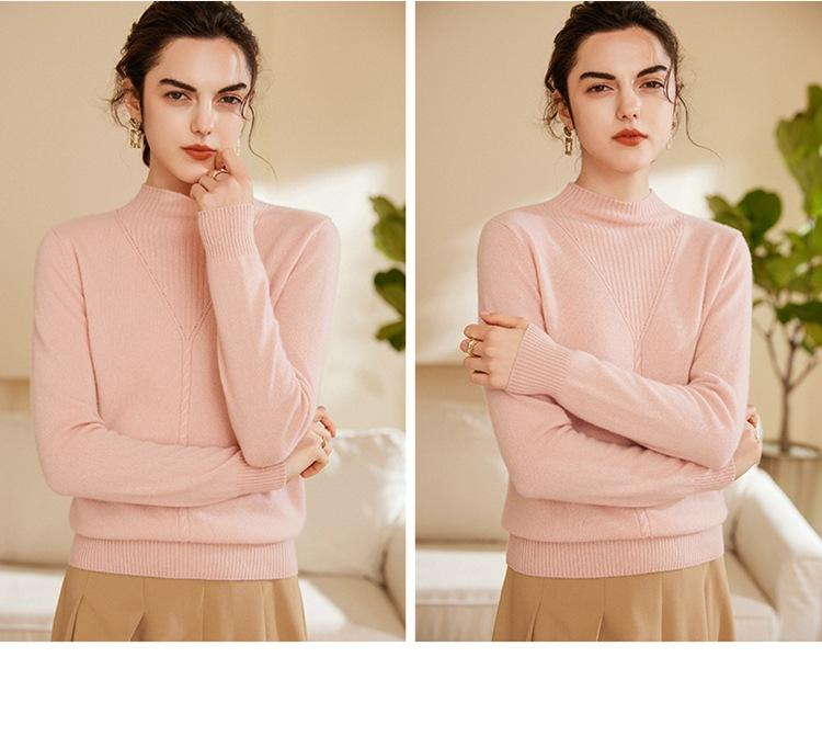 Nuevo jersey de manga larga 100% cachemira pura, camisa de fondo para mujer, suéter de cachemira ajustado con cuello alto y medio otoño e invierno