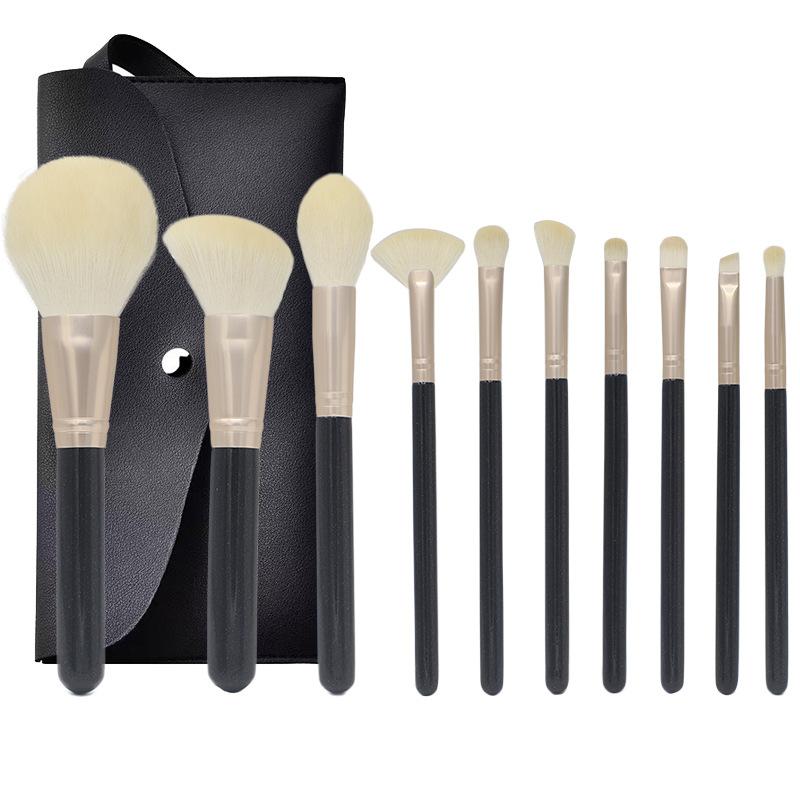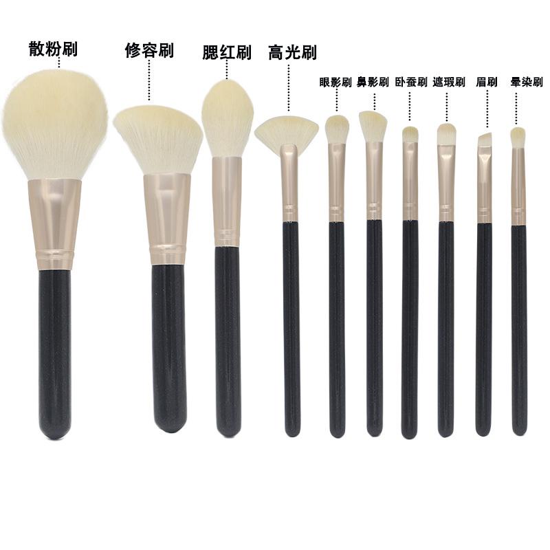Juego completo de 10 pinceles de maquillaje negros transfronterizos, mango negro perlado, cerdas suaves, pincel suelto para rubor, herramientas de belleza