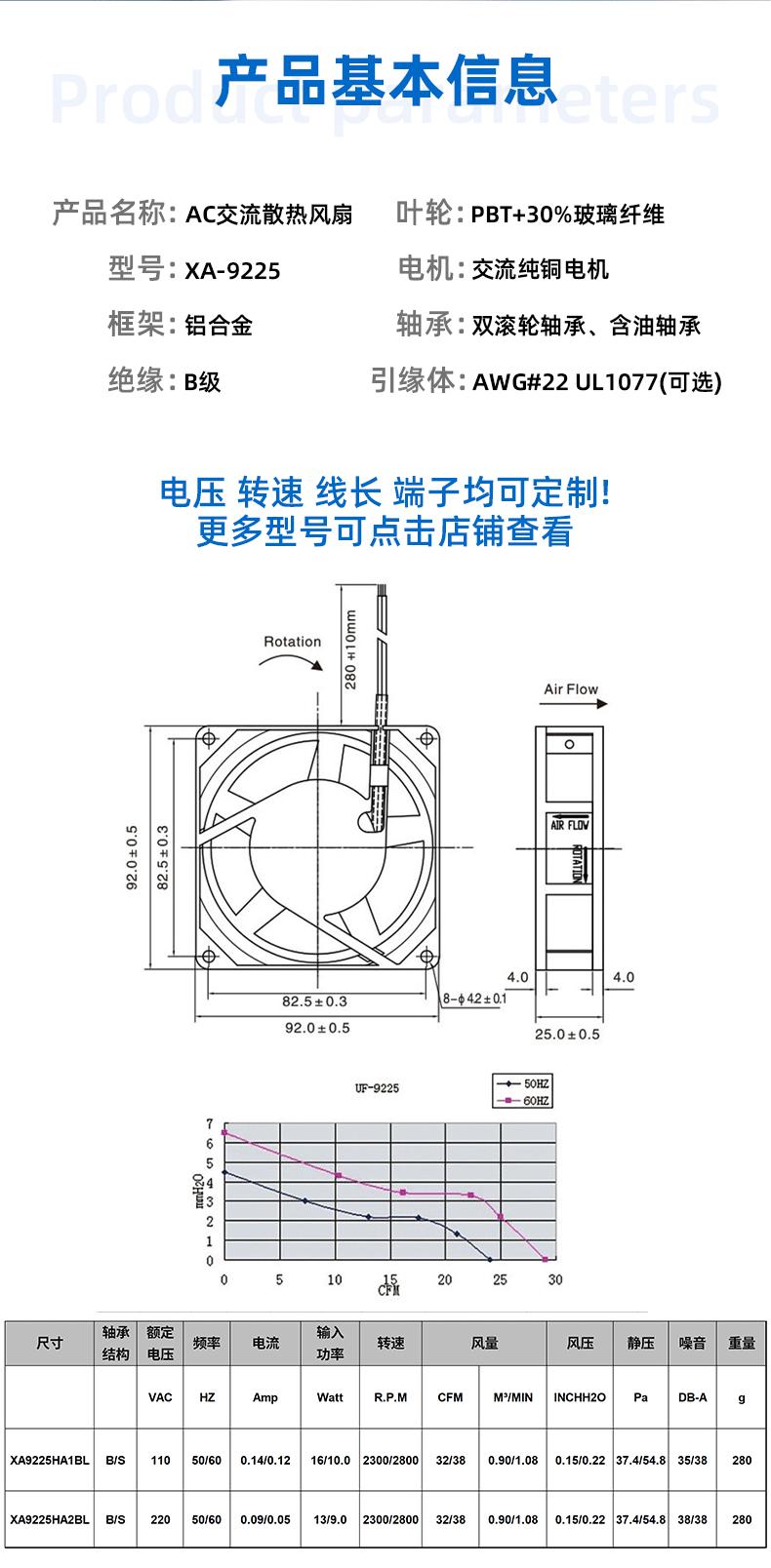 220V oil fan, 220V double ball fan, 110V oil containing fan, 110V double ball fan, 802 louvers