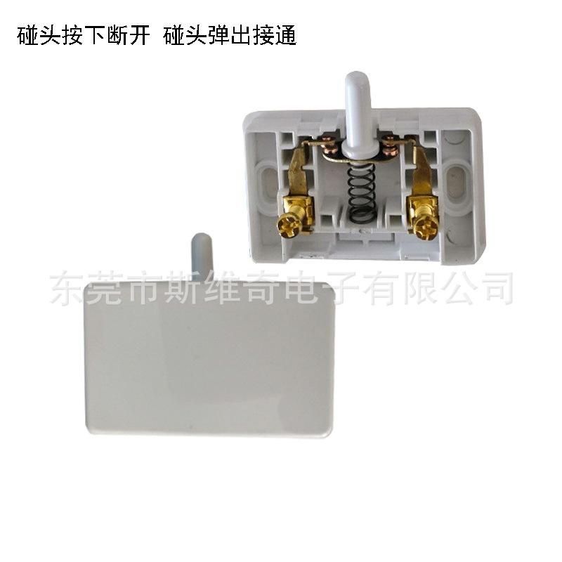 Nombre: Interruptor de armario de puerta Tamaño: 33*51*18mm Potencia nominal: 1A 250VAC Función: Cuando se abre la puerta del armario, la luz se enciende; cuando se cierra la puerta del armario, la luz se apaga.