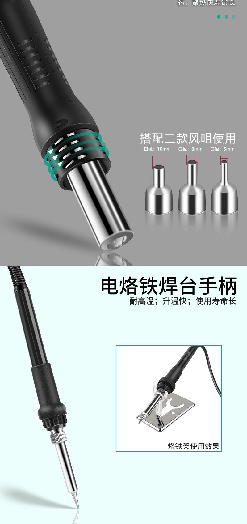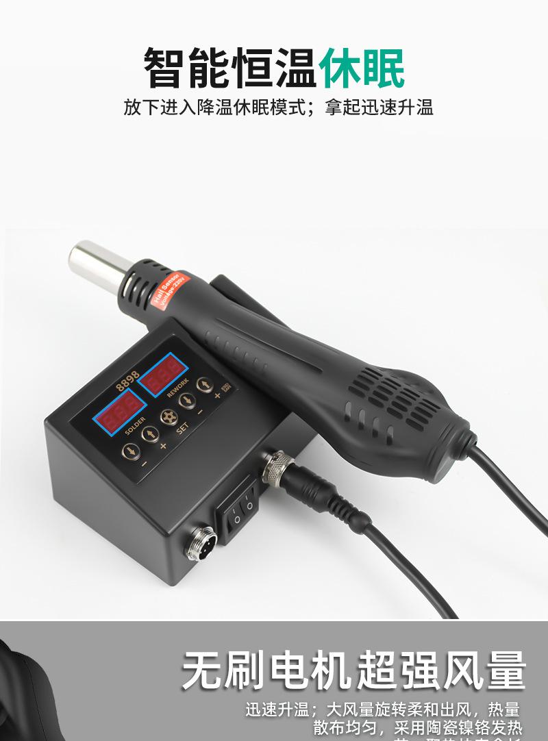 8898 two-in-one blowing soldering station is equipped with a simple rack (medium gauge 220V) half aluminum tin absorber 50g tin wire 2 tweezers 5-piece soldering iron head