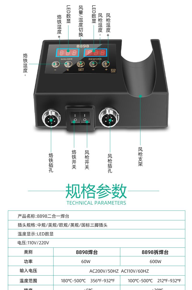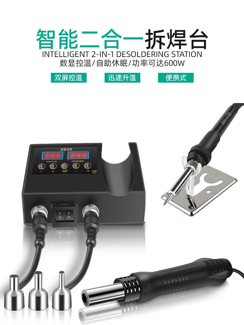 Especial transfronterizo 8898 estación de soldadura de pistola de aire caliente 110V doble pantalla digital dos en uno estación de reparación de soldador SMT 220V