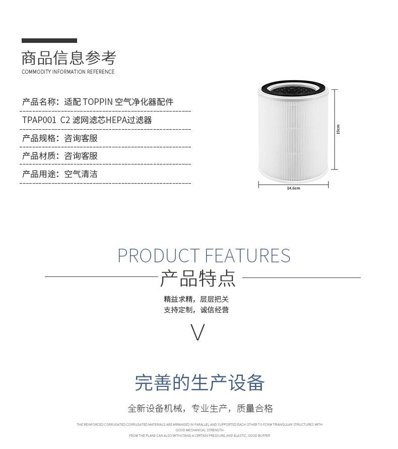 Adecuado para accesorios de purificador de aire TOPPIN TPAP001 Elemento de filtro C2 Filtro HEPA