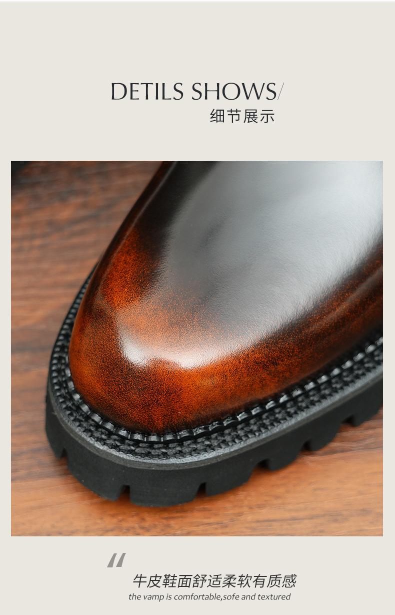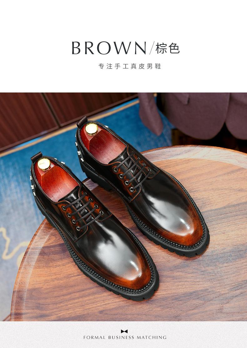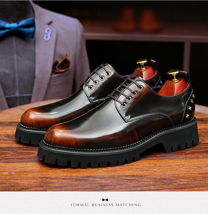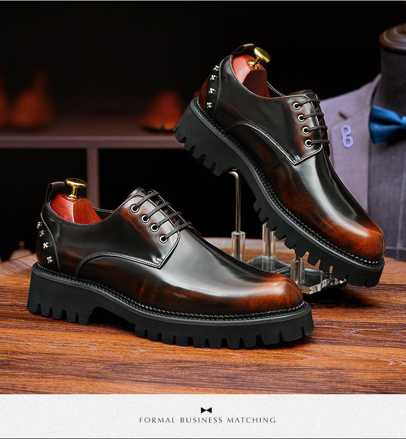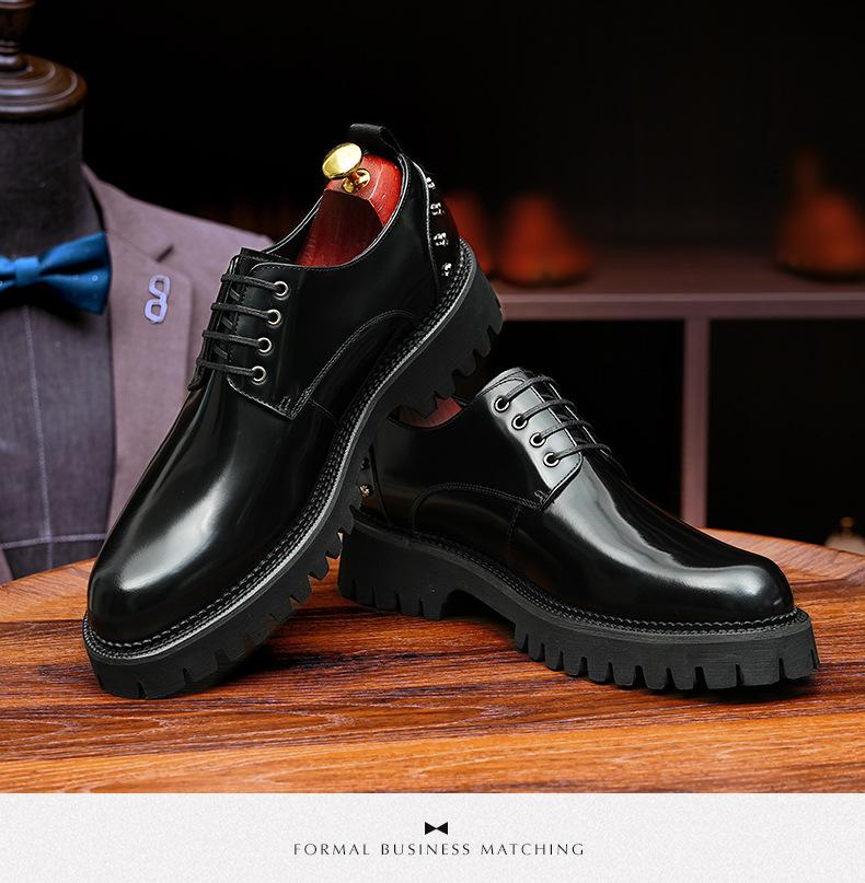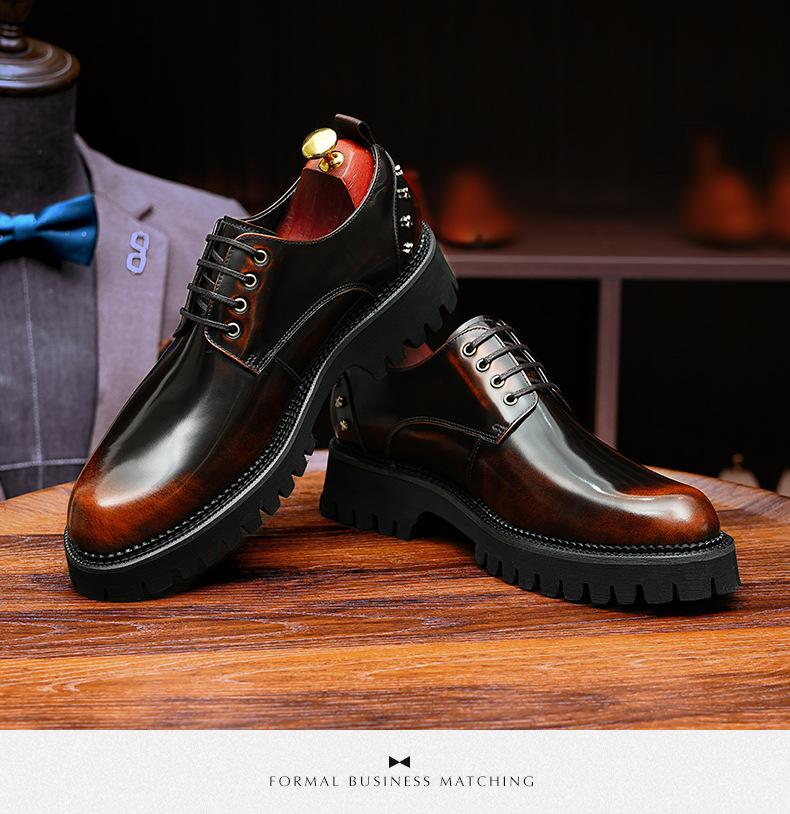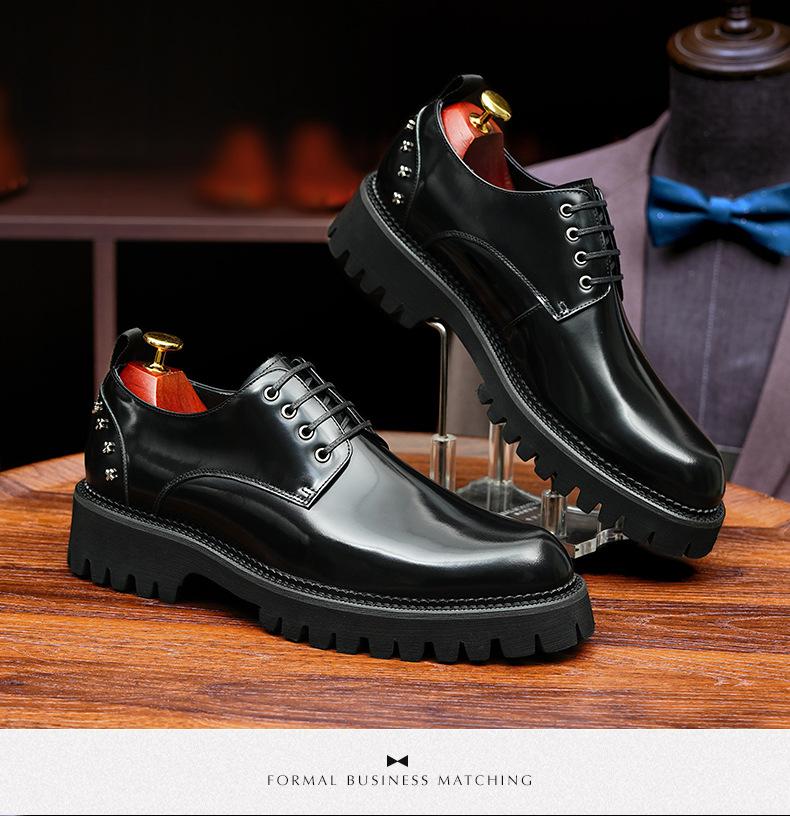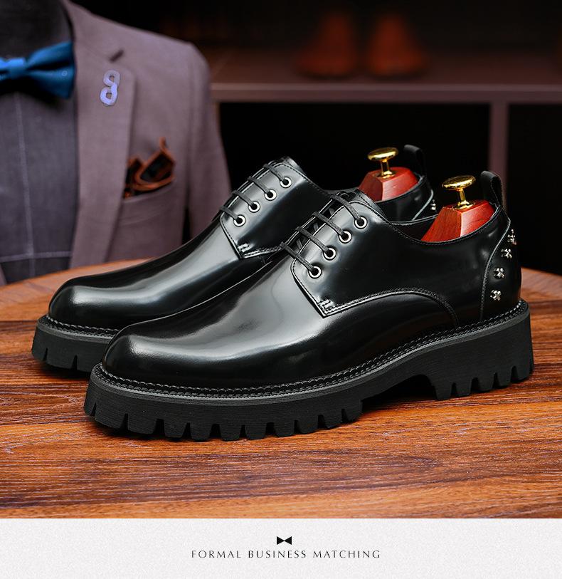 Zapatos Casuales de Cuero Británicos para Hombre Formales de Negocios Cuero Genuino Suela Gruesa Aumentada 2025 Nuevos Zapatos de Hombre de Estación Europea de Cuero Patentado Brillante