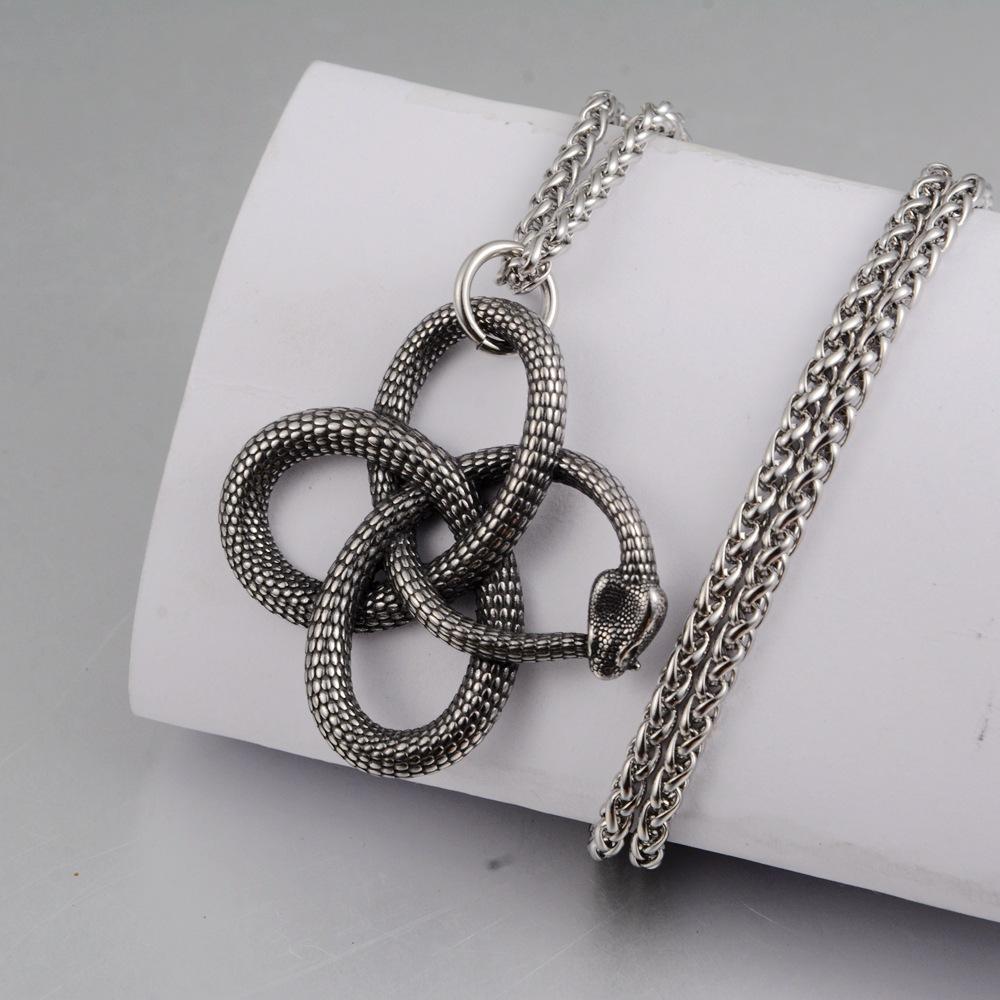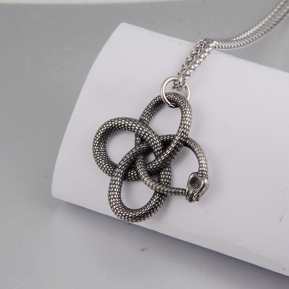 Collar con colgante de nudo de serpiente retro, personalidad, moda informal para hombres y mujeres, joyería de acero de titanio, comercio exterior, suministro transfronterizo, moda europea y americana.
