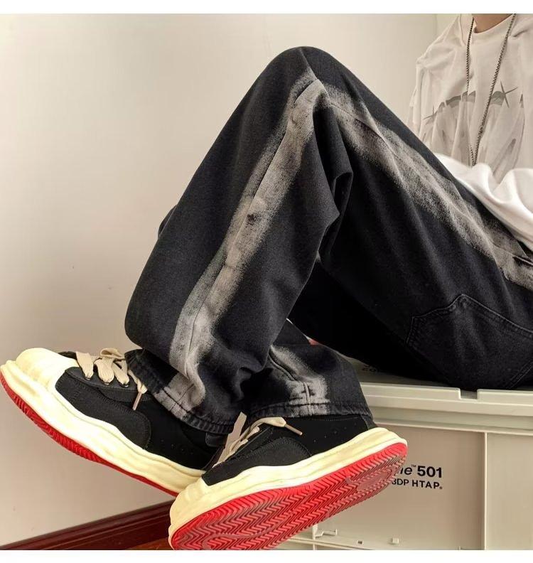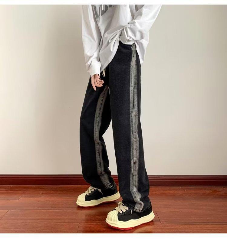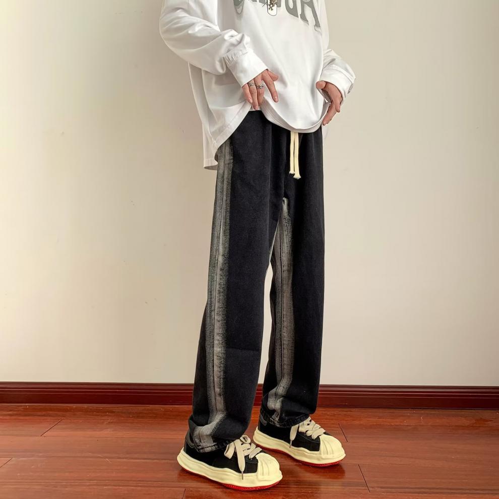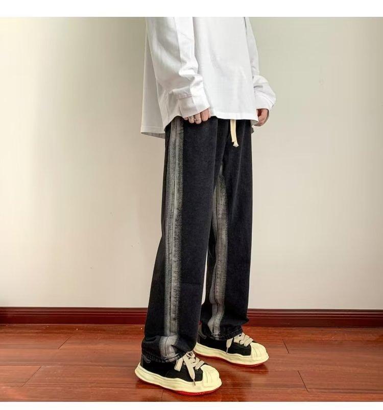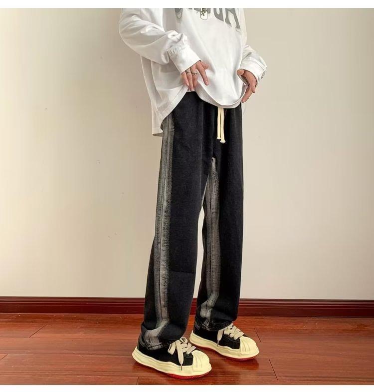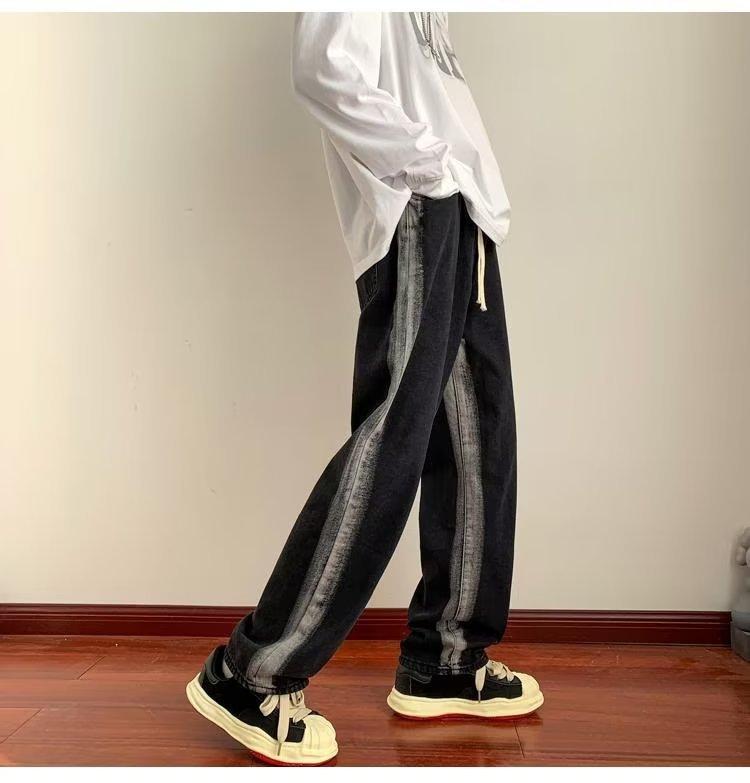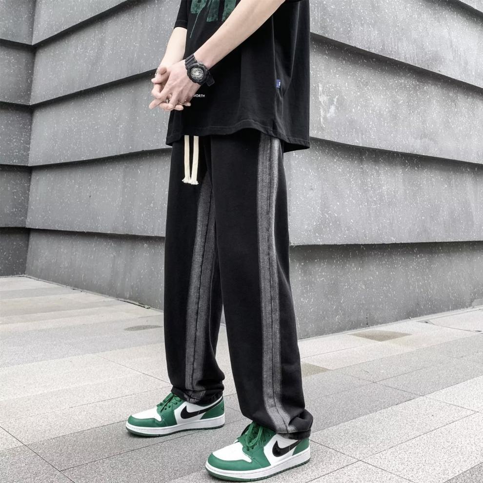 Pantalones deportivos largos informales rectos y sueltos con rayas laterales para otoño e invierno.