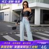 Primavera y Verano 2024 Nuevos Amazon Moda Europea y Americana Jeans Elásticos de Pierna Recta Lavados de Cintura Alta para Mujer Xintang Denim Now