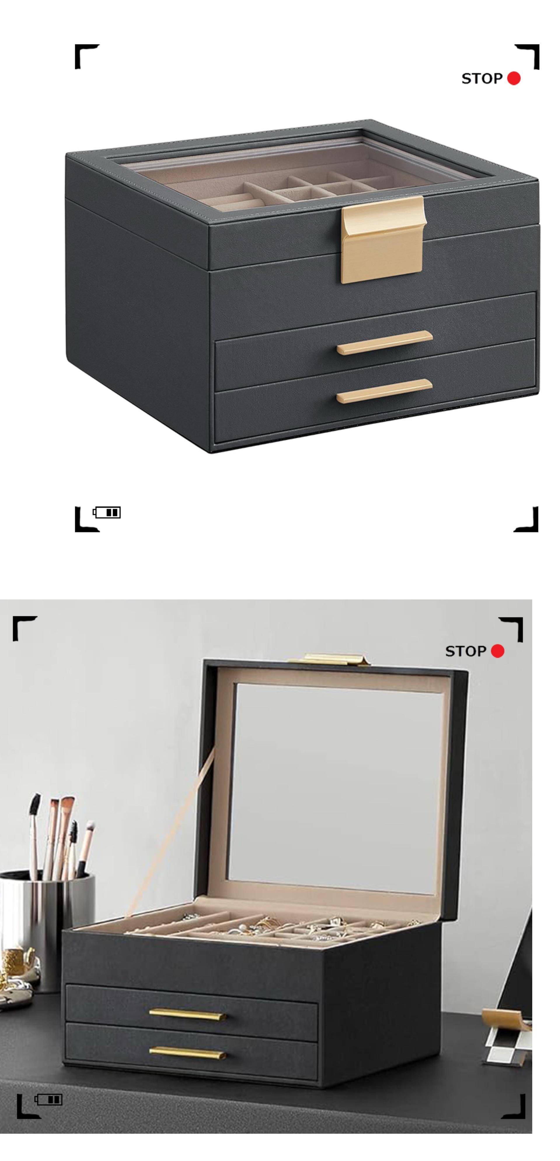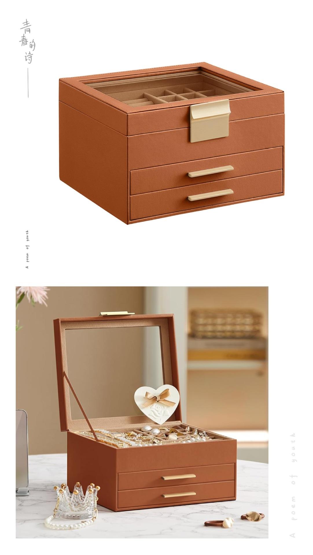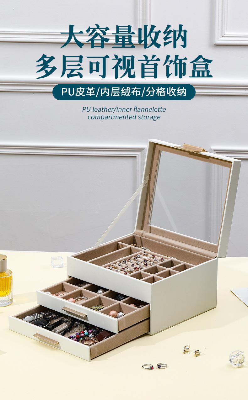 Nueva caja de joyería de alta gama con ventana para pendientes, aretes, caja de joyería para el hogar, caja de almacenamiento para anillos, collares y joyas.