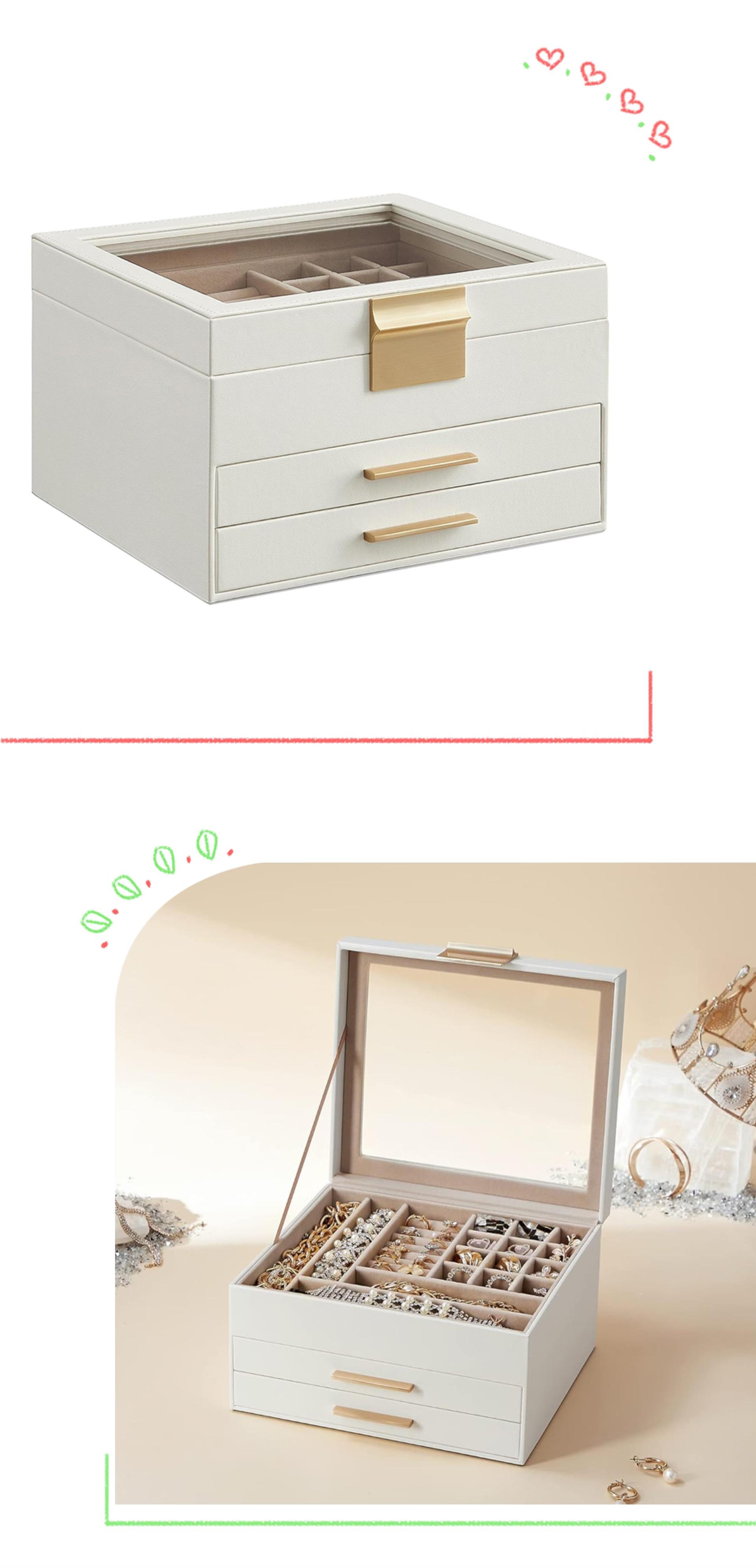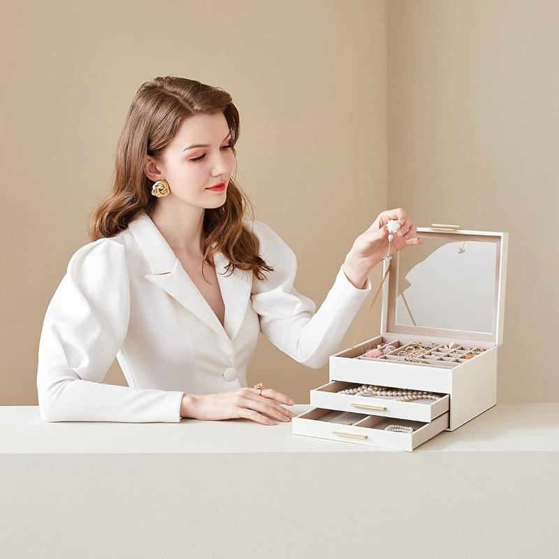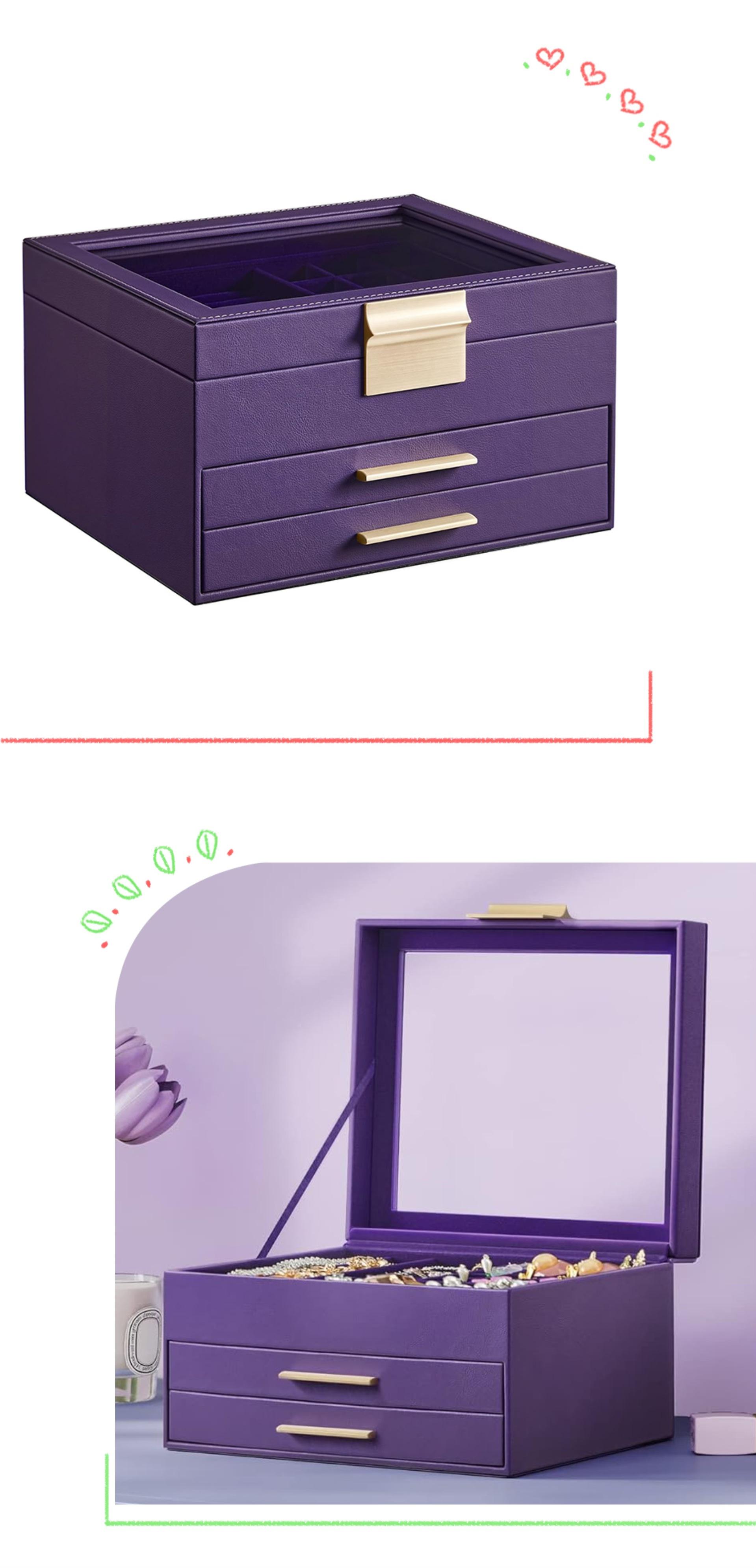 Nueva caja de joyería de alta gama con ventana para pendientes, aretes, caja de joyería para el hogar, caja de almacenamiento para anillos, collares y joyas.