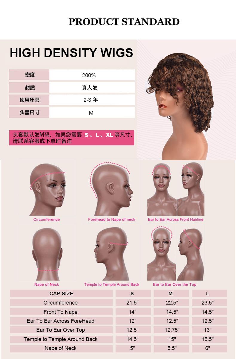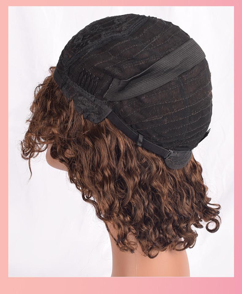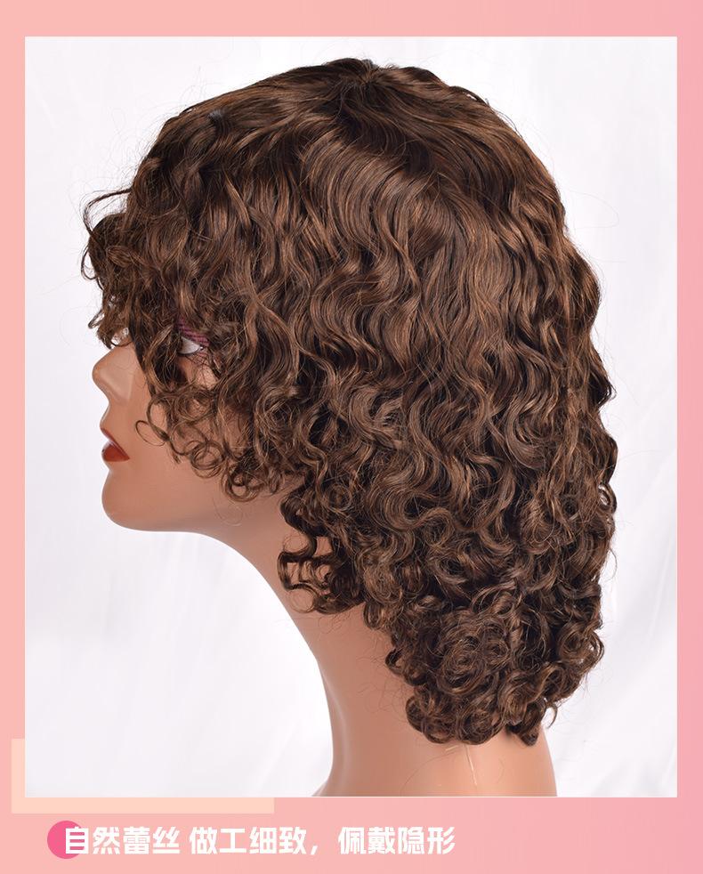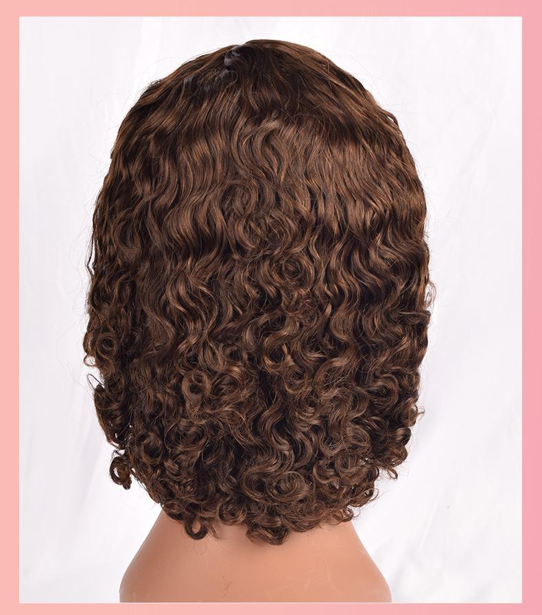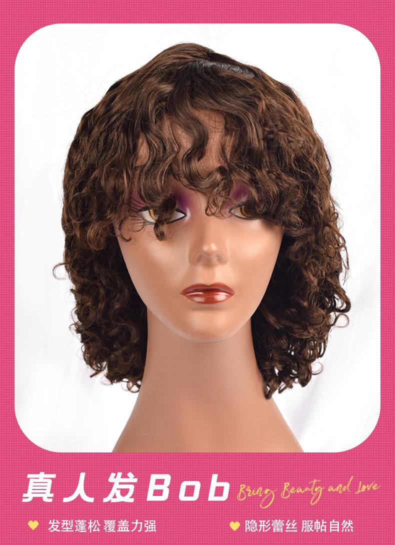 Peluca de Cabello Humano Rizado Corto de Gran Volumen Transfronteriza Africana Europea y Americana Tocado Peluca de Cabello Humano Cabello Real
