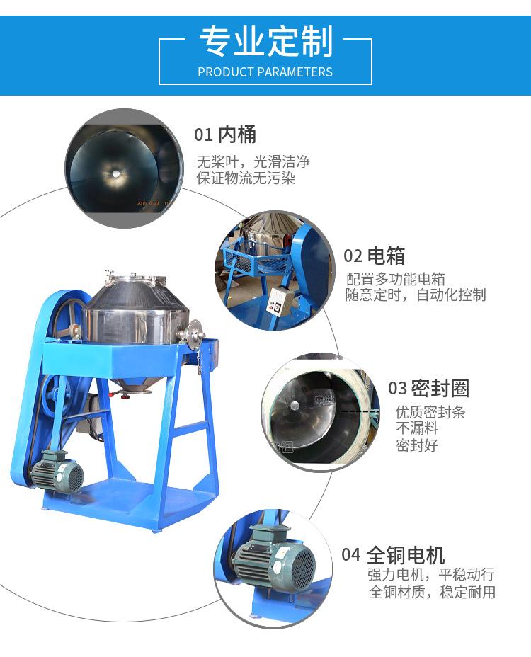 Plastic powder, chemical powder, new and old material mixing, beverage food grade powder mixing, and other uses