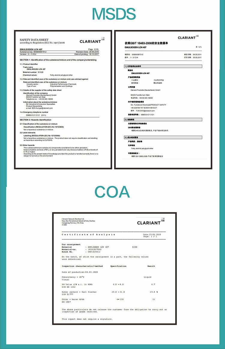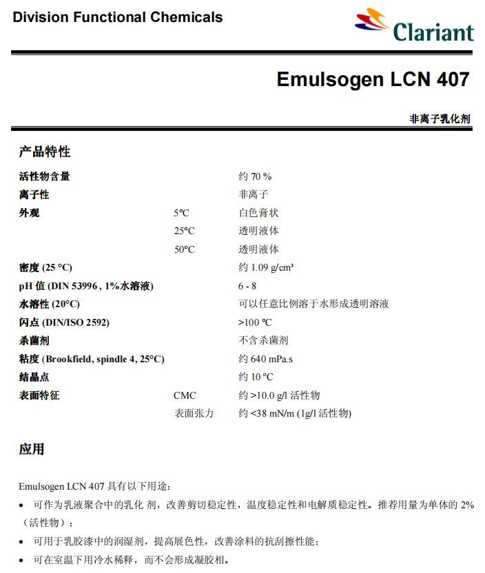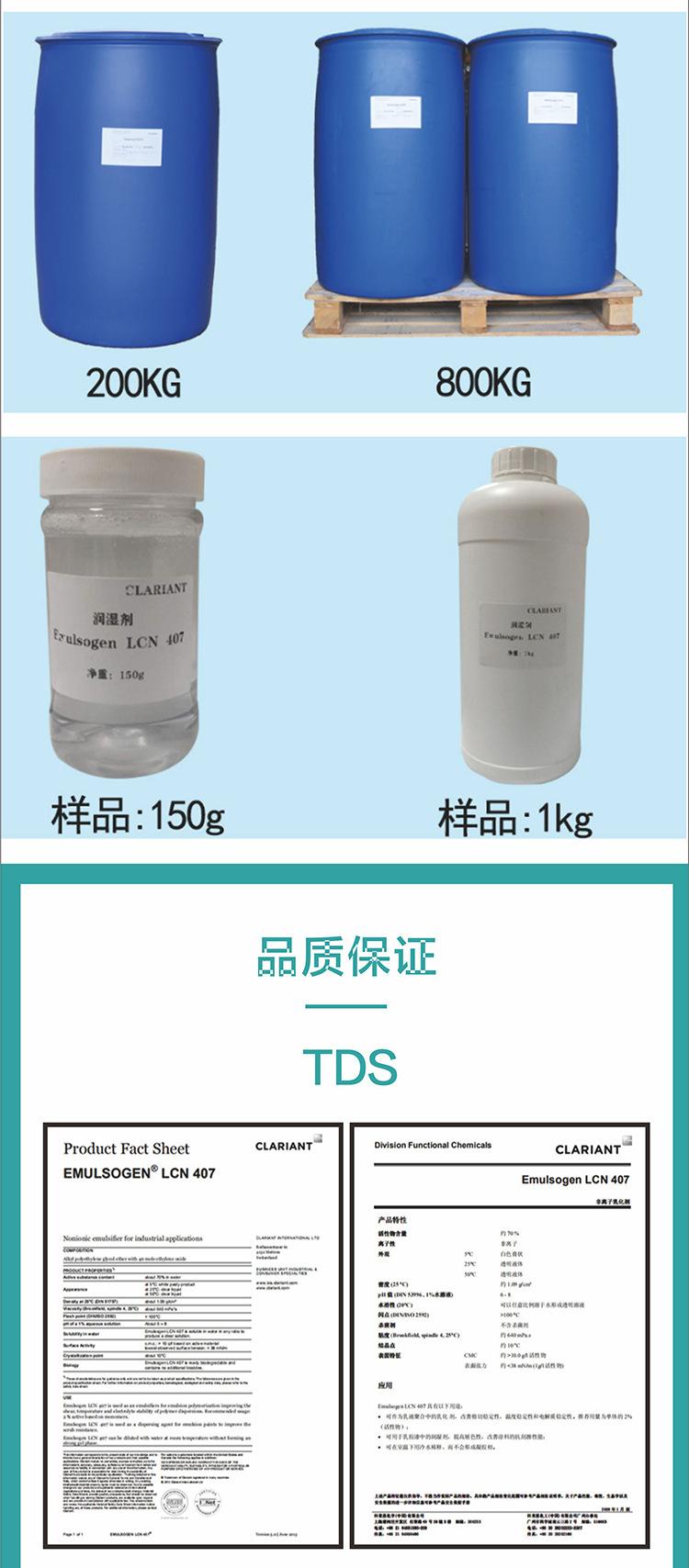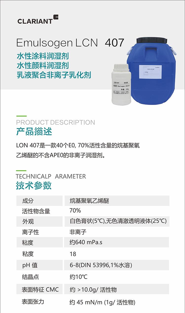 Clerien LCN407 Emulsionante polimérico no iónico Recubrimientos a base de agua Pasta de color Pigmento Agente humectante Tensioactivo