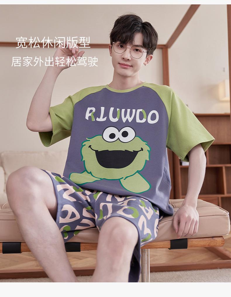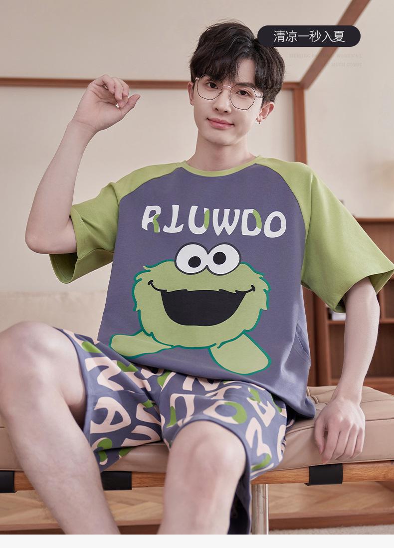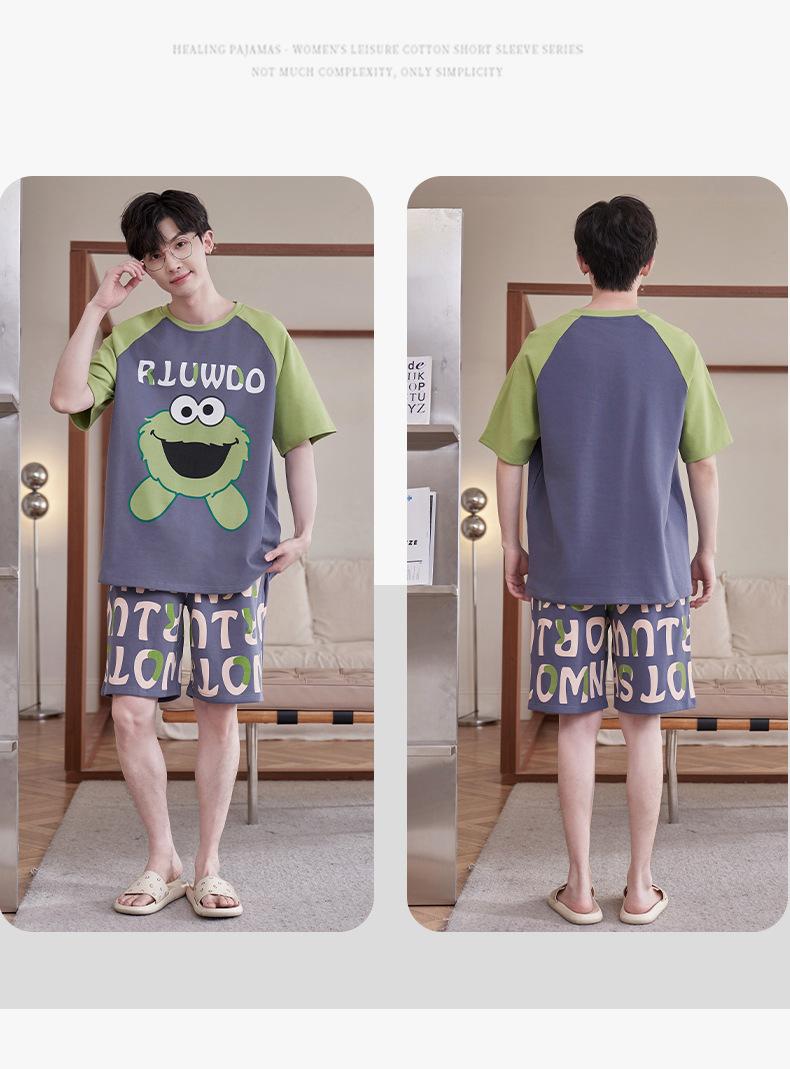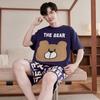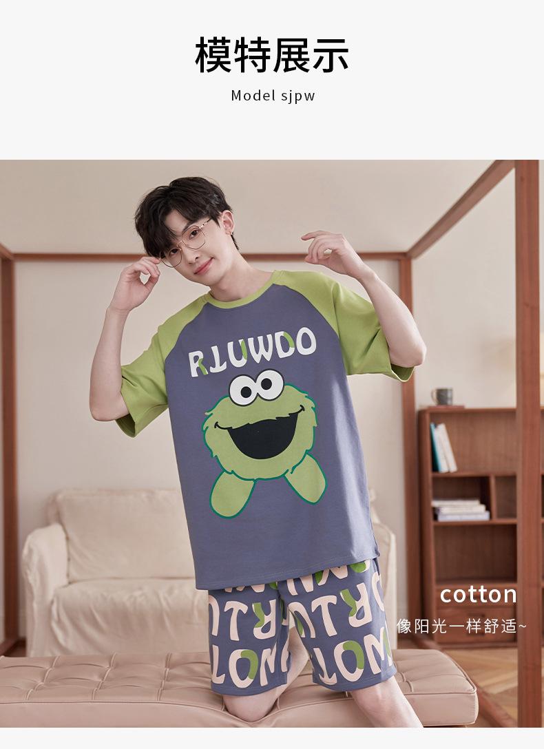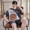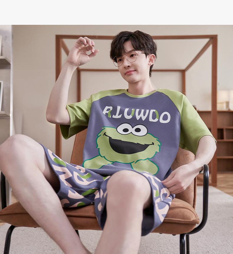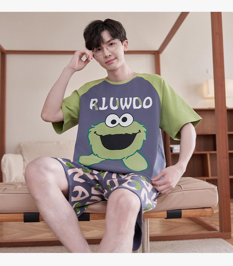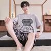 2025 Verano Nuevo Tela de Alta Calidad Pijama de Algodón Puro Conjunto para Hombre Ropa para el Hogar Manga Corta Pantalones Cortos Casual Se Puede Usar Afuera
