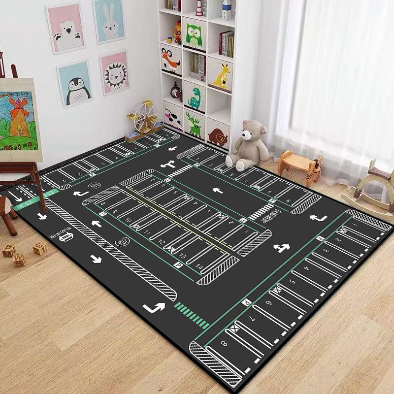 Tapete de estacionamiento para niños, mapa de tráfico, manta de juego, alfombra familiar de terciopelo de cristal para educación temprana, alfombra para jardín de infantes