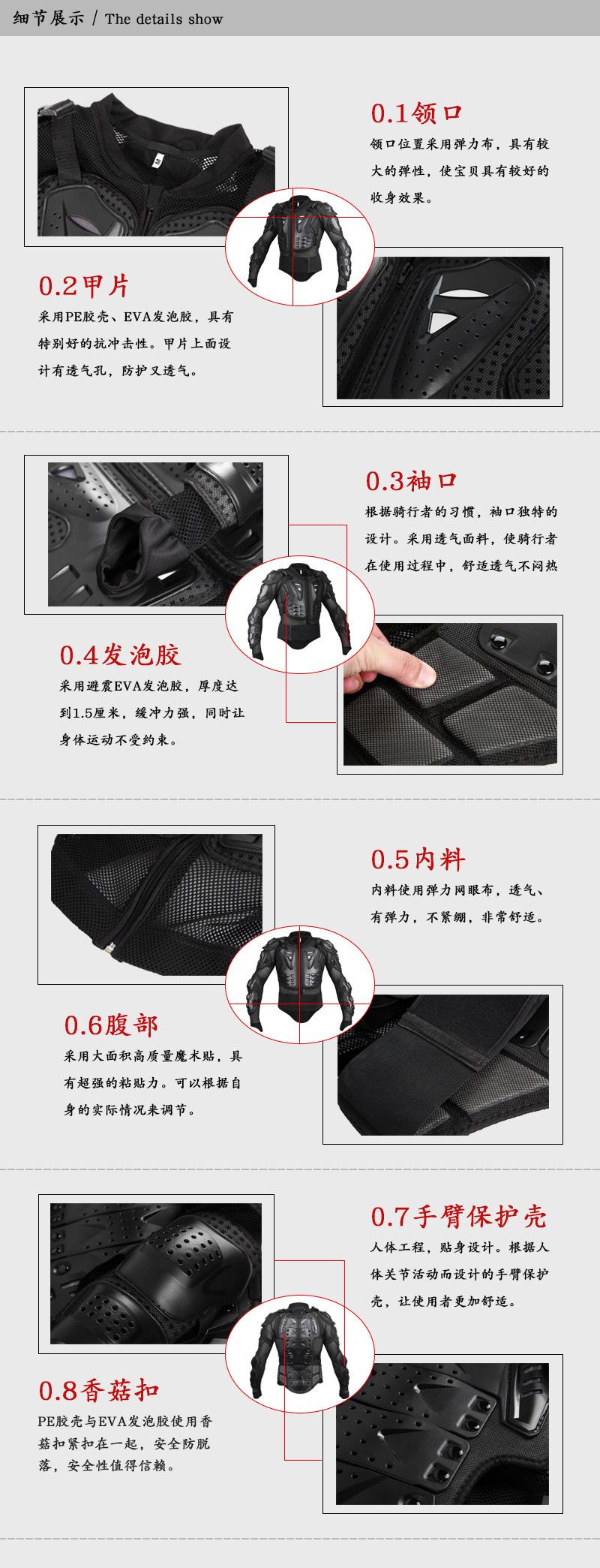 Introducción: Armadura para actividad todoterreno de motociclista, lo más importante es que la cintura también puede moverse, el protector de espalda tipo escama de pez, los protectores desmontables de hombro y codo están diseñados con material de nailon de alta resistencia y resistente al desgaste, el pecho es un área grande de acolchado de compresión, y se añade malla transpirable en el pecho, acolchado engrosado en ambos lados de la cintura,Se puede usar para proteger hombros, codos, pecho, espalda, cintura y otras partes importantes durante la conducción.