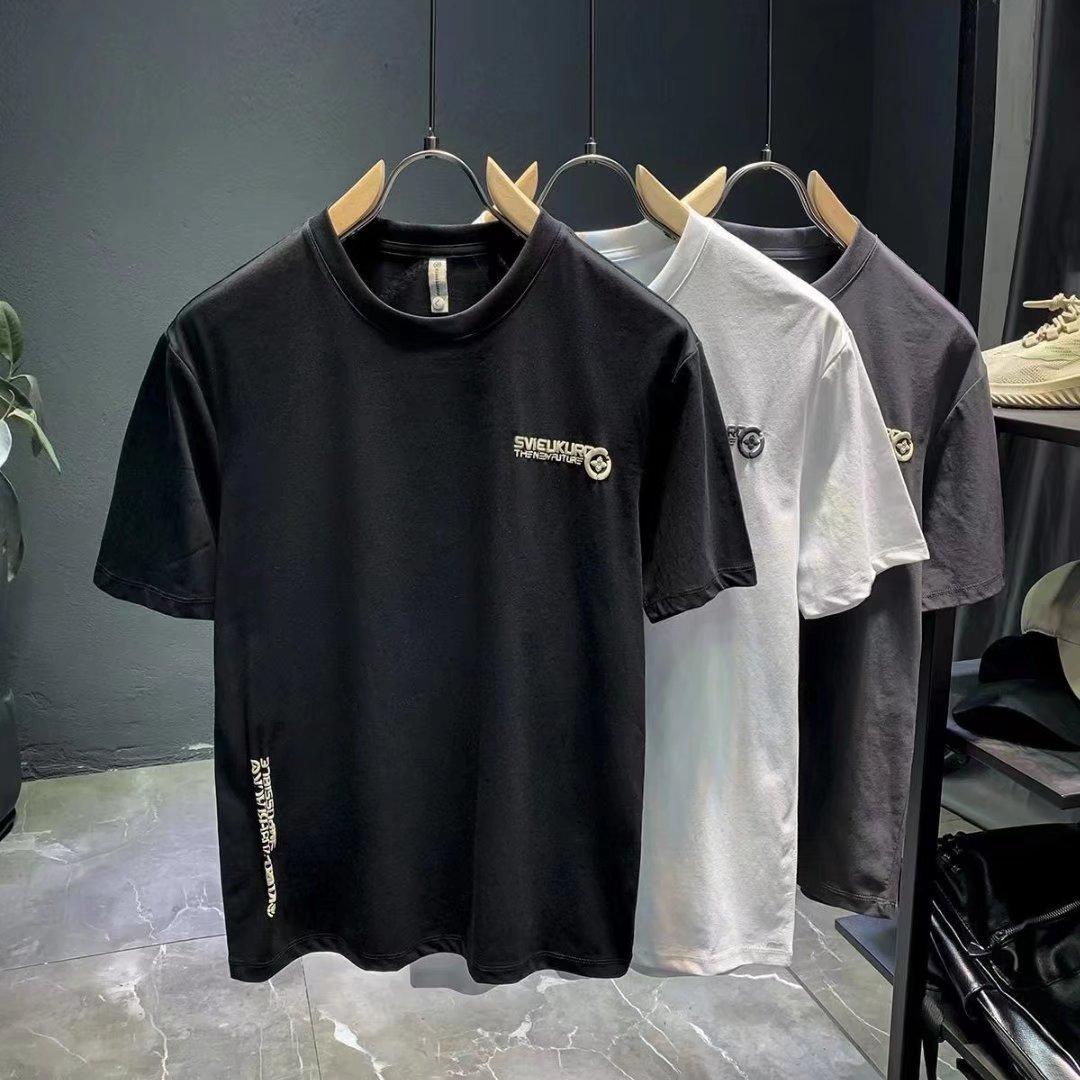 Compra 2024 nueva marca de moda camiseta de manga corta para hombre verano algodón moda camiseta tendencia slim versátil top estampado. al por mayor en Joom.pro