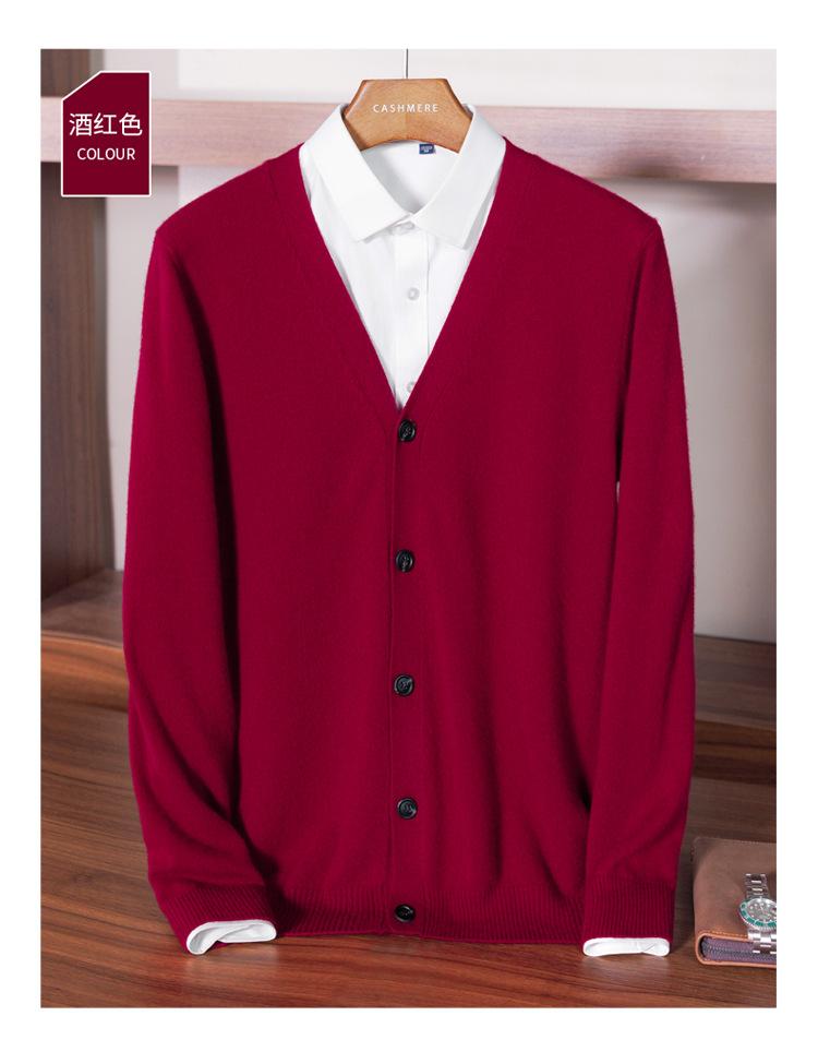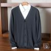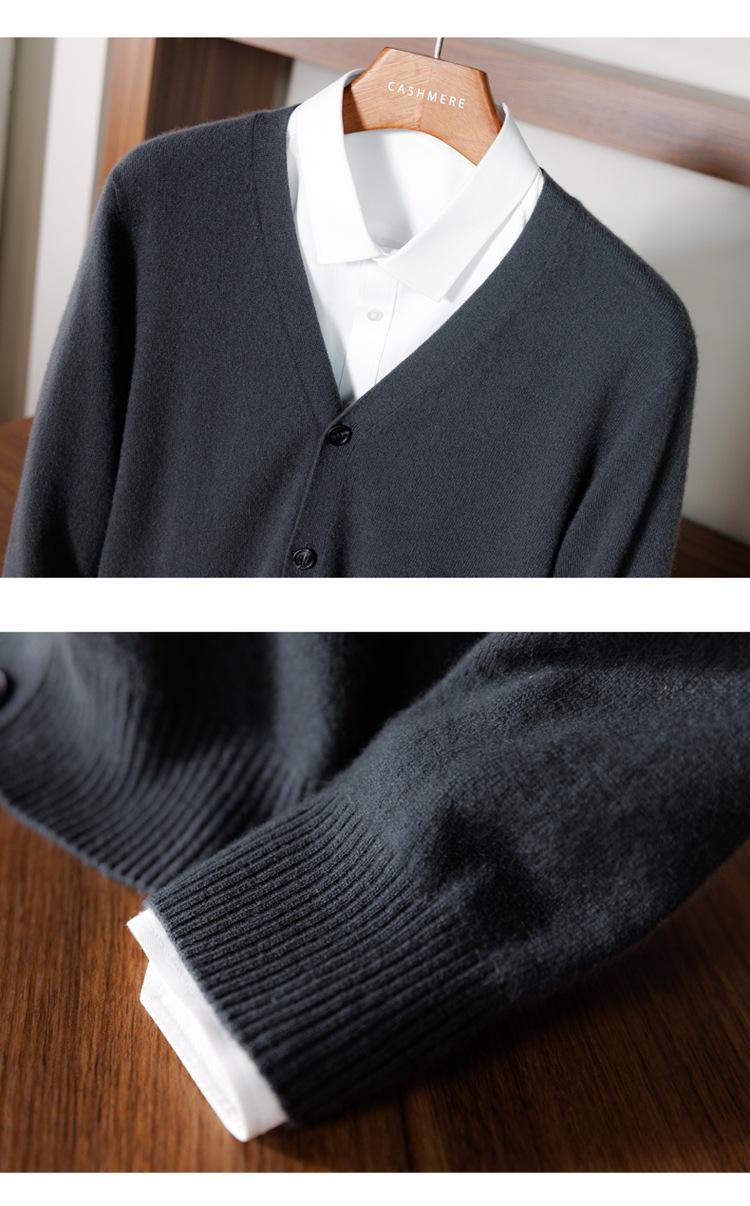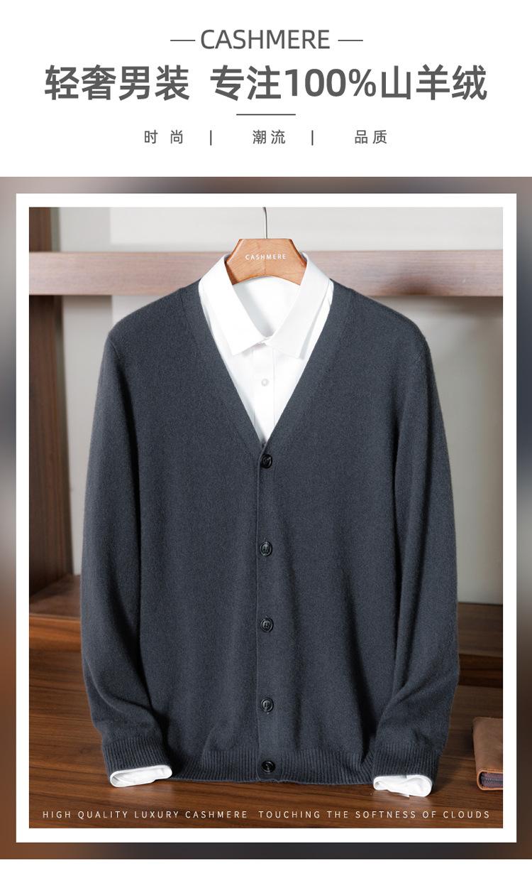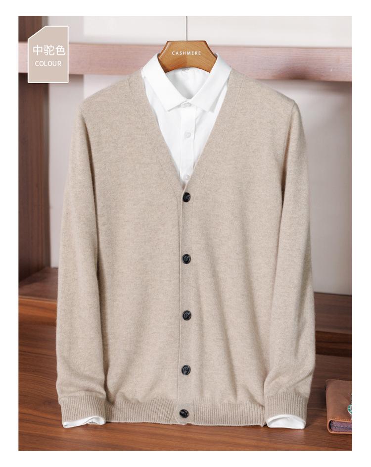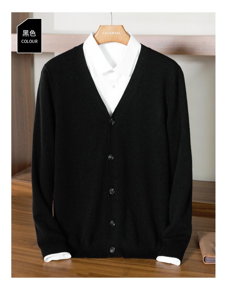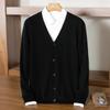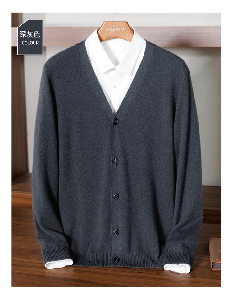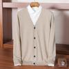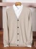 Suéter de cachemira pura de otoño e invierno, cárdigan de punto para hombre, chaqueta de negocios informal de punto con cuello en V simple, ropa para hombre transfronteriza